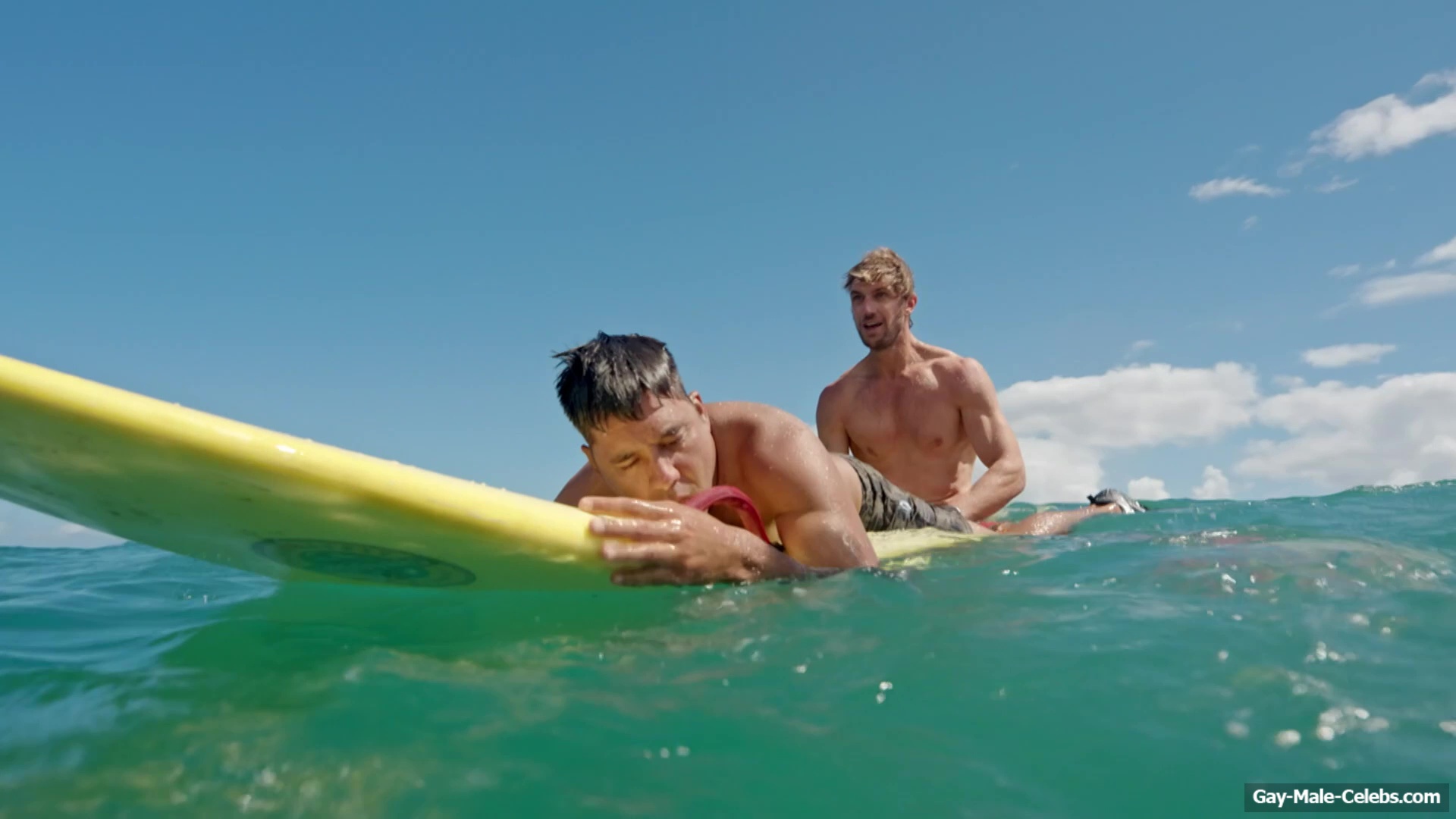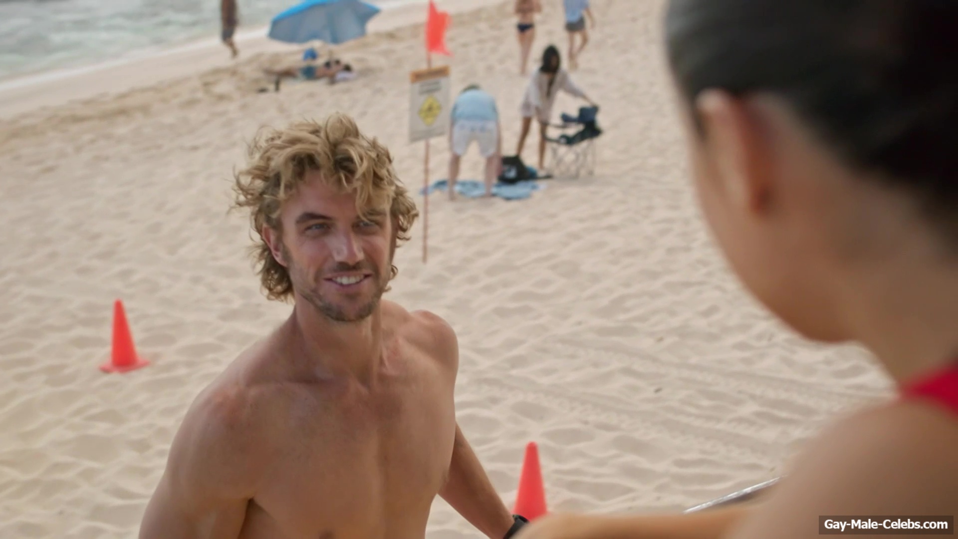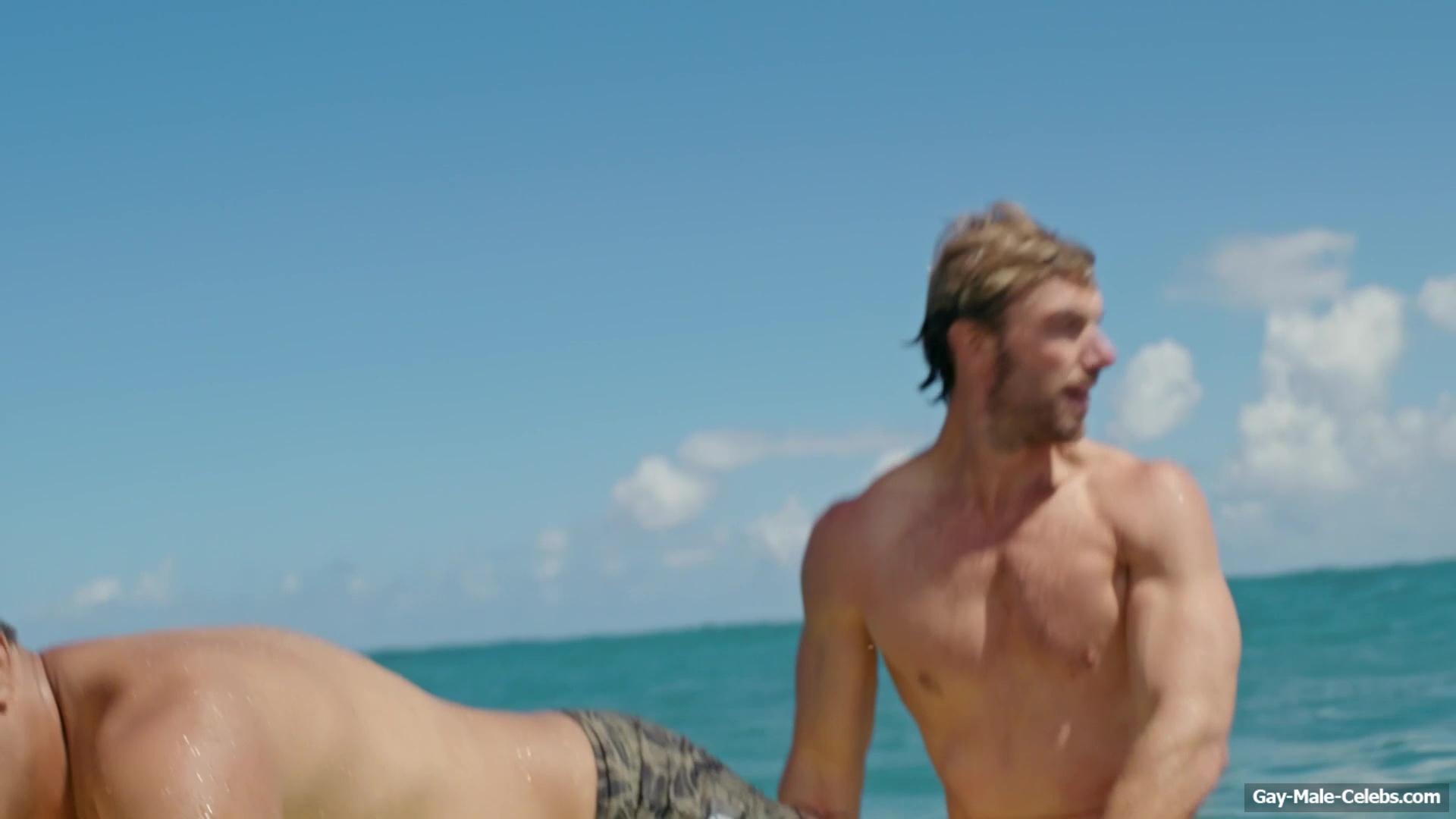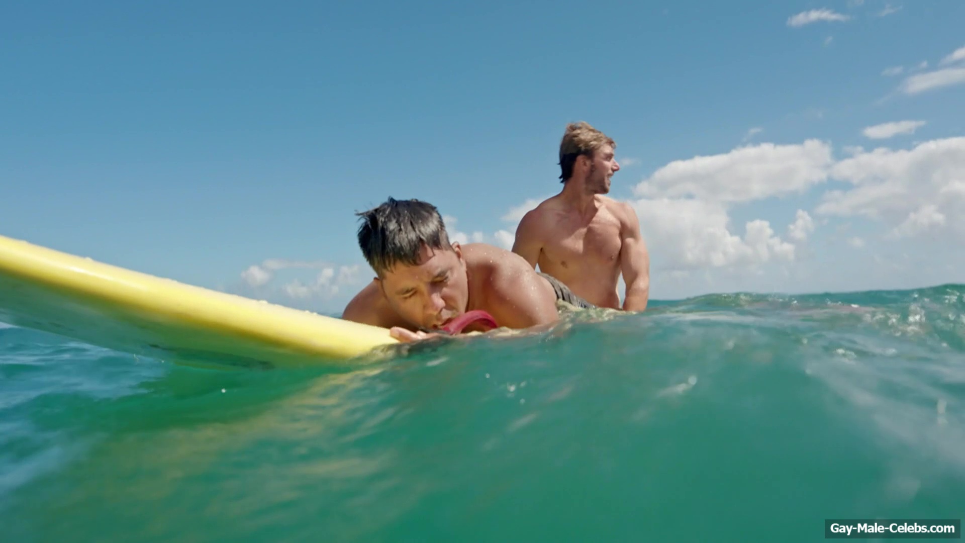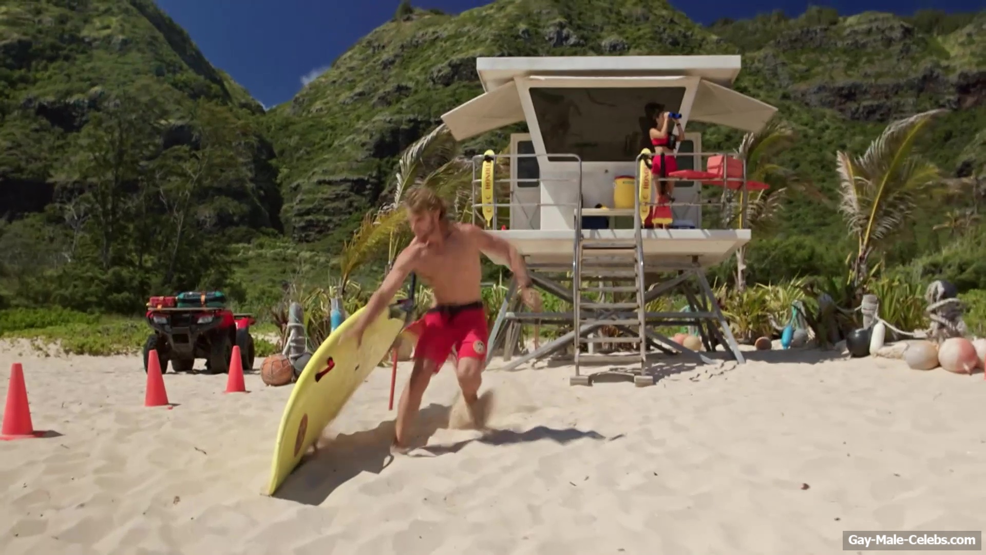 Adam Demos demonstrates his sexy figure in “Rescue: HI-Surf”. This guy was relaxing on the beach and decided to go surfing. He is wearing only red swimming trunks that perfectly hug his bouncy ass. There is no doubt that Adam spends enough time working out because he has a very ripped body.