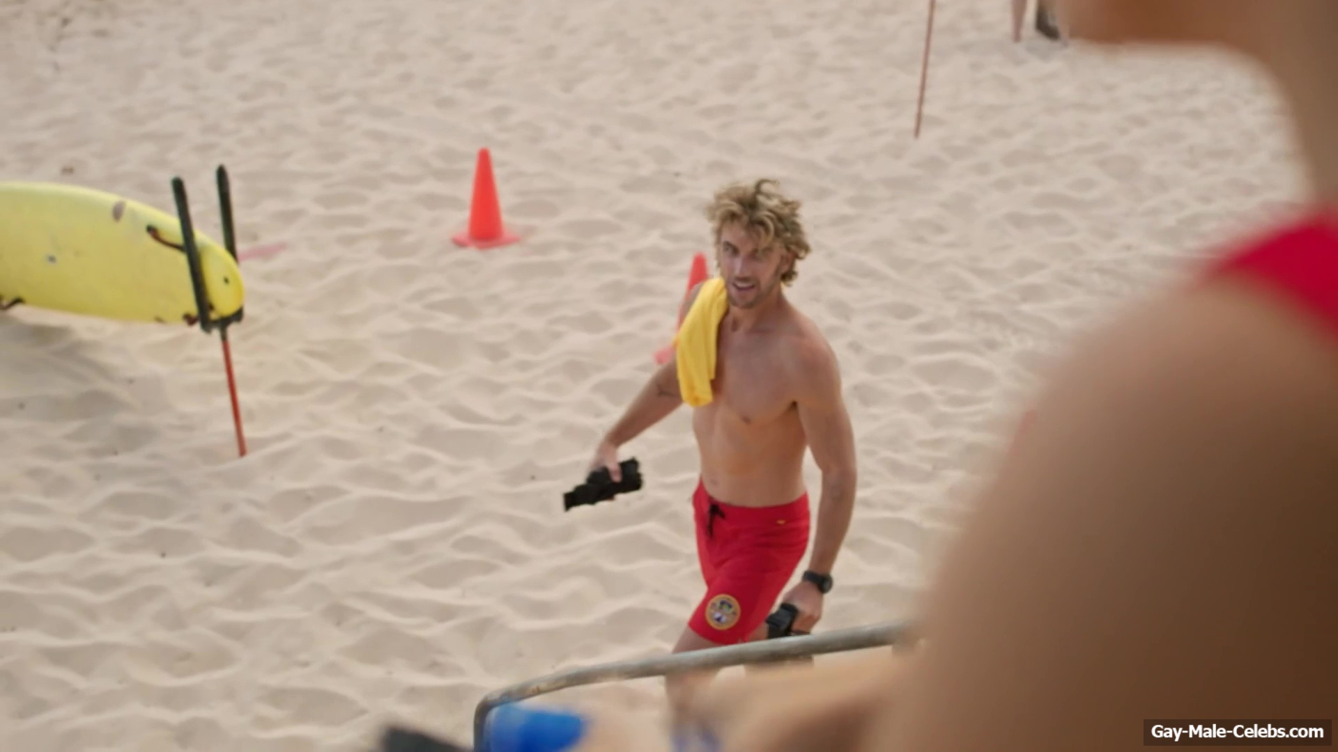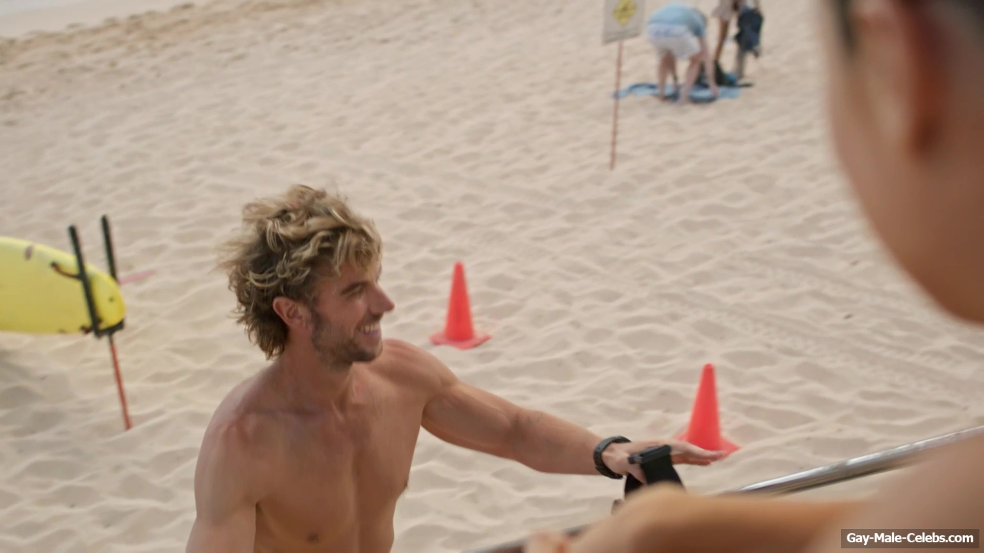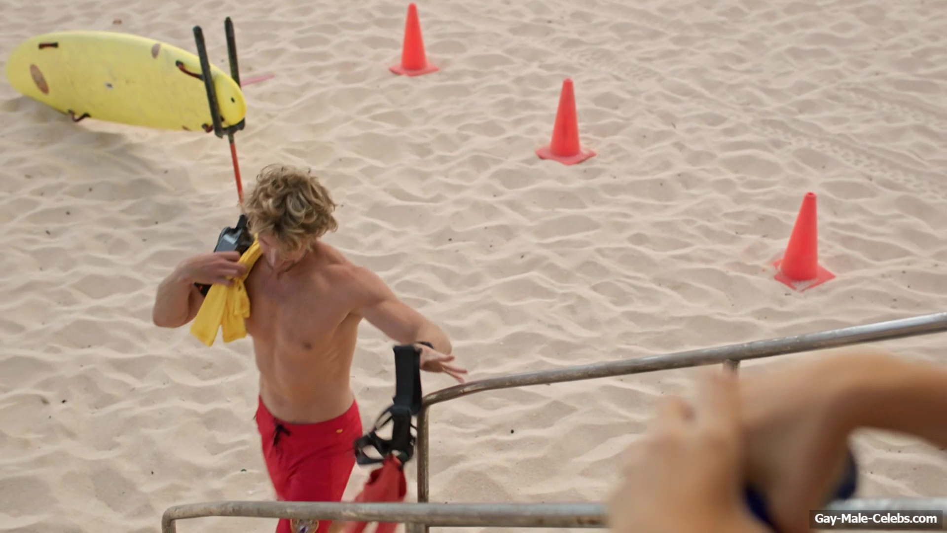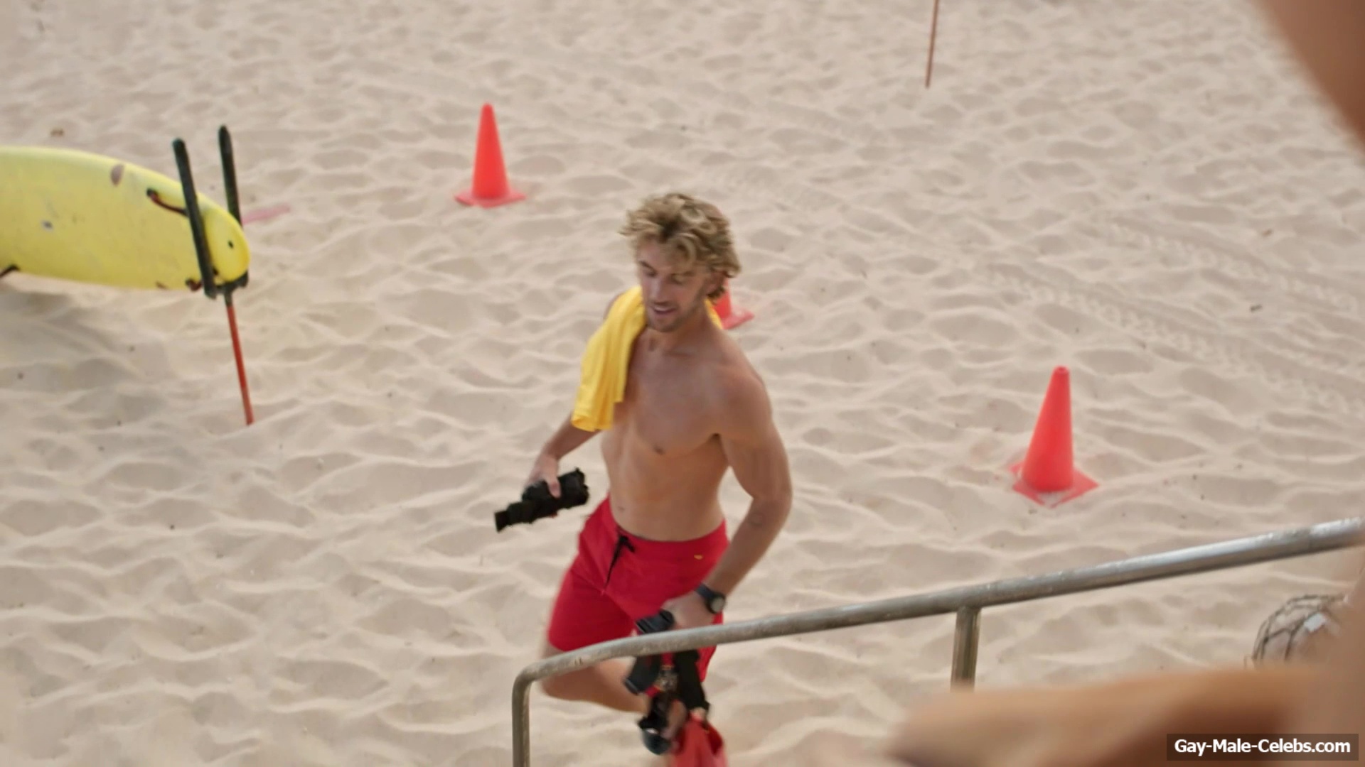 Adam Demos demonstrates his sexy figure in “Rescue: HI-Surf”. This guy was relaxing on the beach and decided to go surfing. He is wearing only red swimming trunks that perfectly hug his bouncy ass. There is no doubt that Adam spends enough time working out because he has a very ripped body.