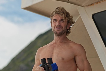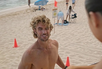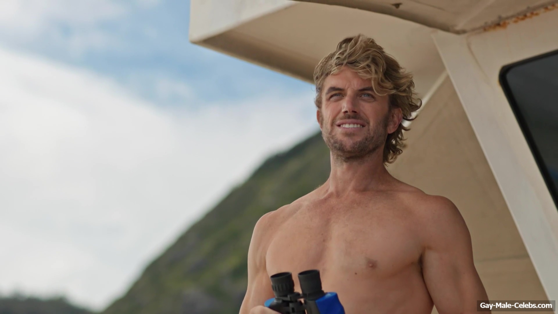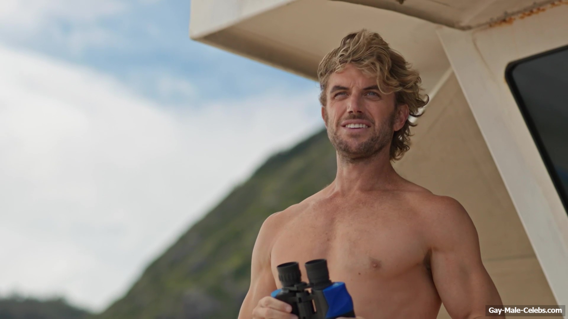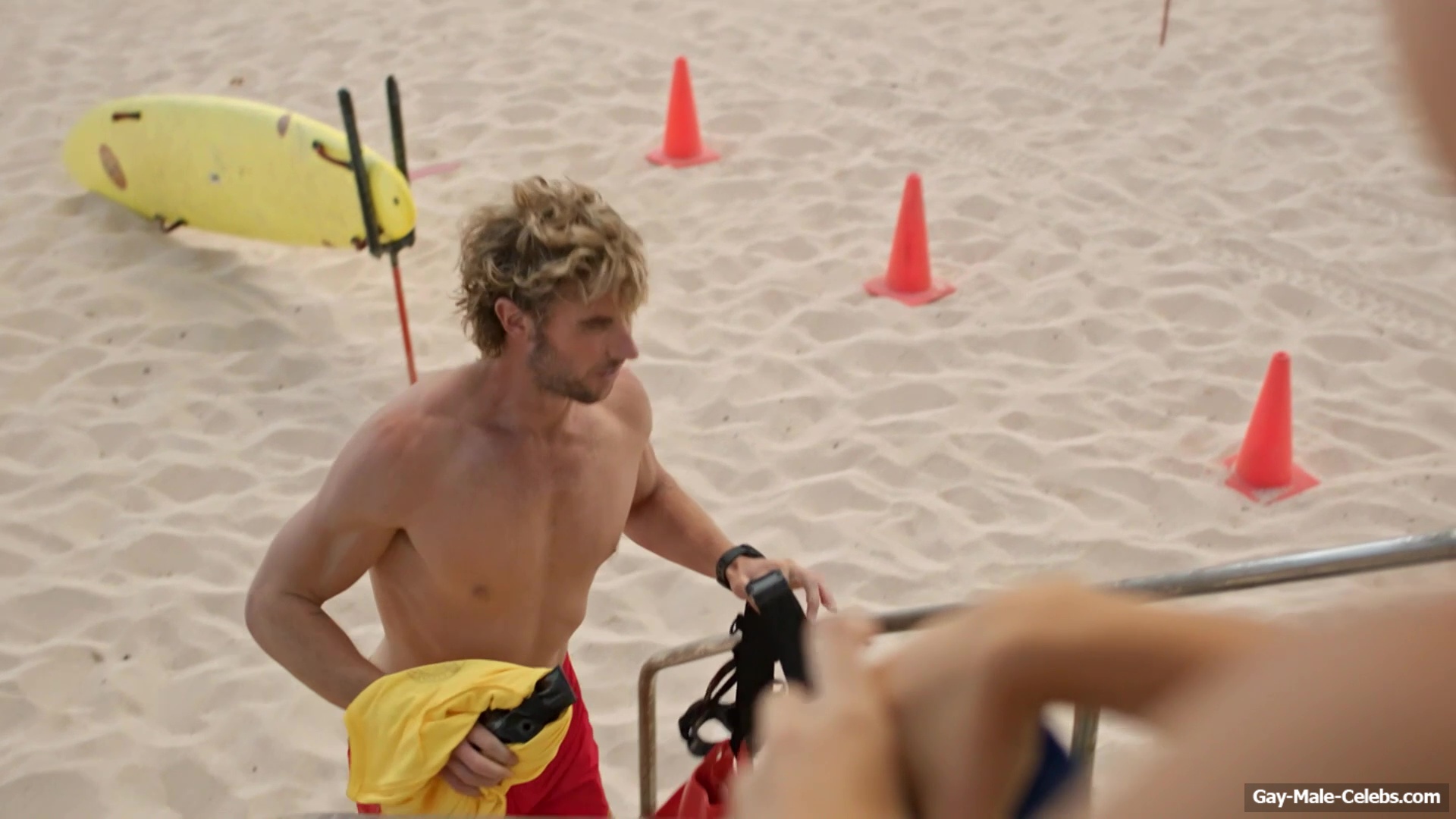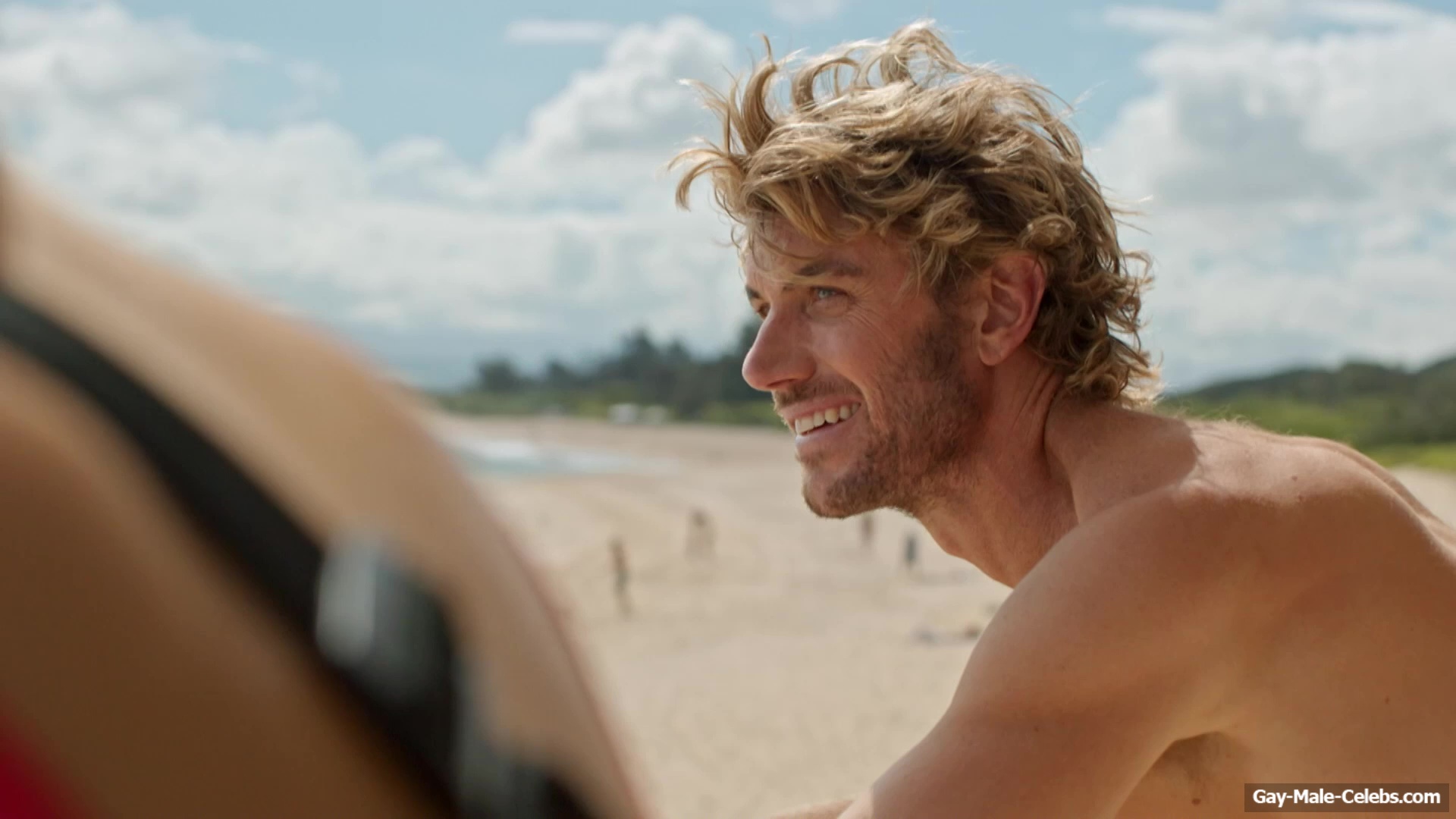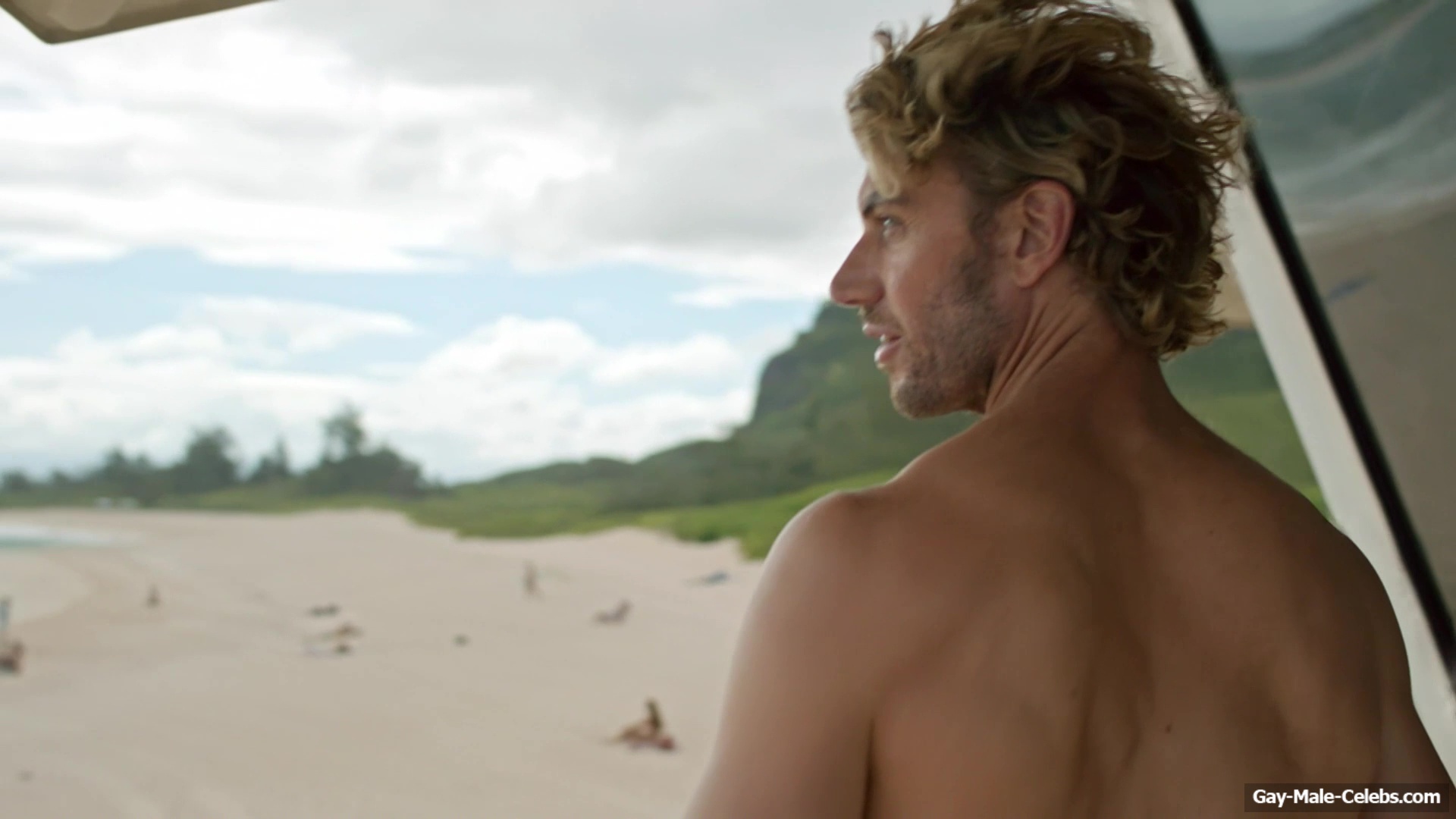 Adam Demos demonstrates his sexy figure in “Rescue: HI-Surf”. This guy was relaxing on the beach and decided to go surfing. He is wearing only red swimming trunks that perfectly hug his bouncy ass. There is no doubt that Adam spends enough time working out because he has a very ripped body.
