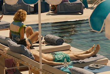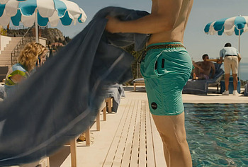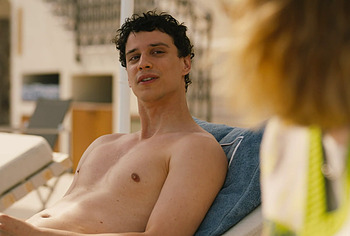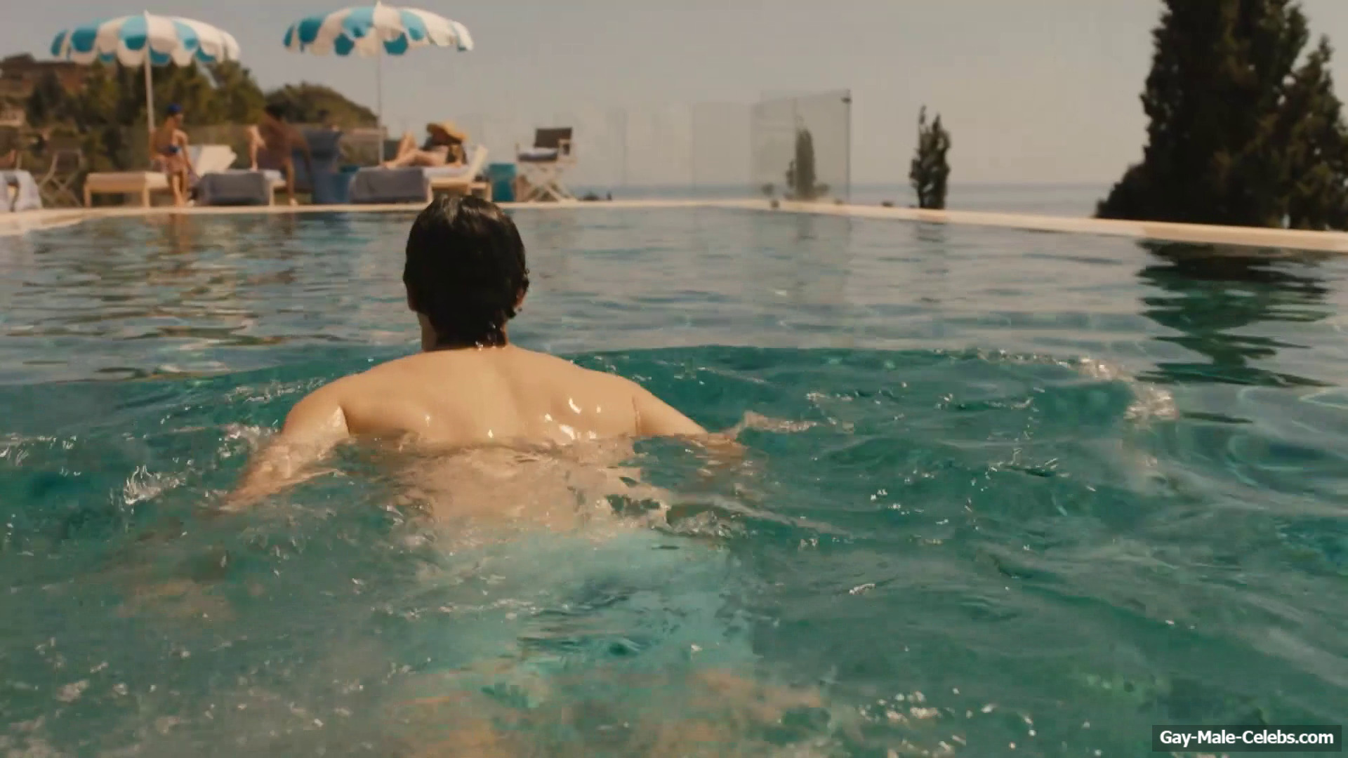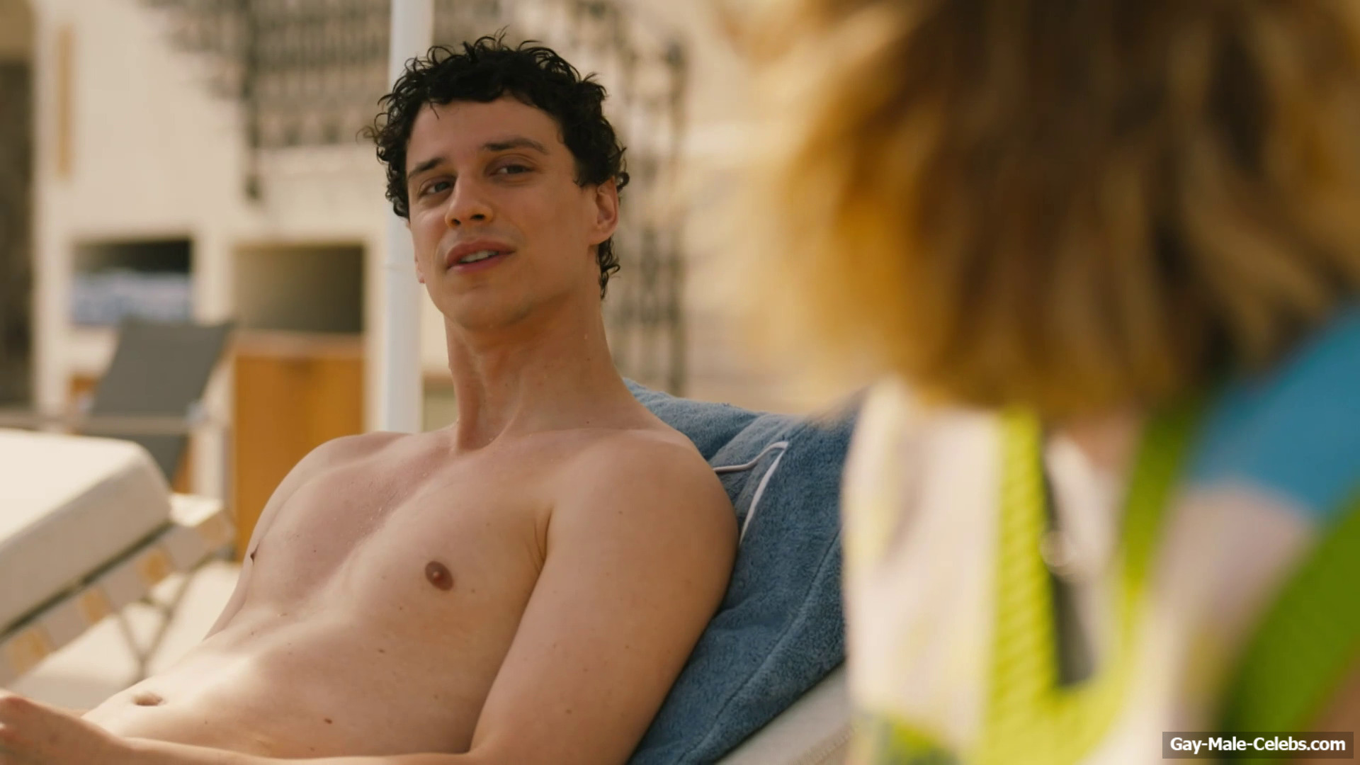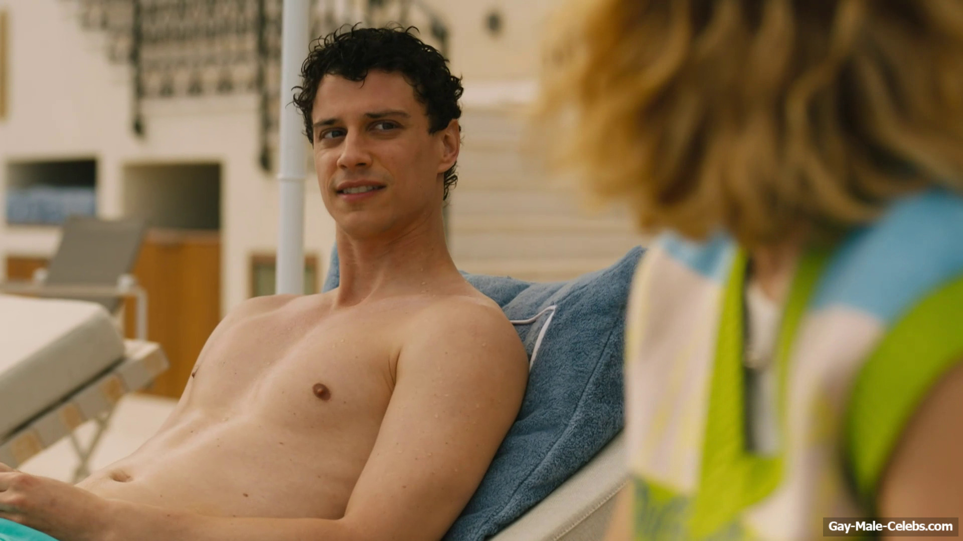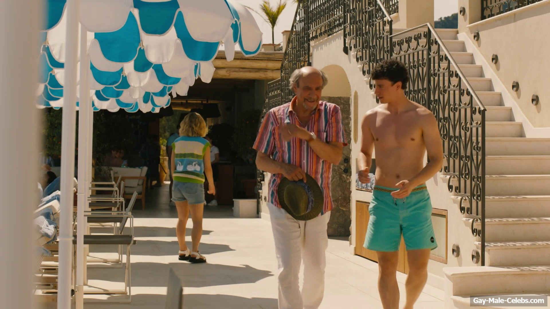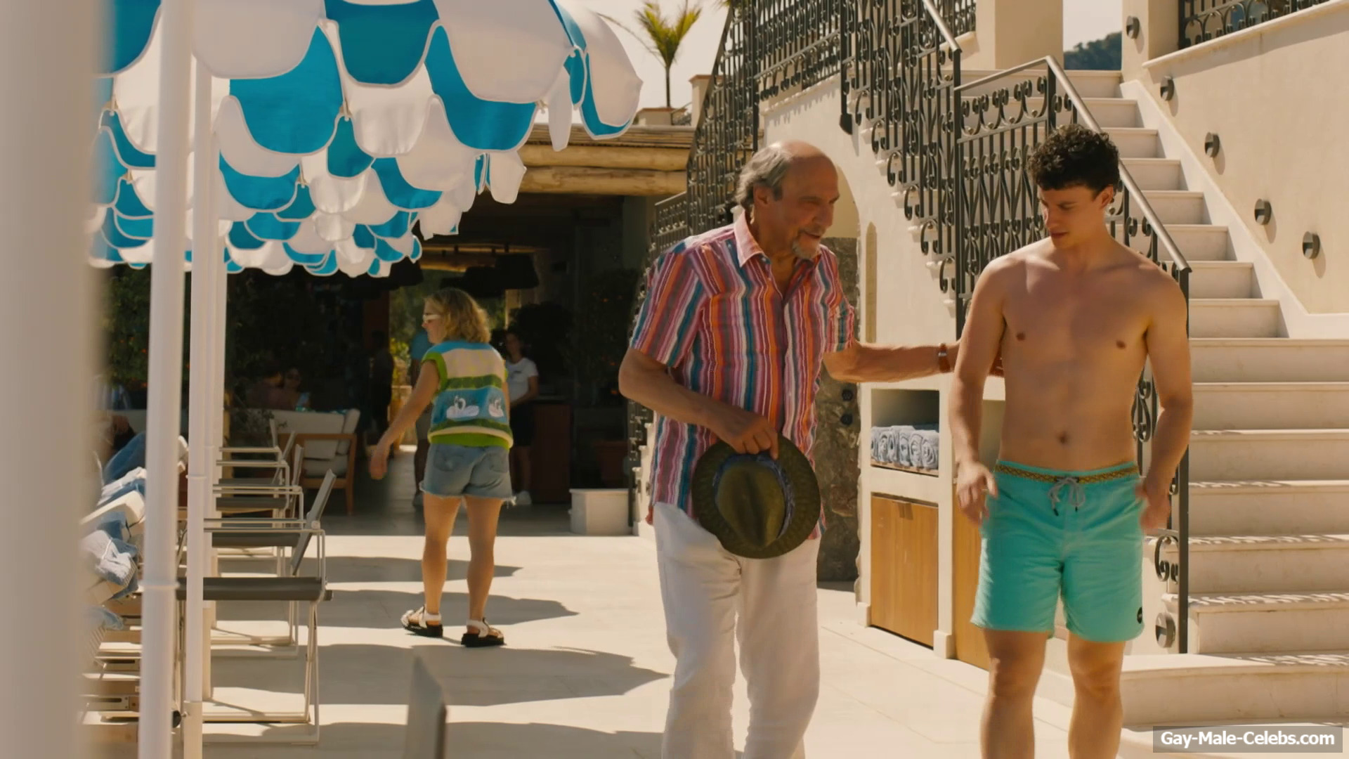 Adam DiMarco sets pulses racing in “The White Lotus”. This guy is relaxing by the pool wearing only turquoise swim trunks that clearly outline his butt. But what really catches our attention is his pumped-up muscular torso, which looks divine when he’s lying on a sun lounger.