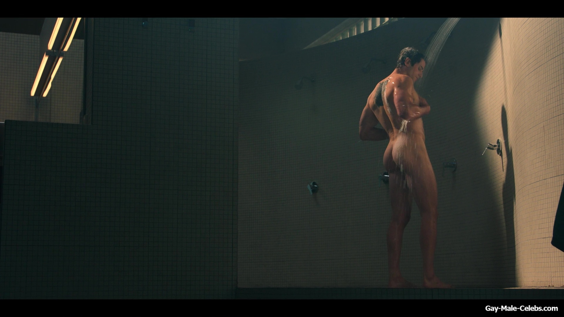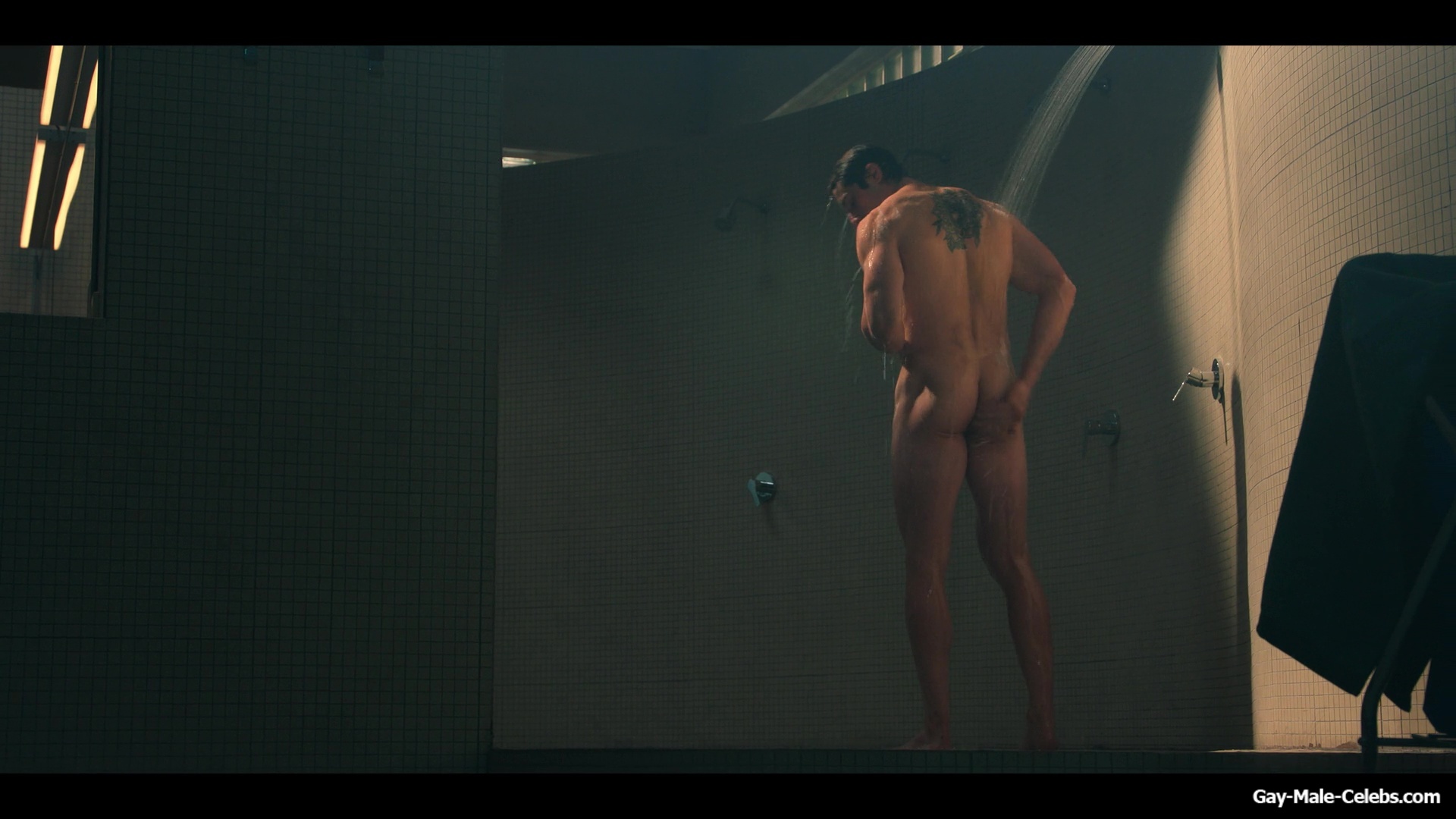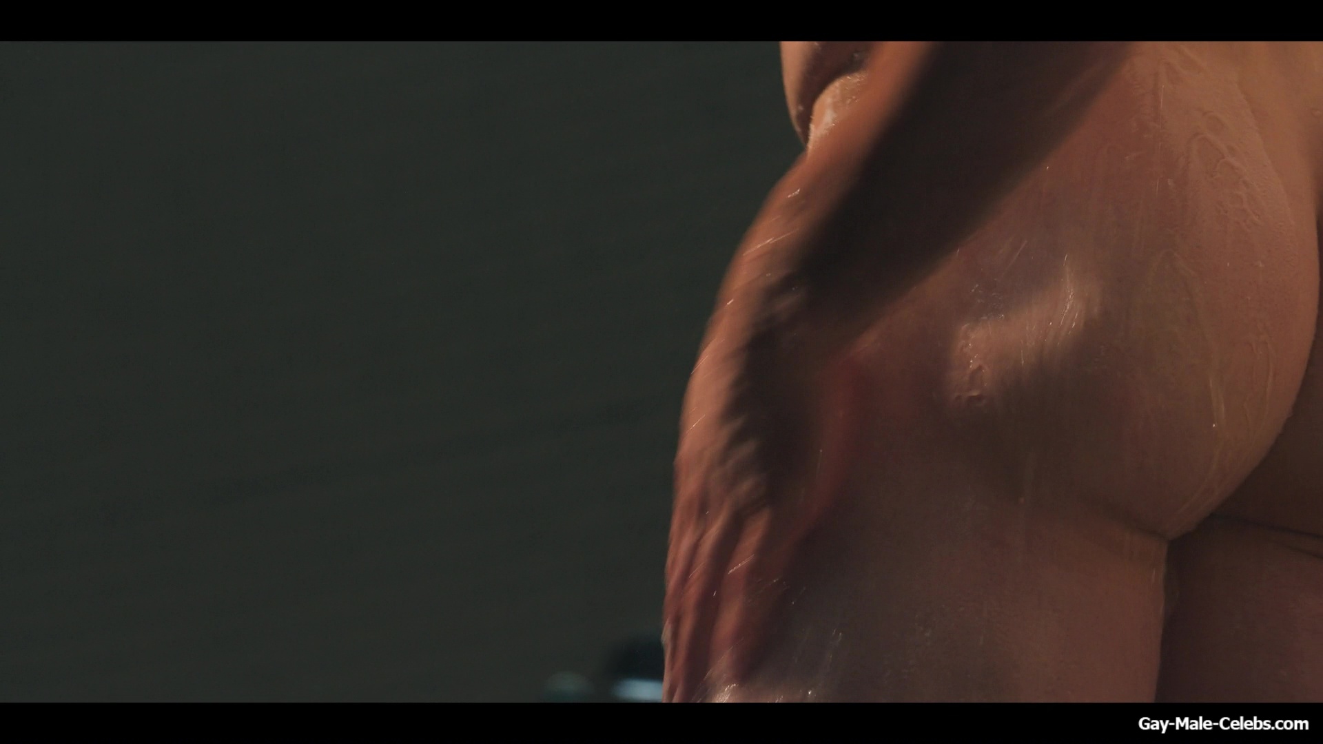 Agustín Della Corte again gives us the opportunity to admire him naked in “Olympo”. This time he is also in the shower, but now unfortunately alone. He diligently soaps his pumped up body not forgetting about every part of it. Although Agustín is standing to us with his backside and we can not see his penis, but his tight butt deserves special attention.