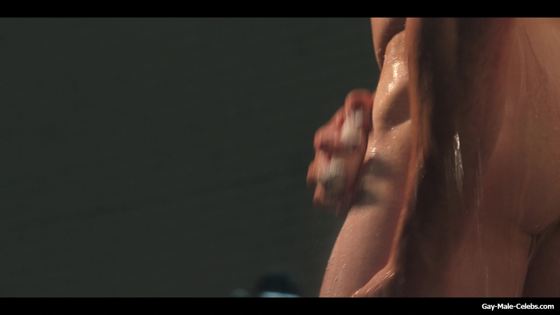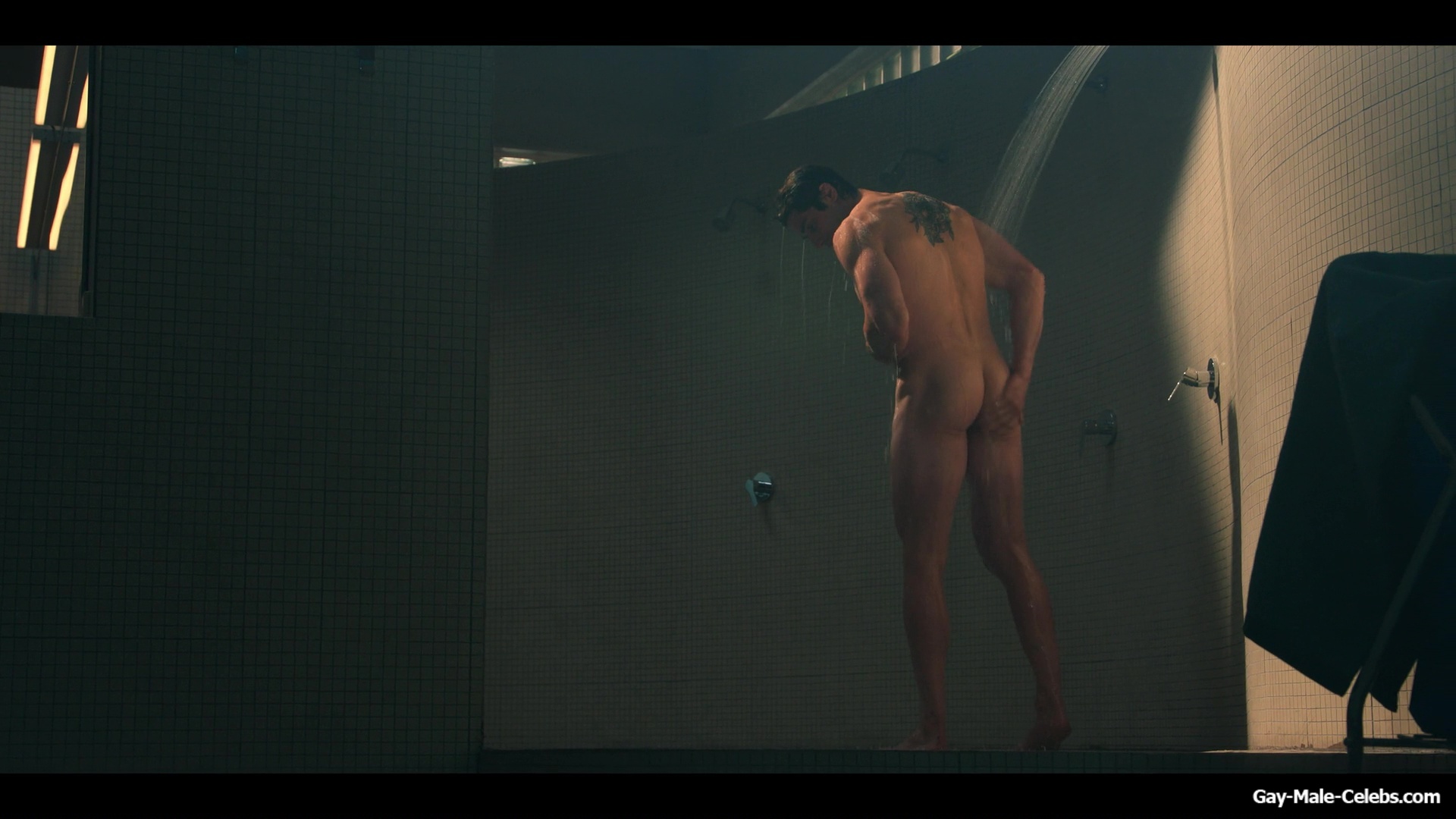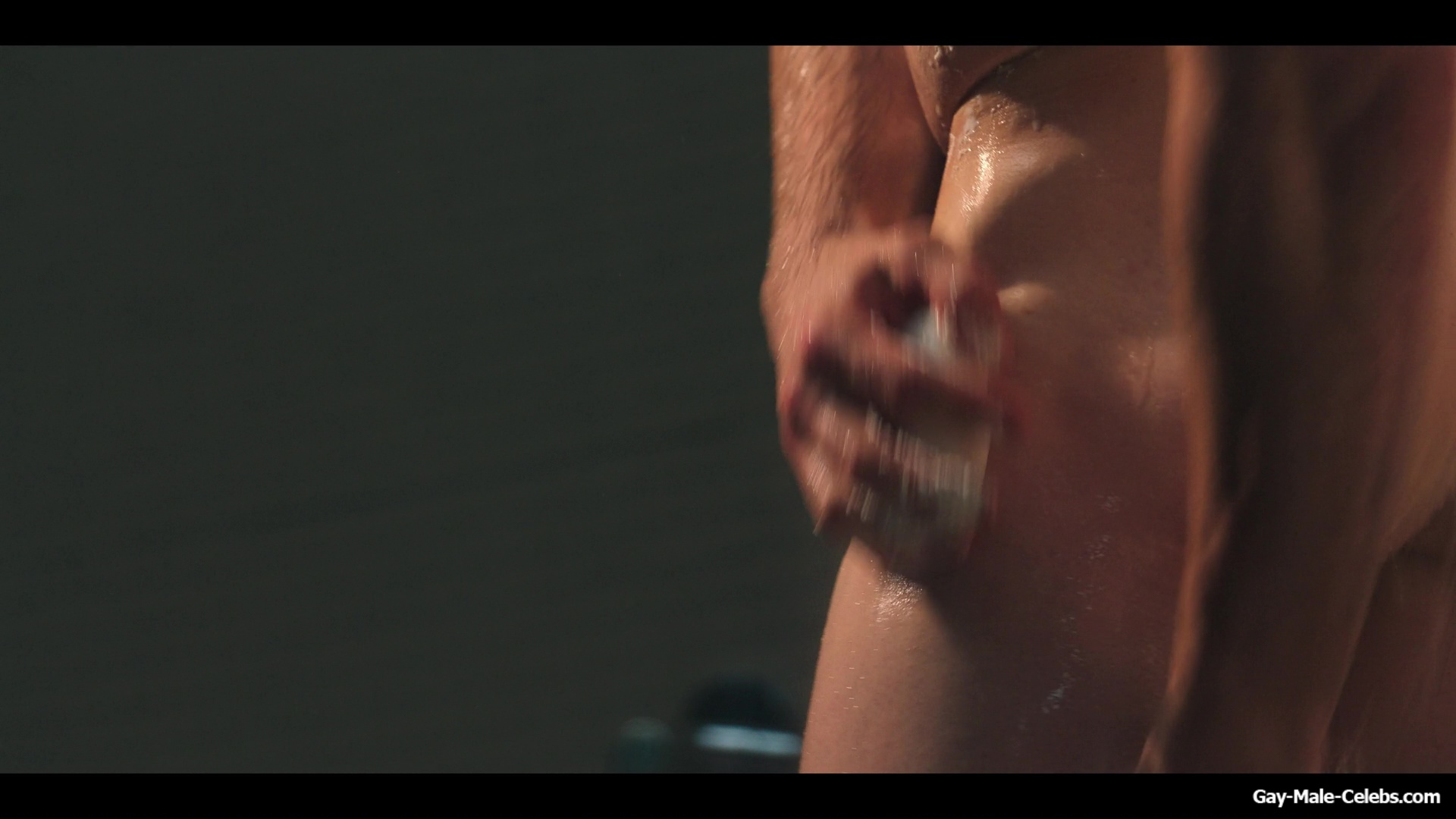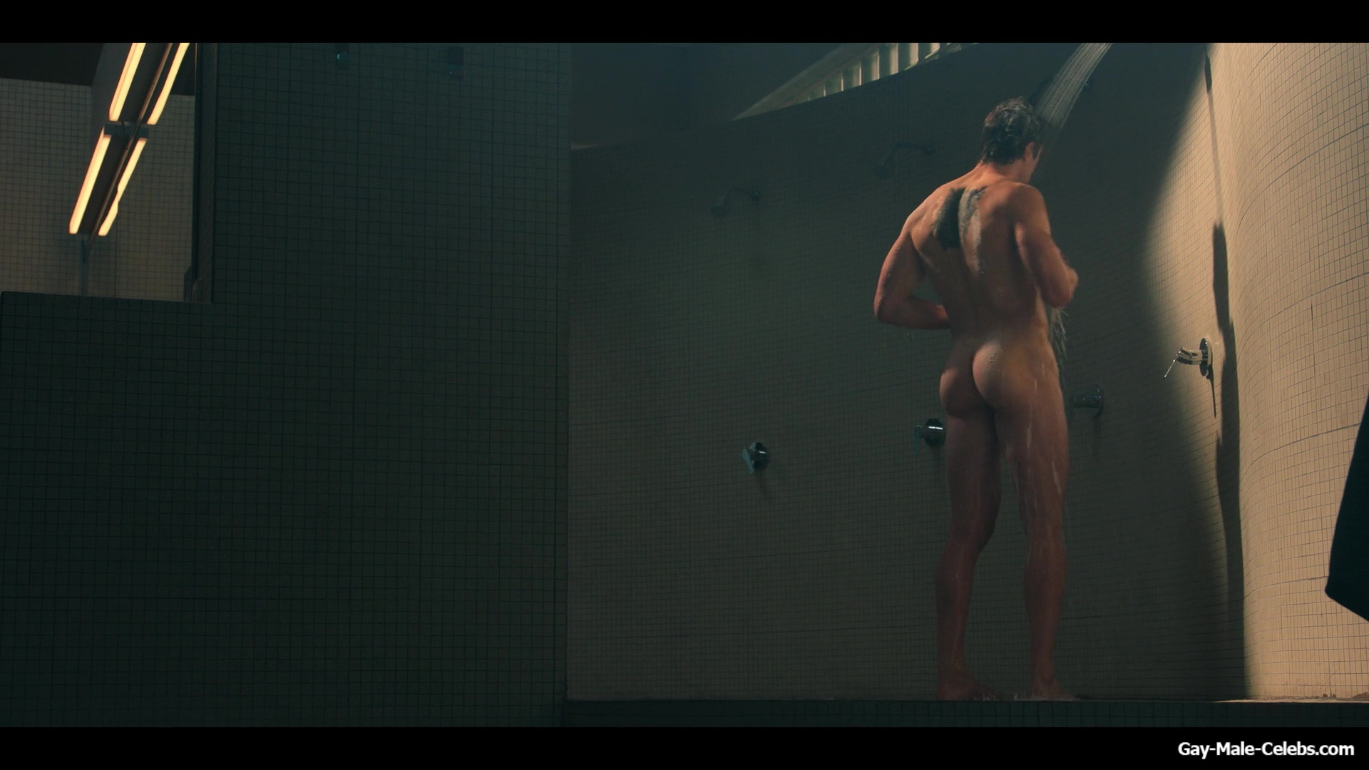 Agustín Della Corte again gives us the opportunity to admire him naked in “Olympo”. This time he is also in the shower, but now unfortunately alone. He diligently soaps his pumped up body not forgetting about every part of it. Although Agustín is standing to us with his backside and we can not see his penis, but his tight butt deserves special attention.