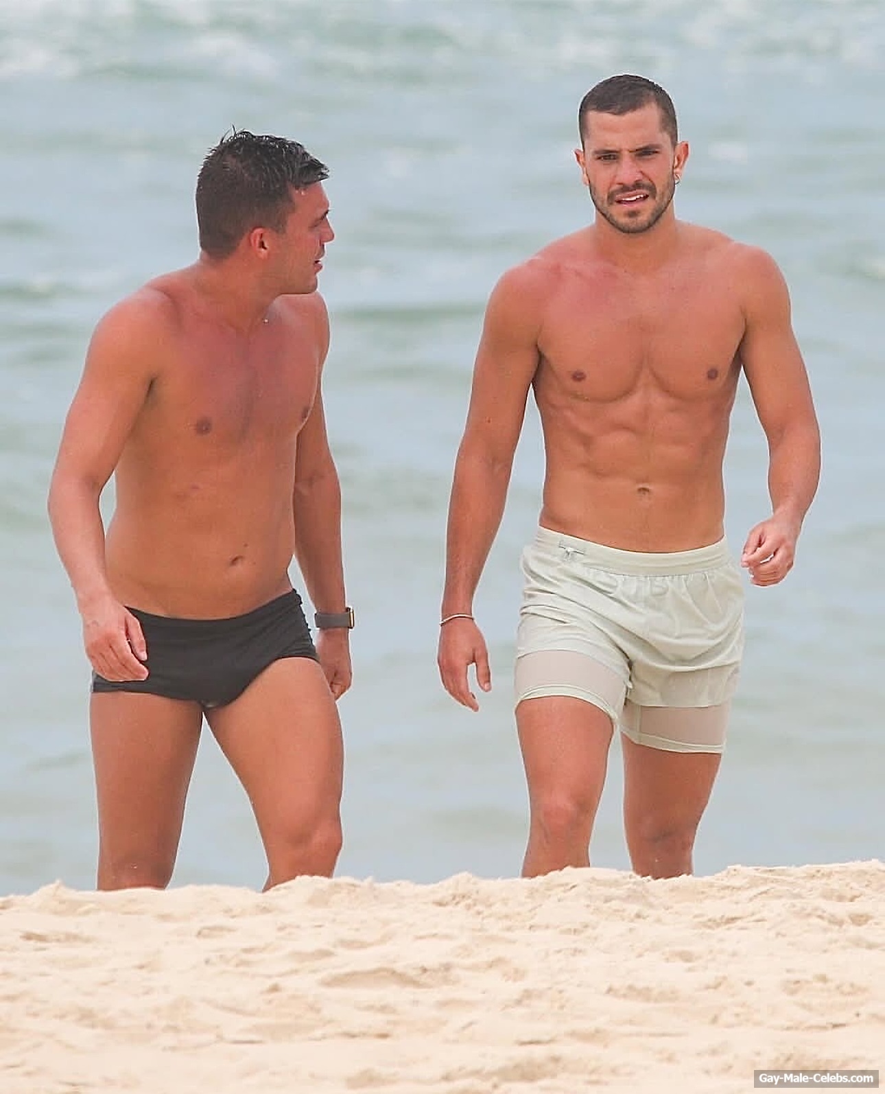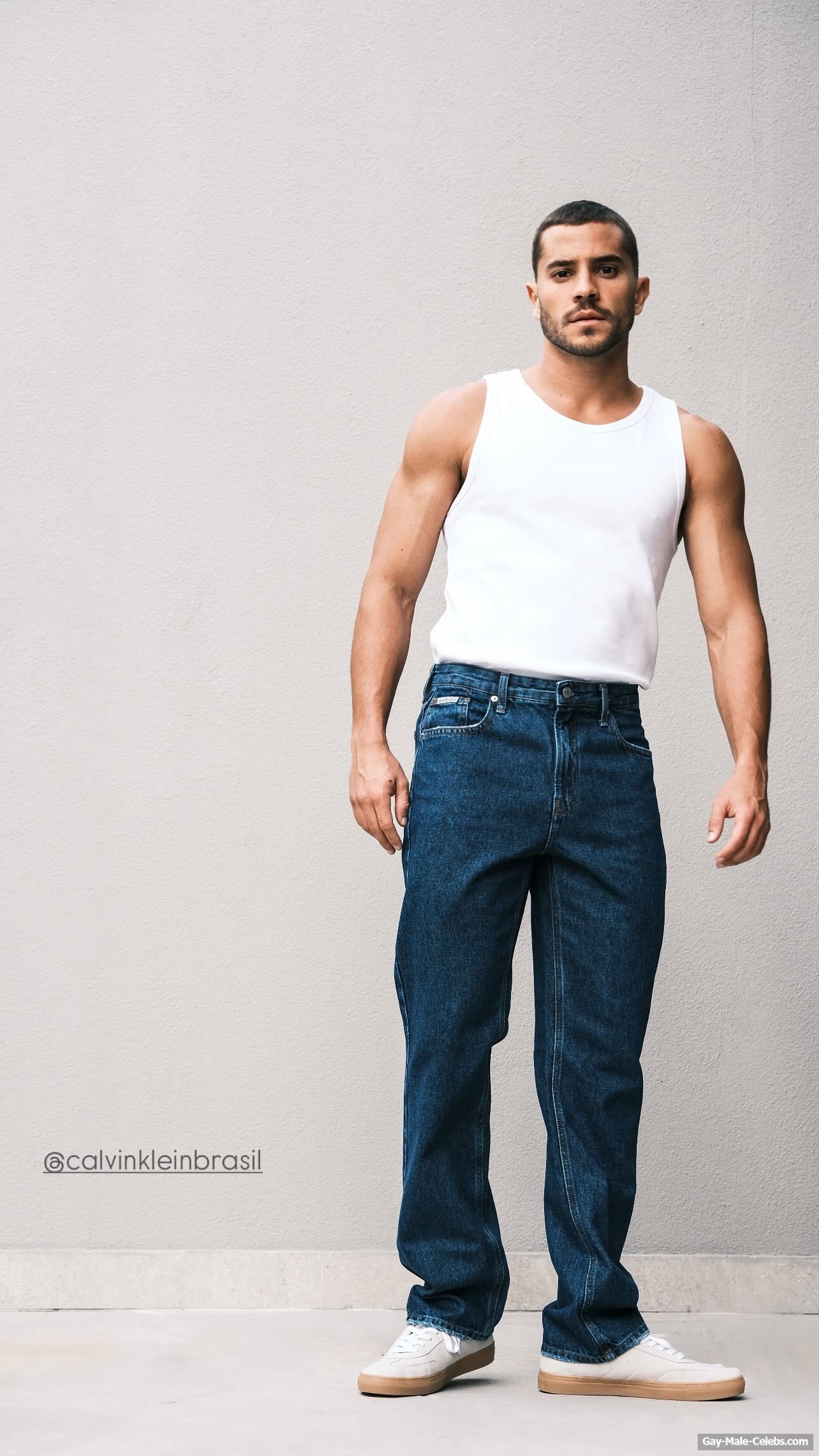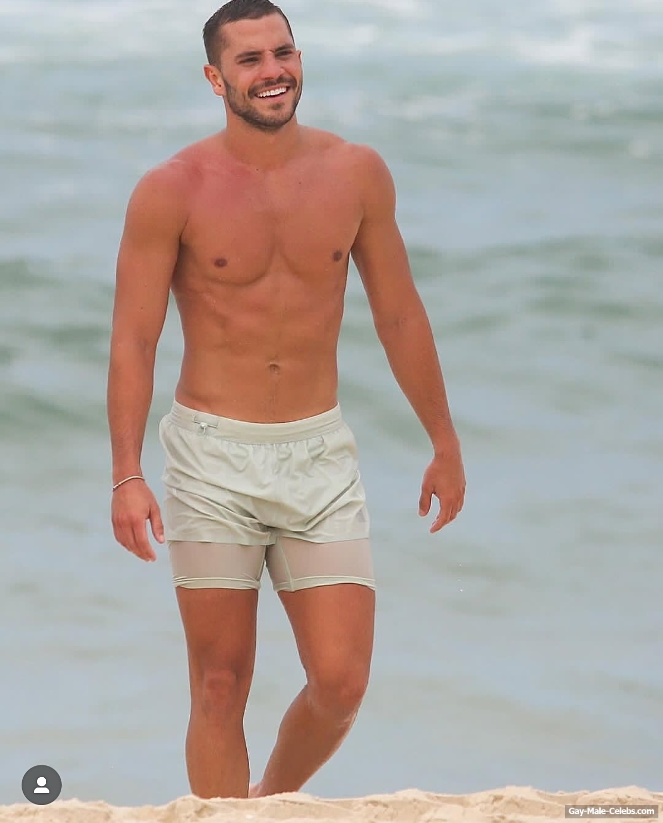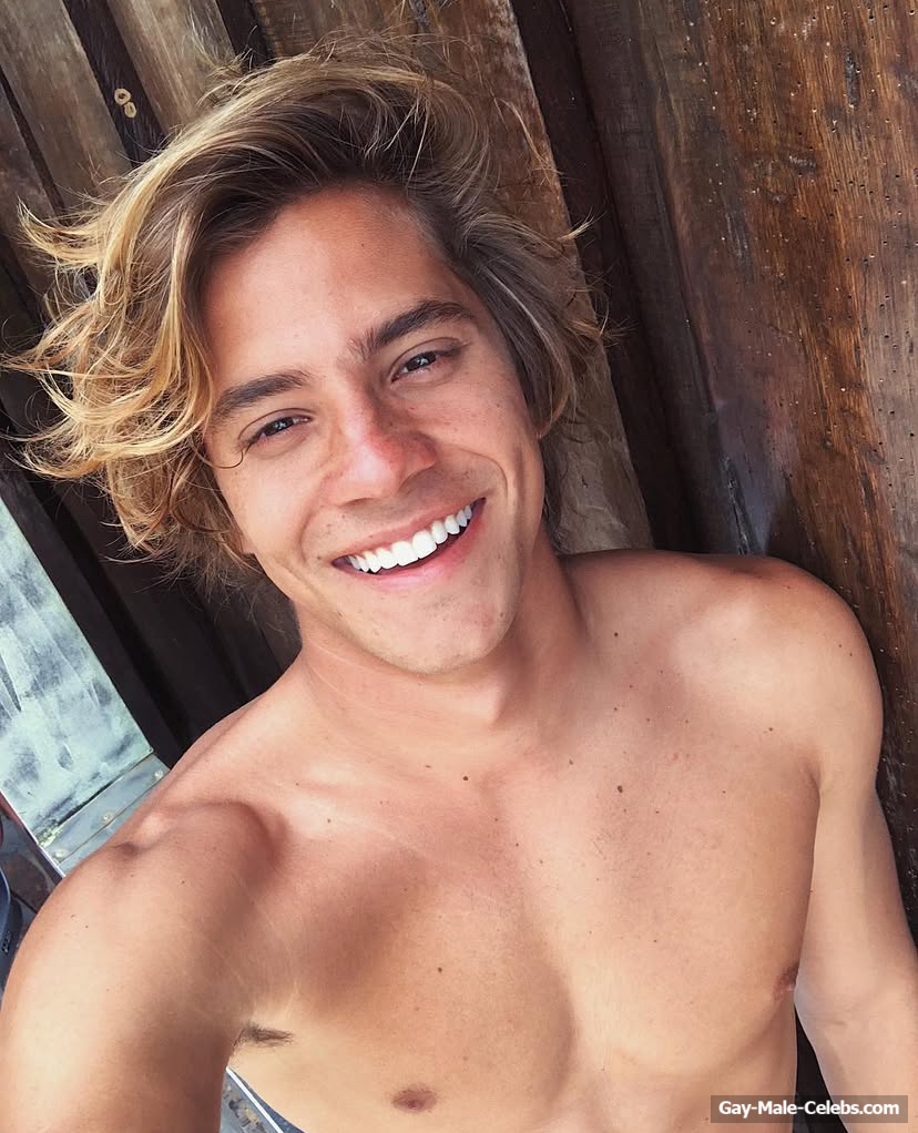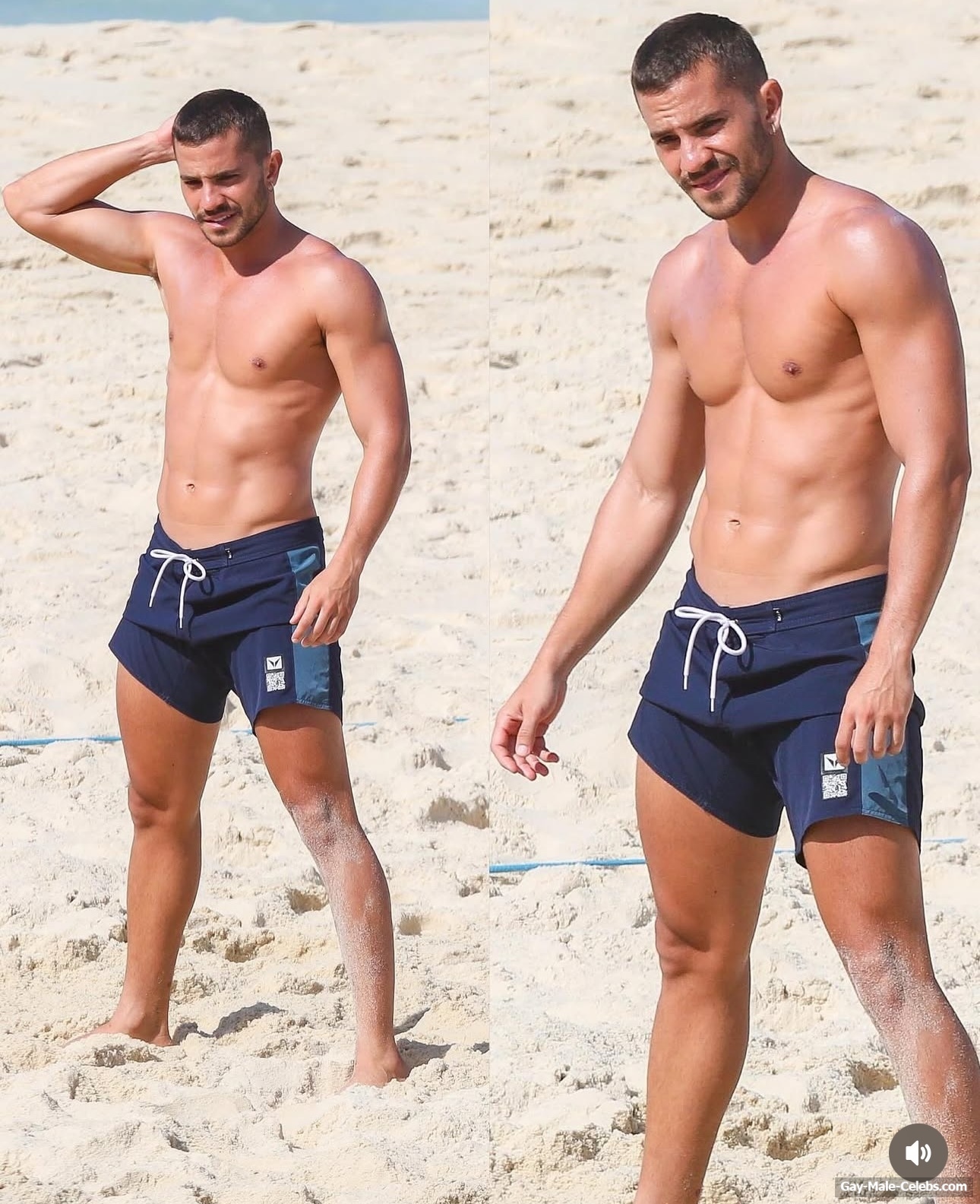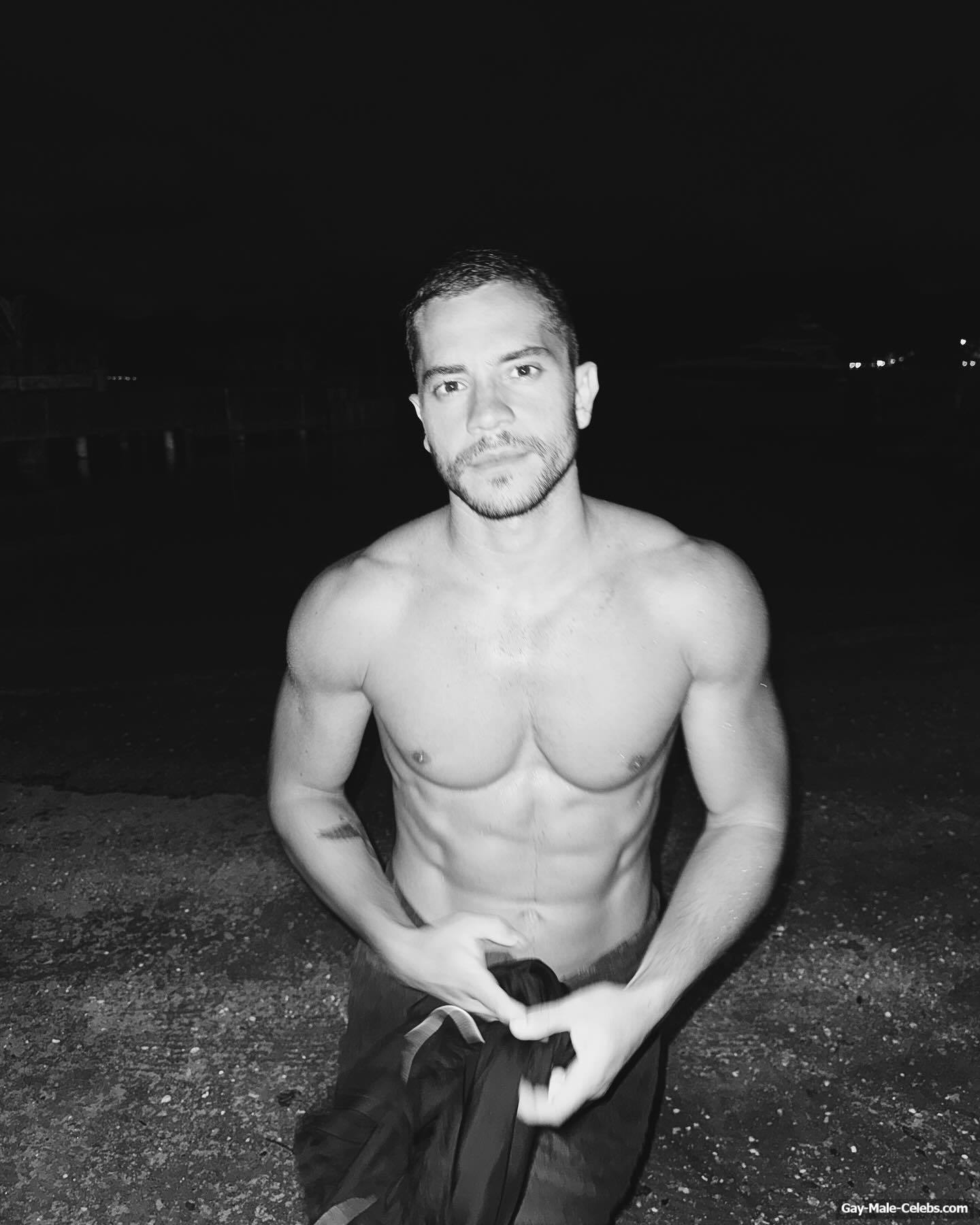 André Lamoglia has a sexy and muscular body and it is good that this hunk is not shy to show it. While he is relaxing on the beach, we can admire his naked torso. And even though his swim trunks are not very tight, his impressive bulge is visible through them.
