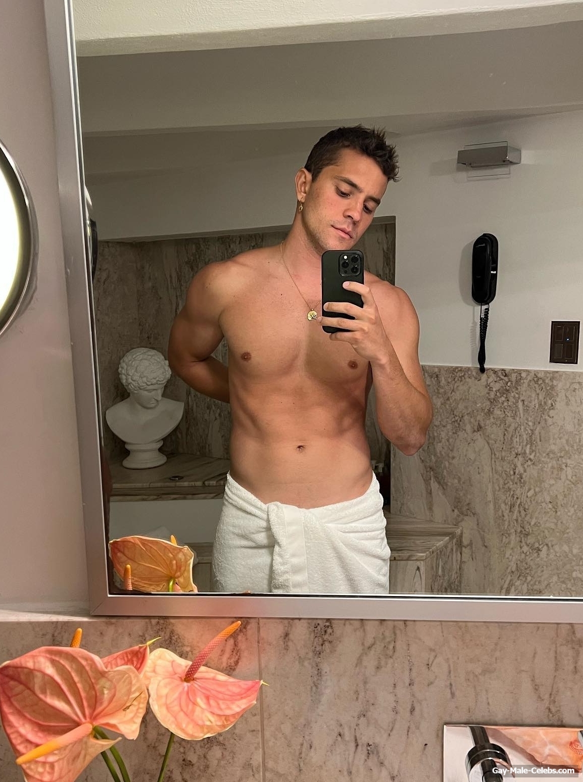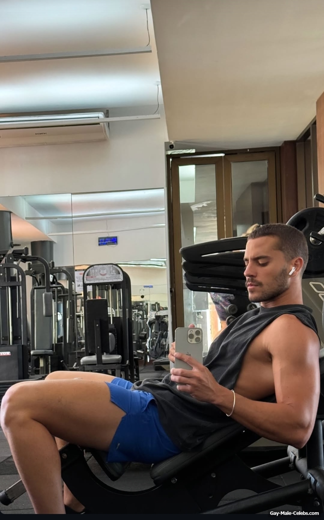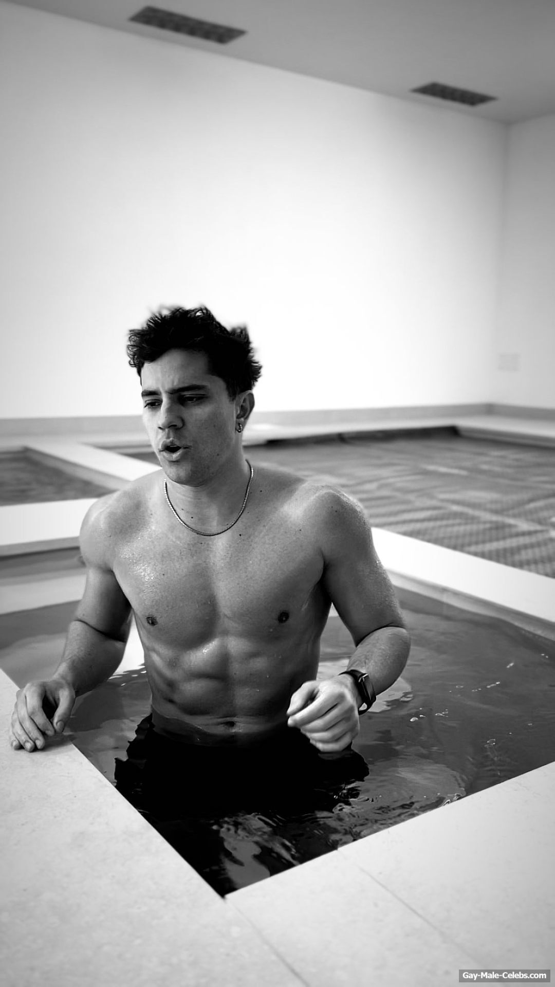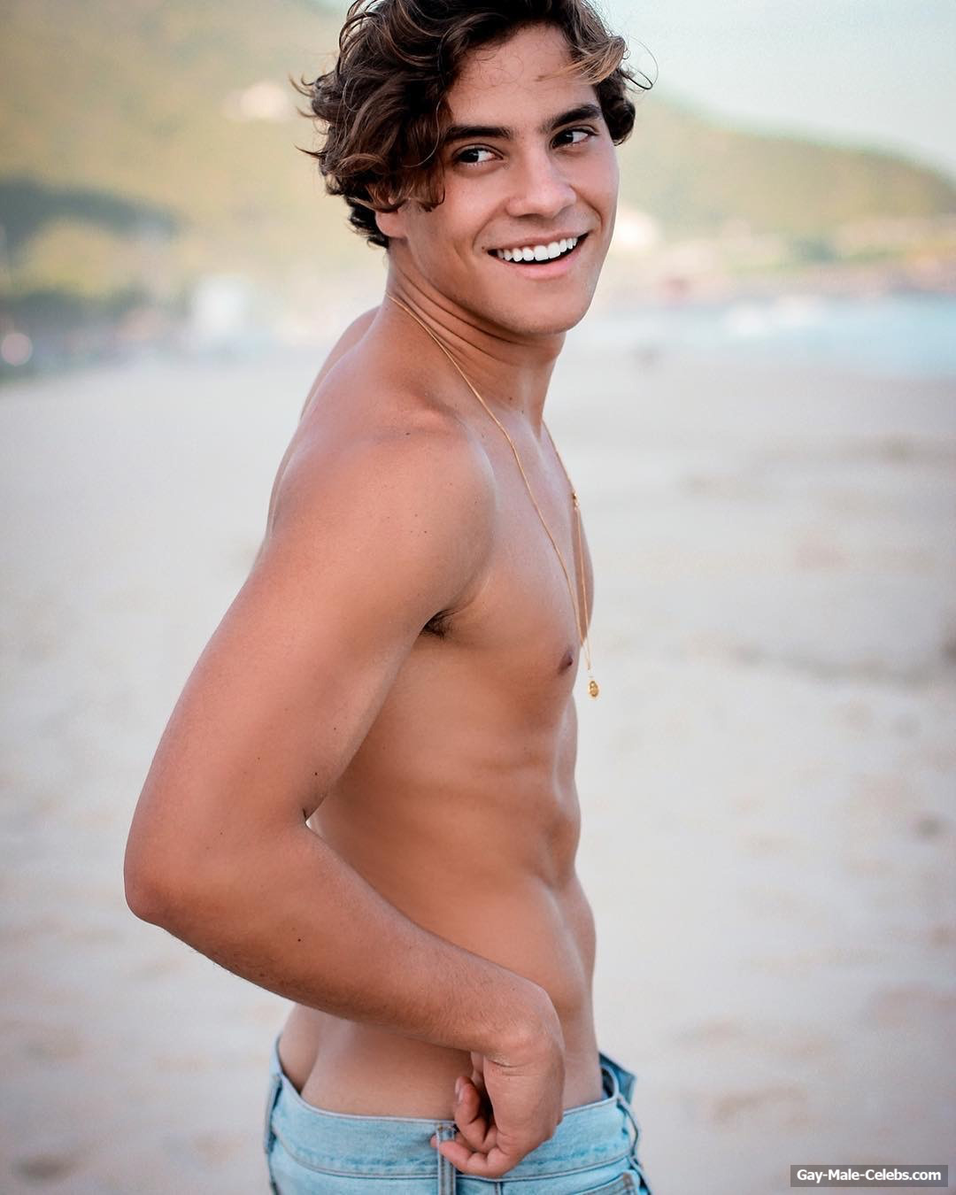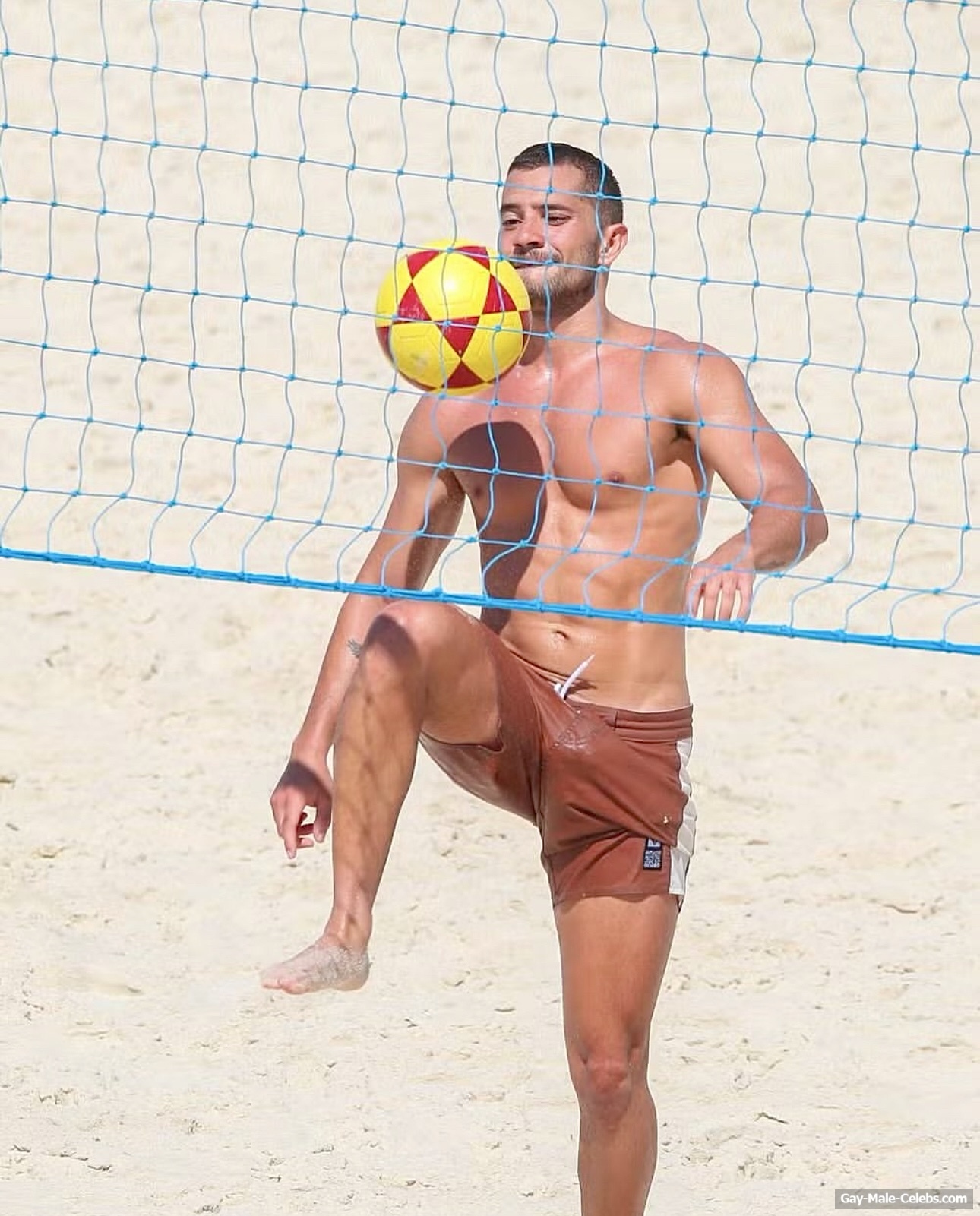 André Lamoglia has a sexy and muscular body and it is good that this hunk is not shy to show it. While he is relaxing on the beach, we can admire his naked torso. And even though his swim trunks are not very tight, his impressive bulge is visible through them.