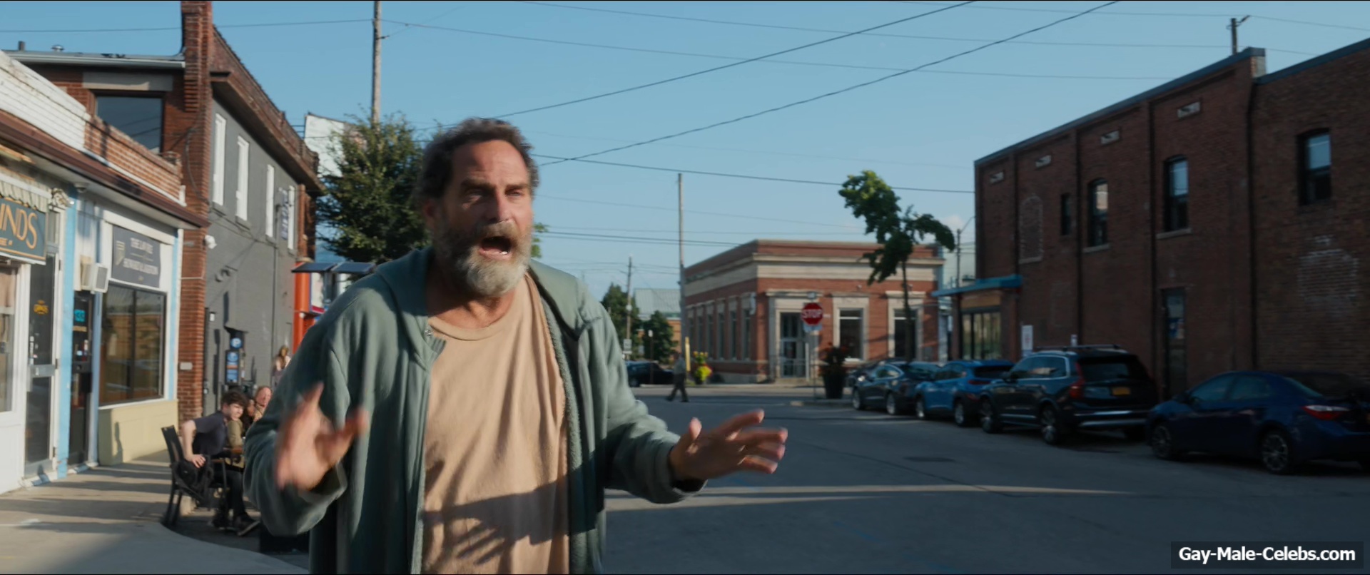 Don’t miss the racy shots from “FUBAR”! Andy Buckley is not shy to go out to the police in only one sweater. He starts to argue with the policeman, but all we are interested in is the fact that he is not wearing pants, so his bare butt is on full display. And the way he sexily bent over the car deserves special attention.