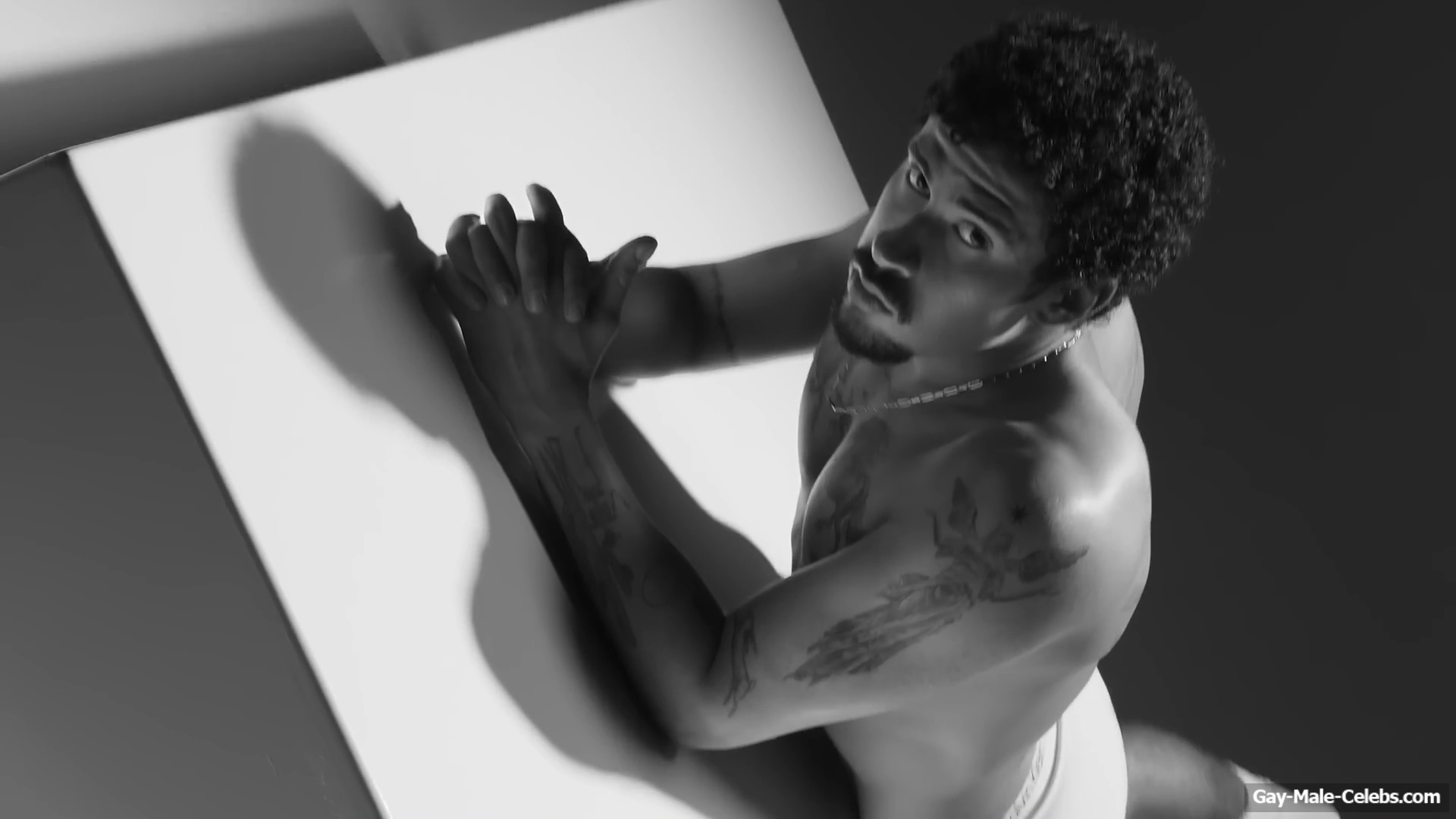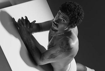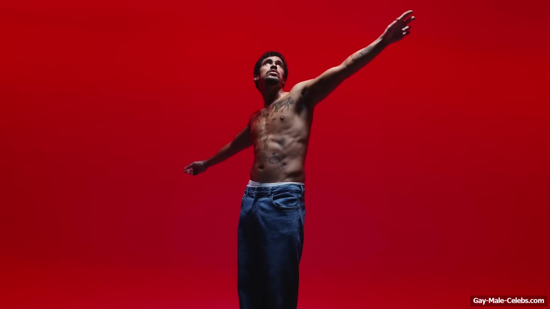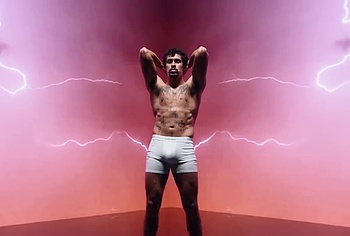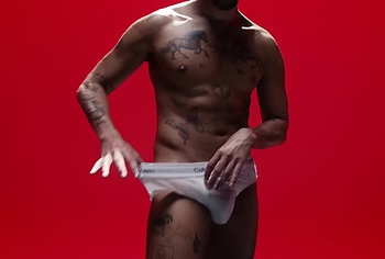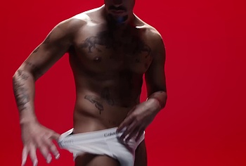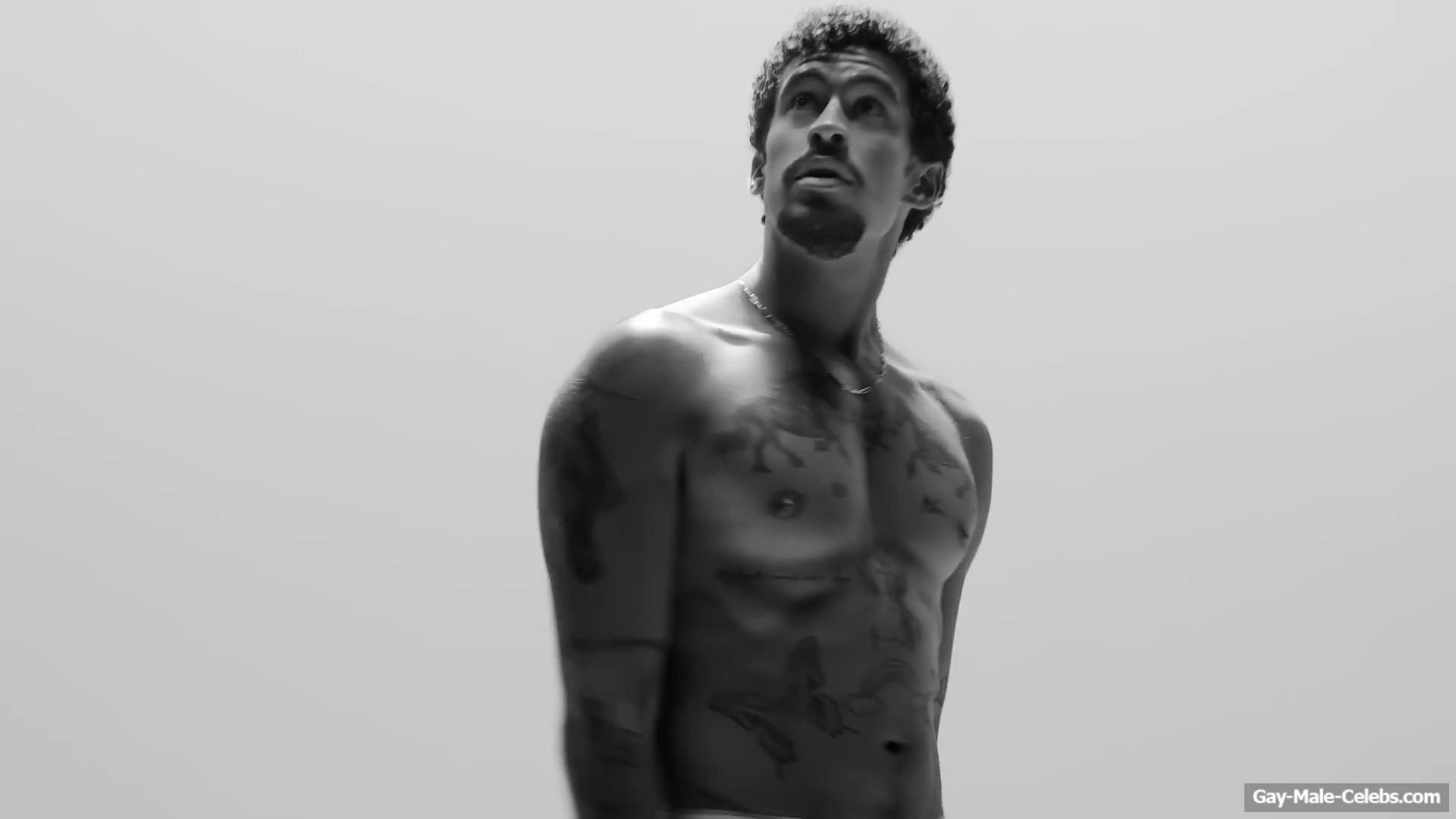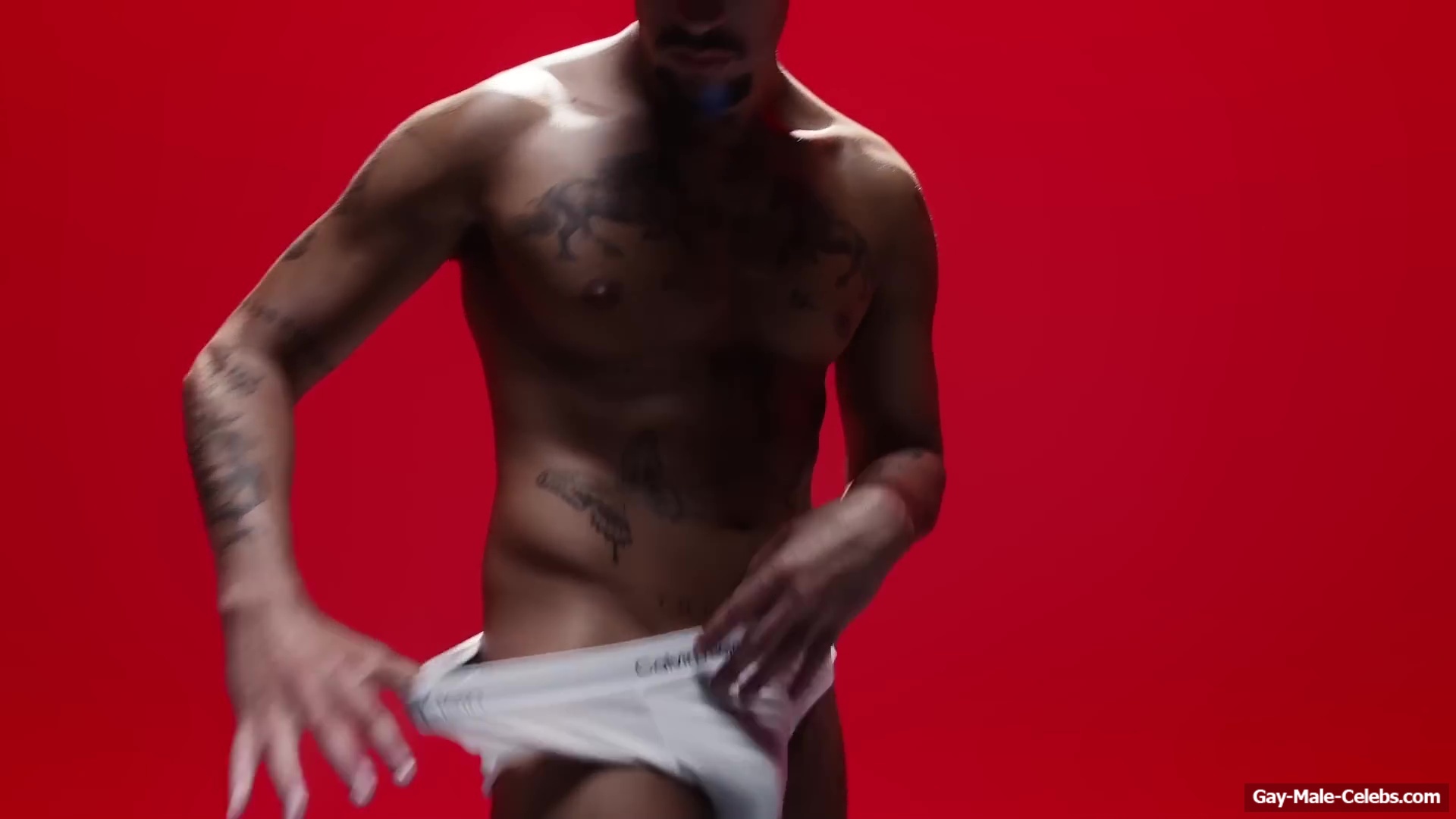 Calvin Klein knows exactly who to choose for their for underwear advertisements. This time Bad Bunny only in white boxers shows off his sexy body. Everything about this stud is perfect. Bad Bunny has a muscular torso. Moreover, we can admire his impressive bulge forever.