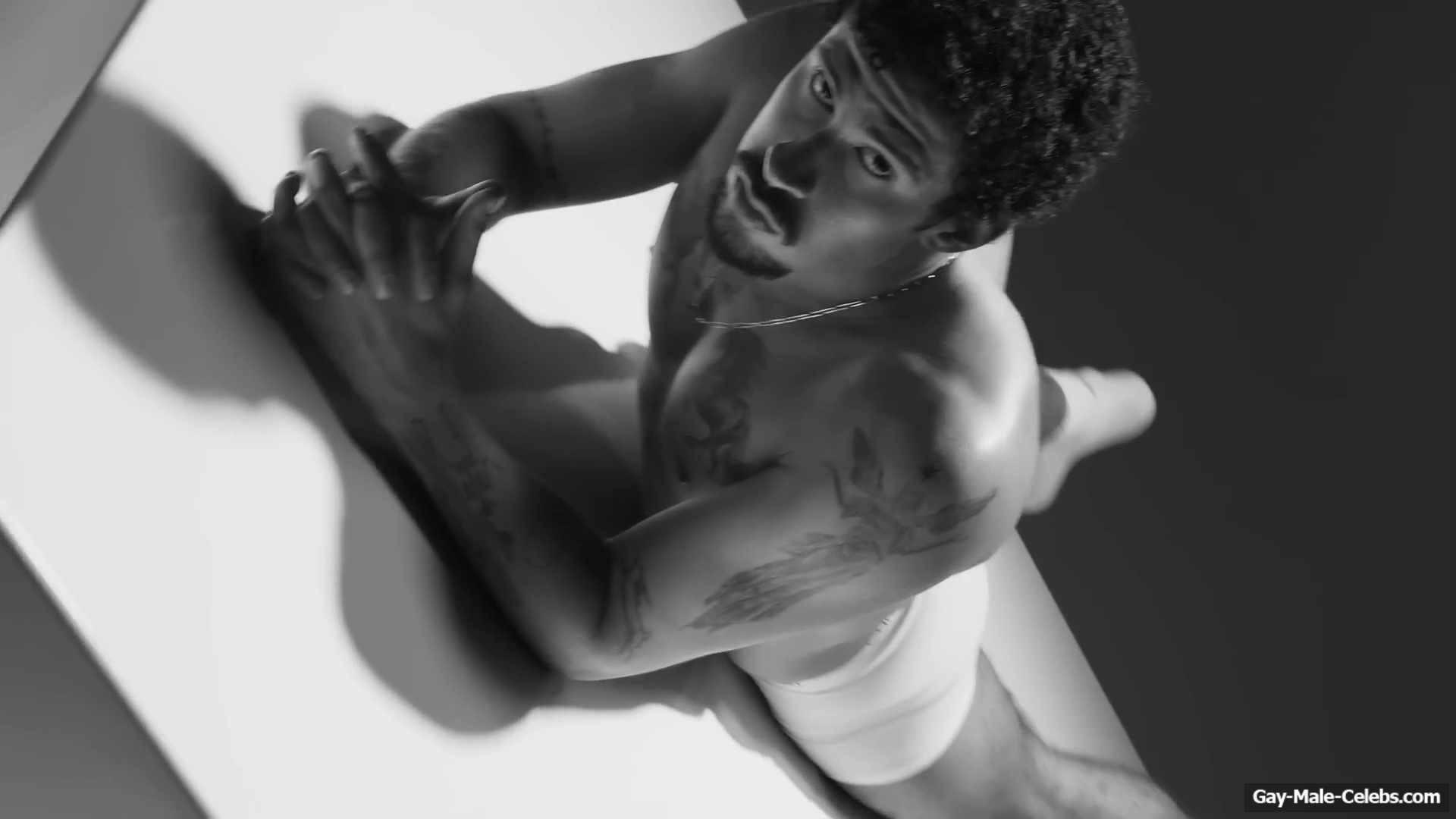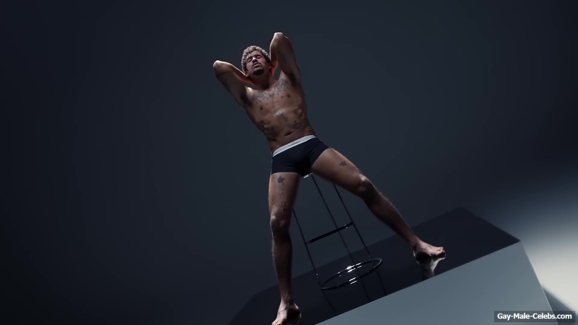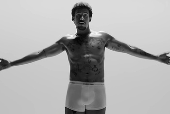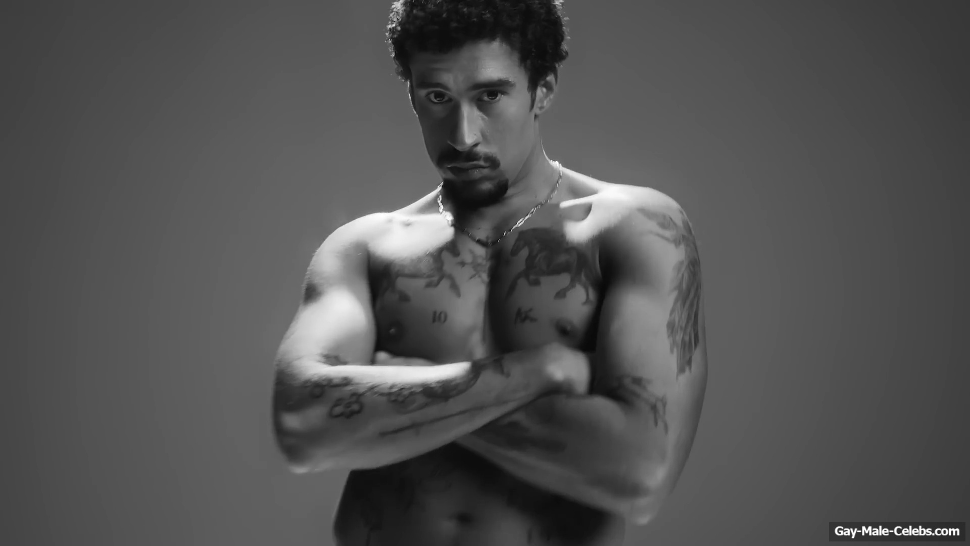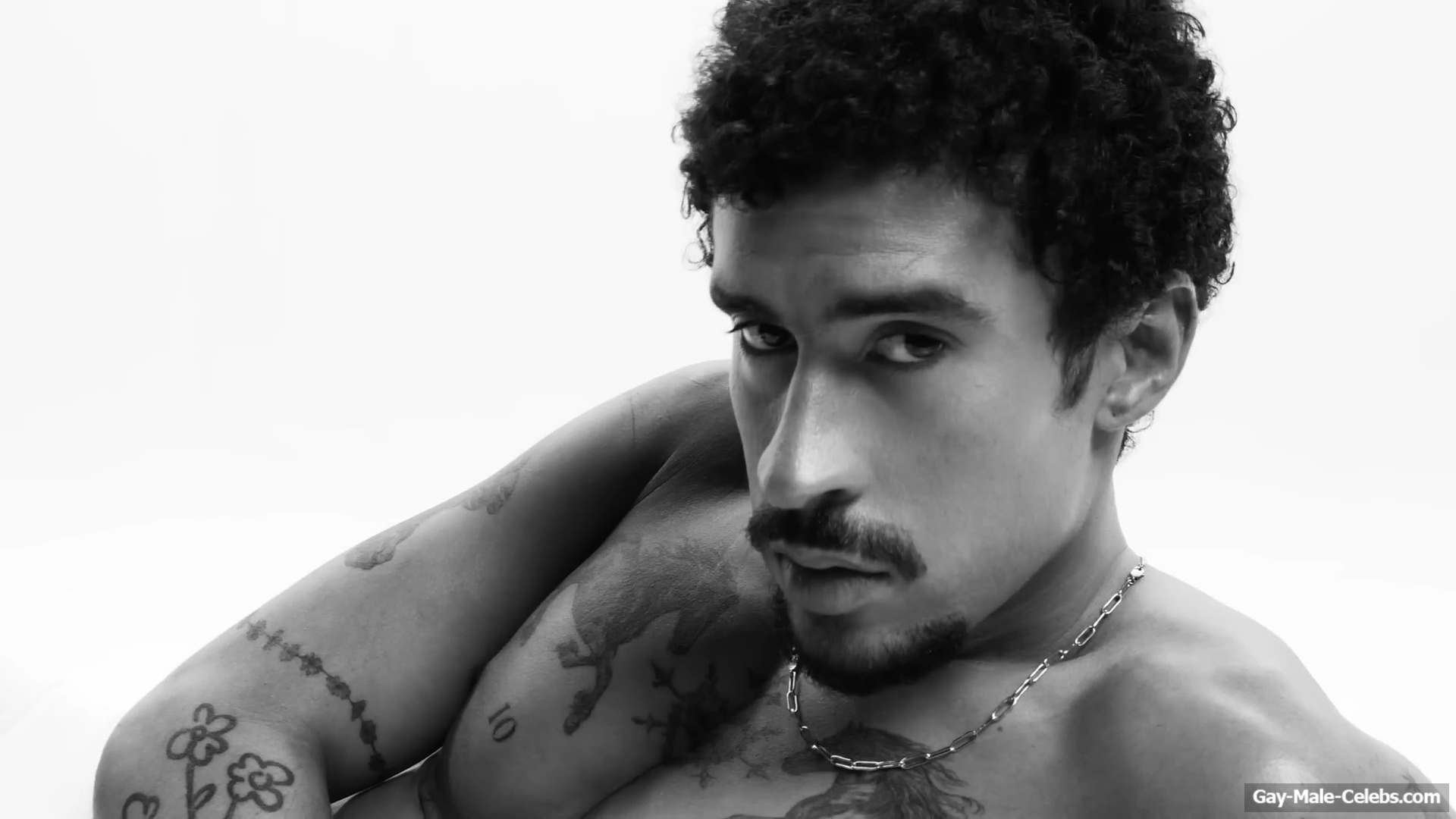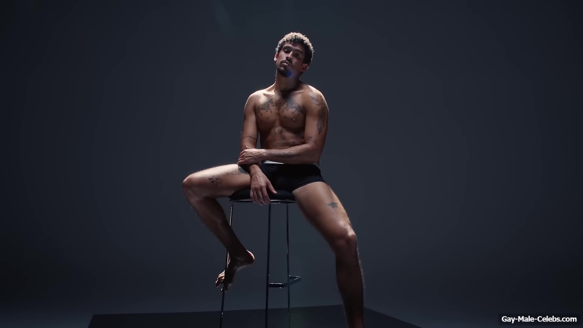Calvin Klein knows exactly who to choose for their for underwear advertisements. This time Bad Bunny only in white boxers shows off his sexy body. Everything about this stud is perfect. Bad Bunny has a muscular torso. Moreover, we can admire his impressive bulge forever.