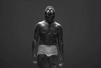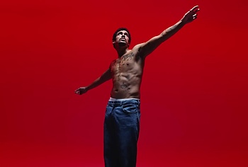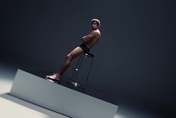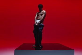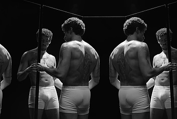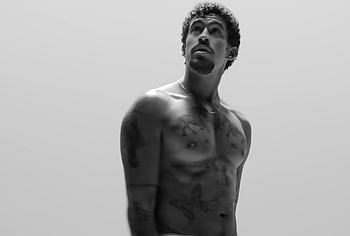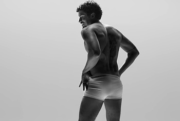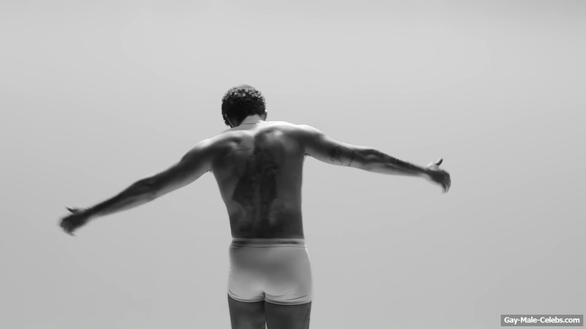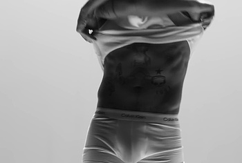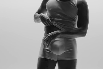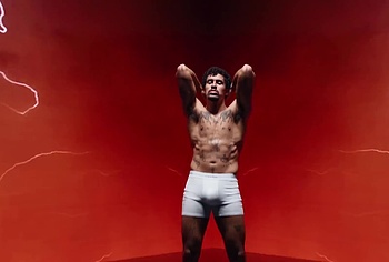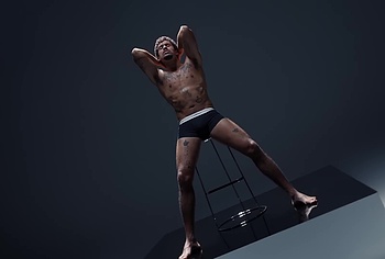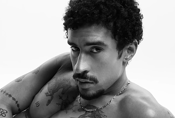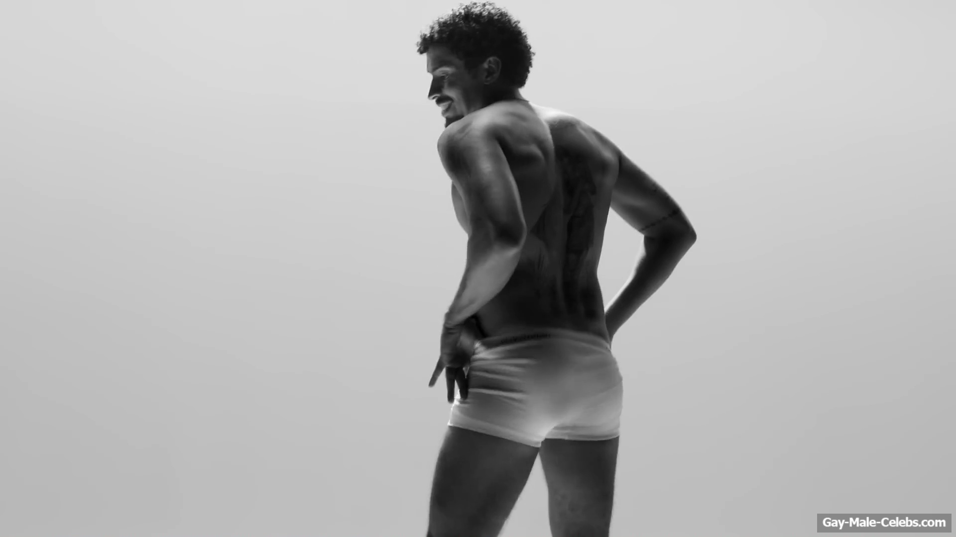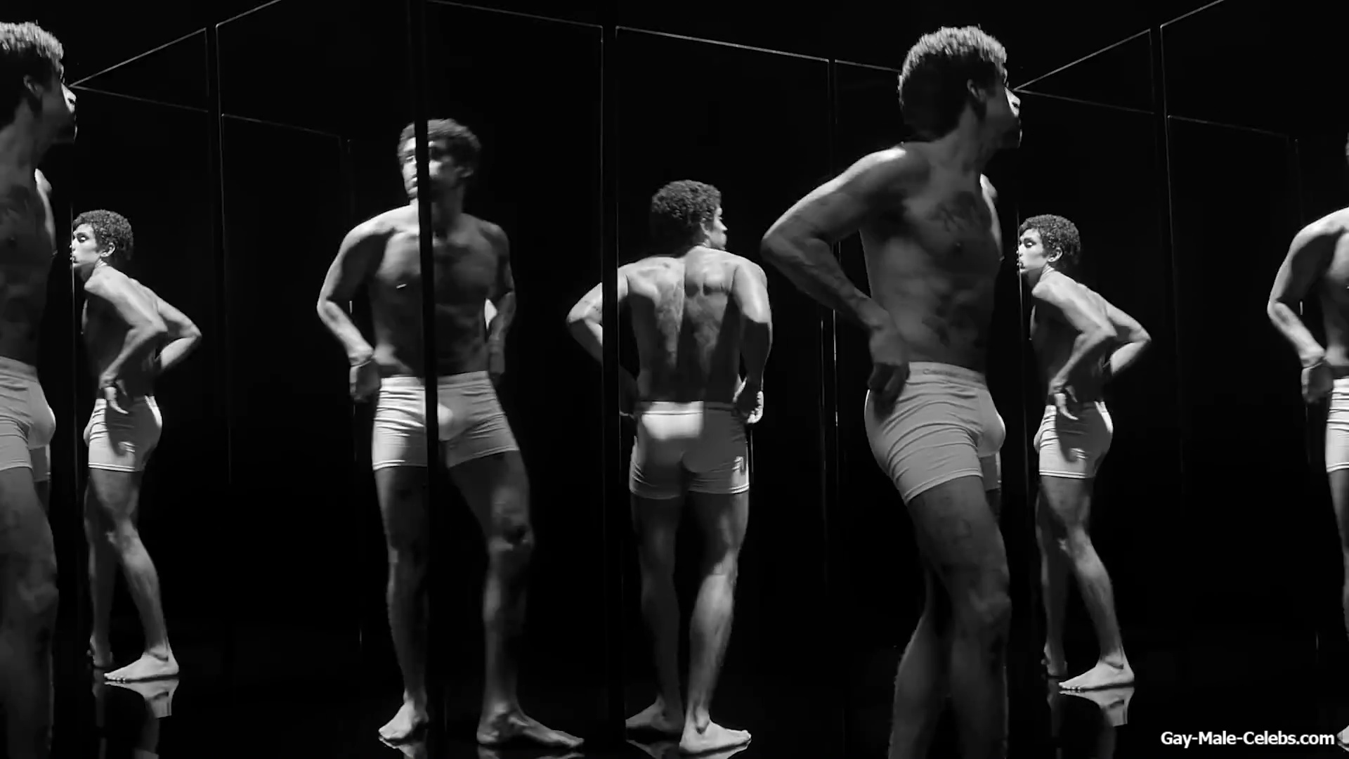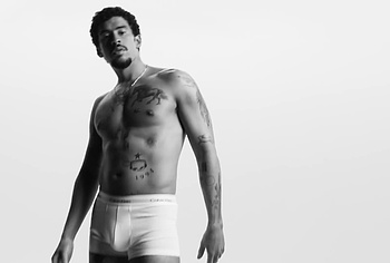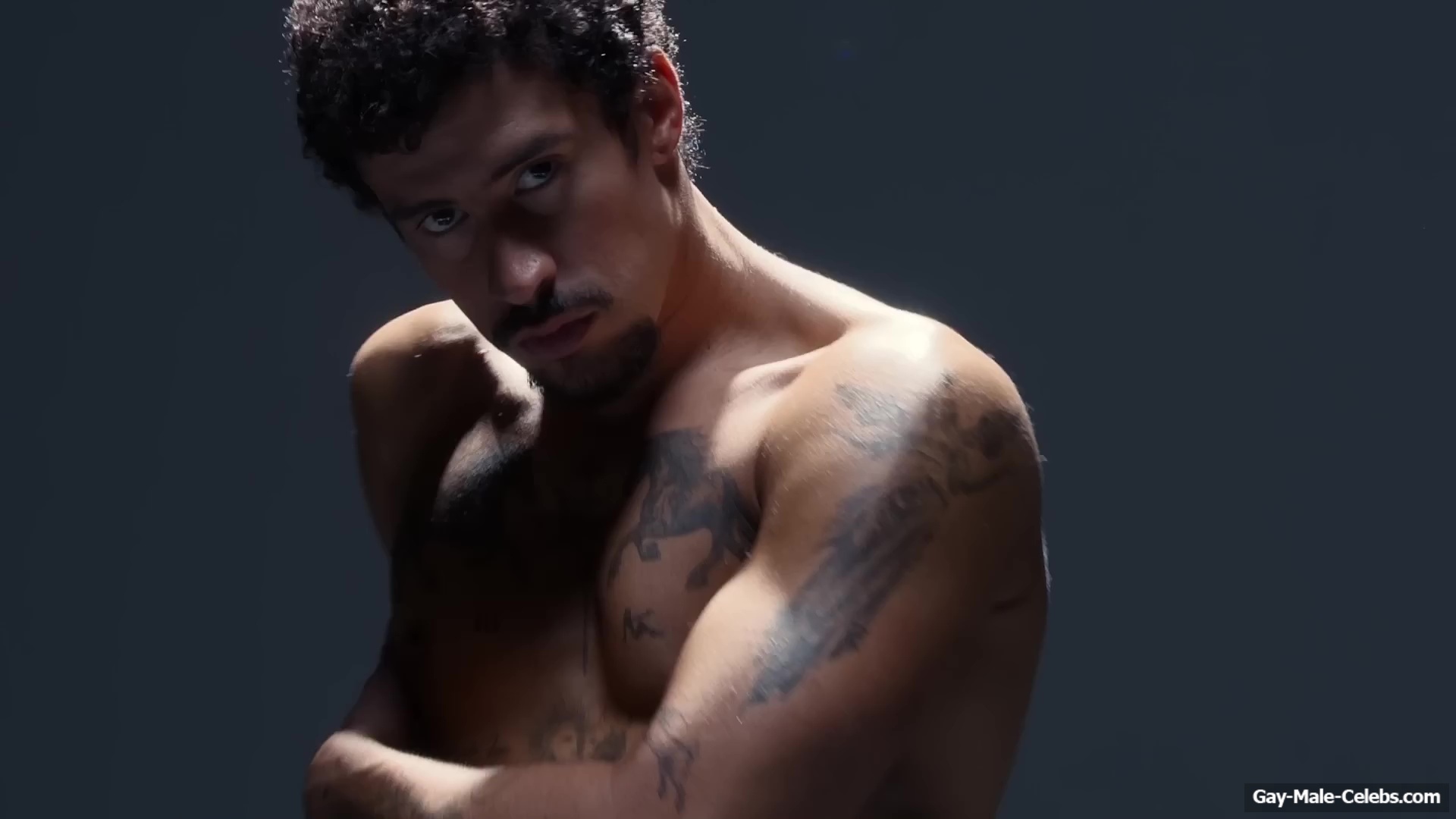 Calvin Klein knows exactly who to choose for their for underwear advertisements. This time Bad Bunny only in white boxers shows off his sexy body. Everything about this stud is perfect. Bad Bunny has a muscular torso. Moreover, we can admire his impressive bulge forever.