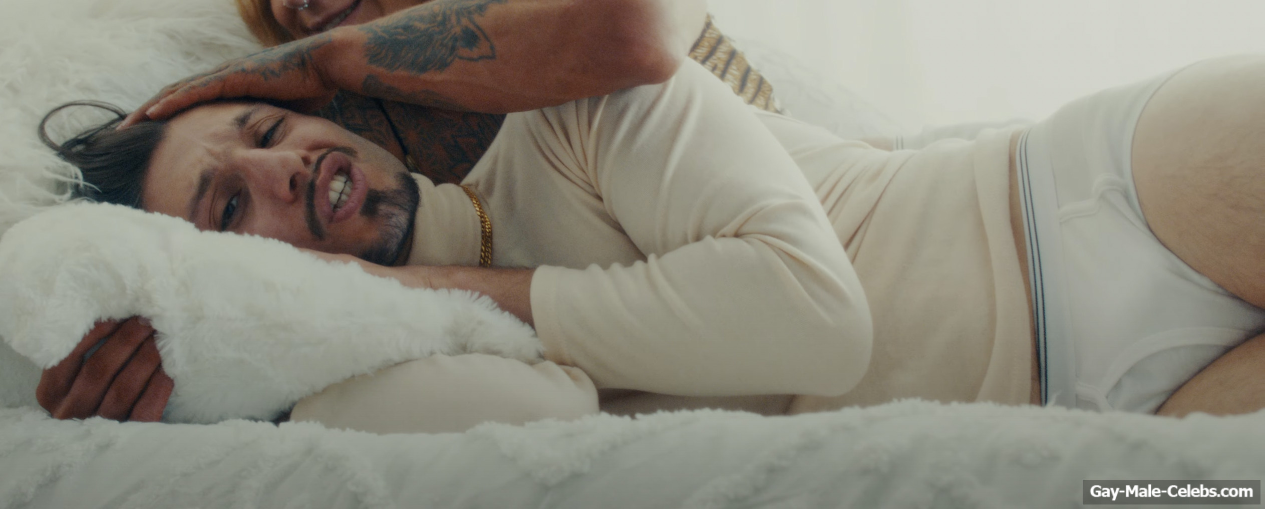 Check out how Canadian rapper Bbno$ isn’t afraid to show off his stuff! This guy clearly loves to be photographed in extravagant outfits. And our favorite is the white underwear because it perfectly highlights Bbno$ penis. And his naked tight butt, which is on fulldisplay for all to see, just begs to be kissed!