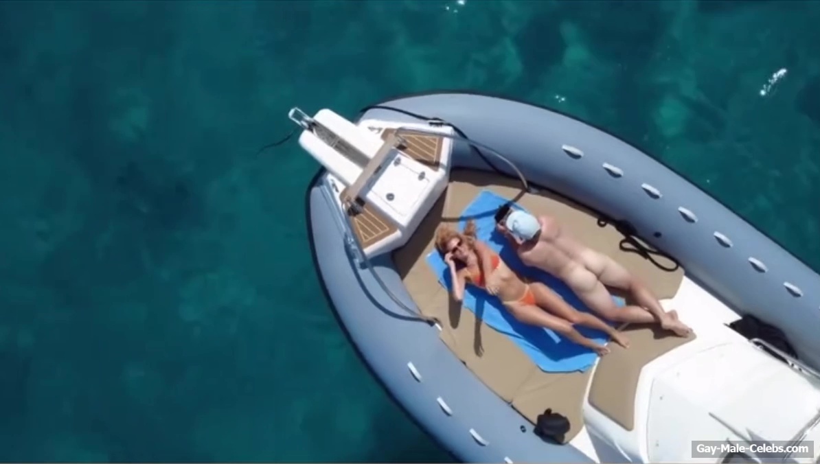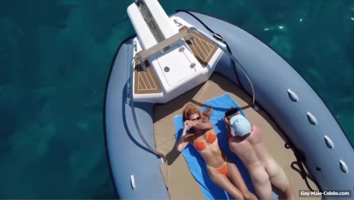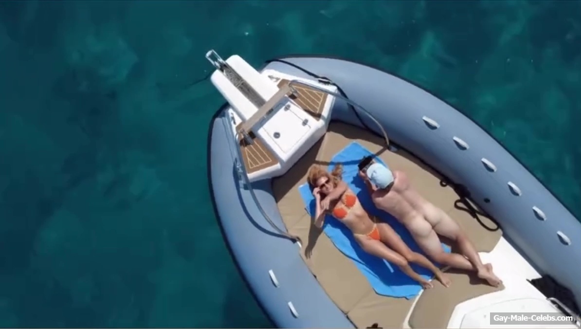 Nude Billy Magnussen decided to show off his proposal to his girlfriend in an original way. He posted a video on Instagram in which he is without swimming trunks, relaxing on a yacht. Although he is lying on his stomach and we cannot enjoy the view of Billy Magnussen’s naked penis, his tight celebrity butt is on full display for us to see.