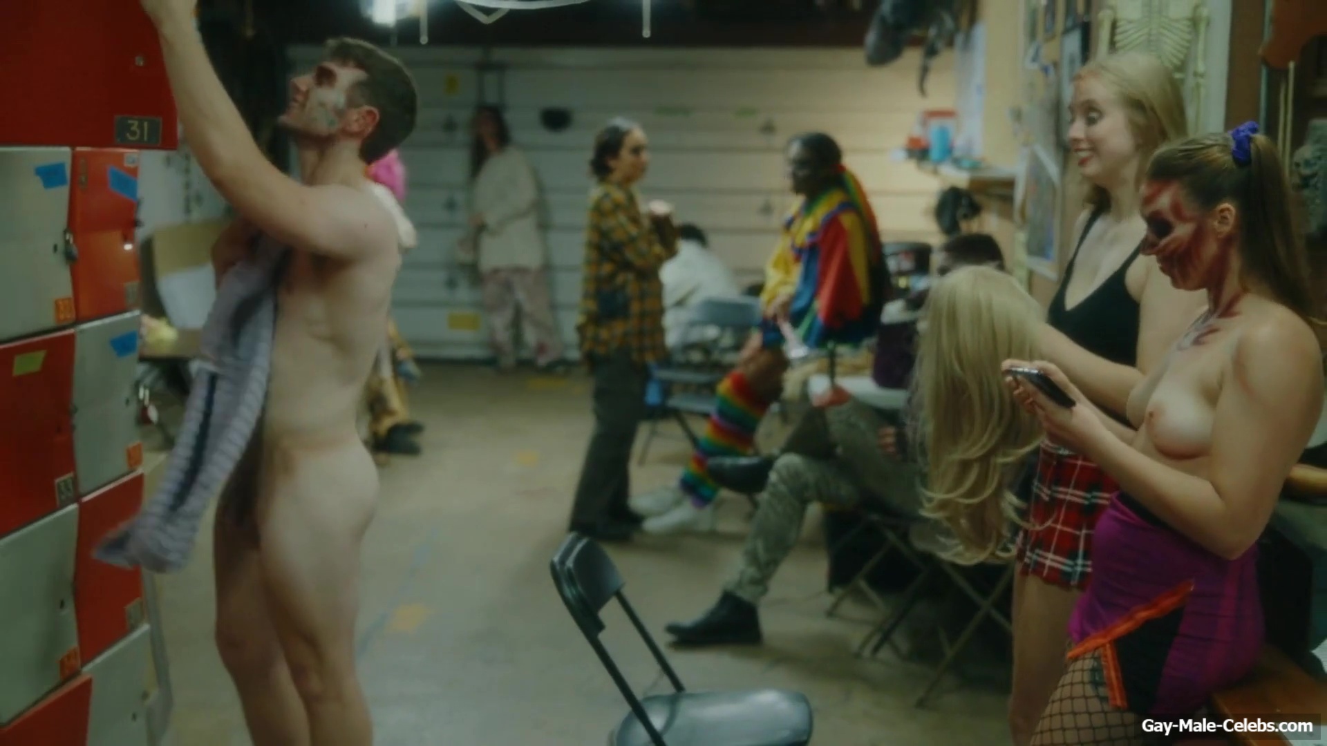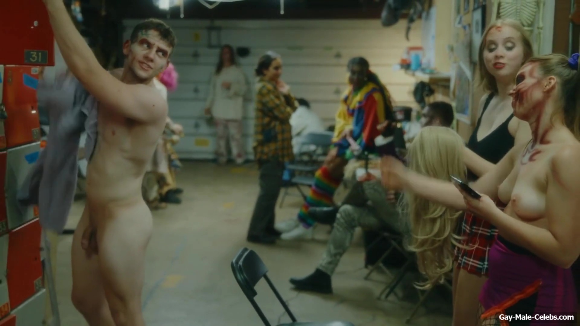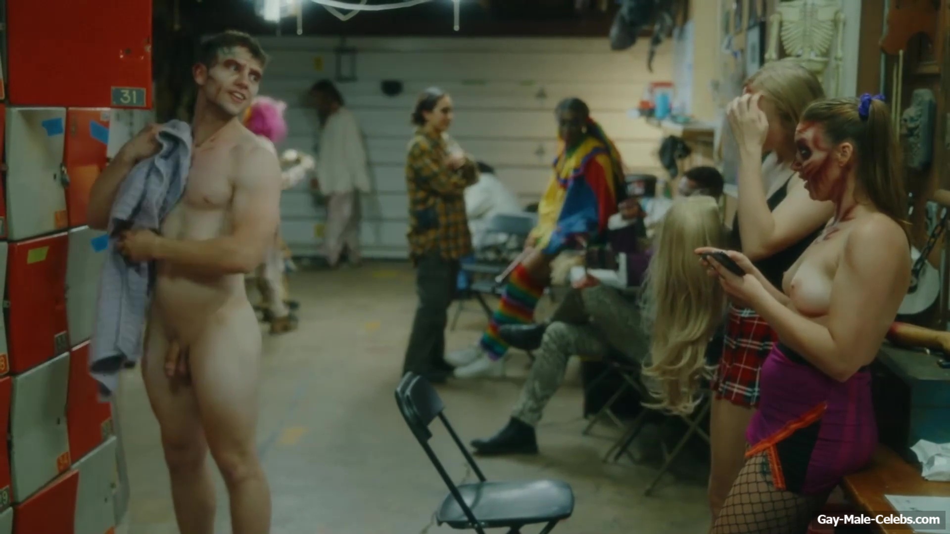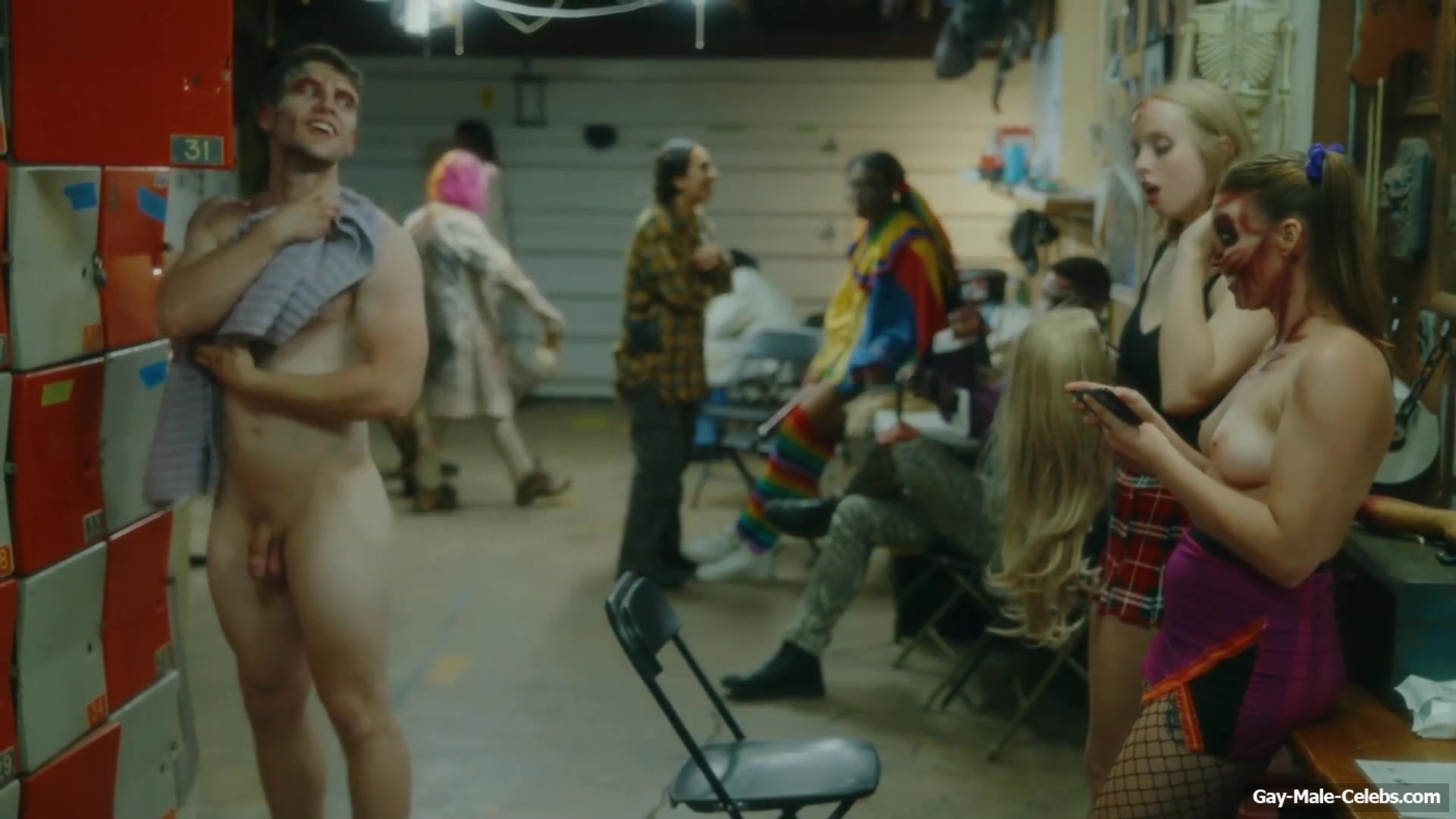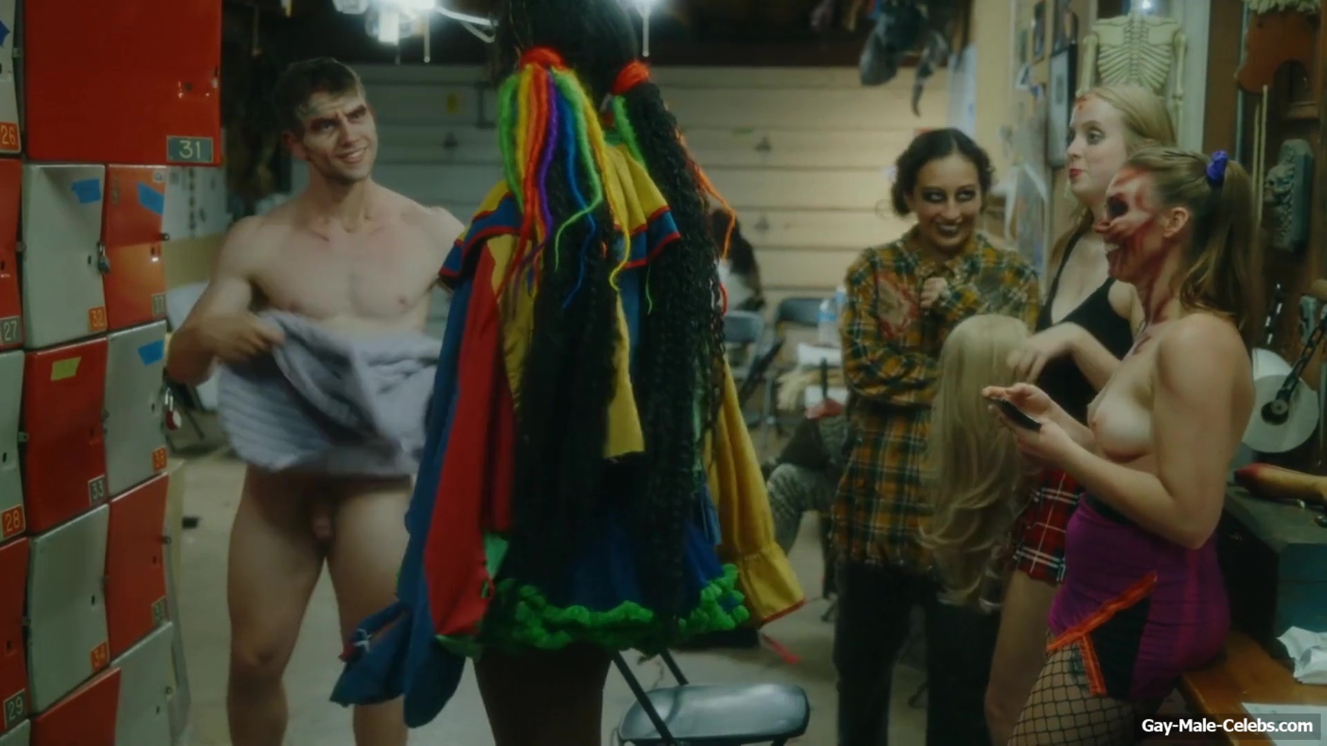 Brent Bentley flashes his cock in “Haunt Season”. The guy came to the dressing room after a shower, and he wasn’t embarrassed to walk around there completely naked and for good reason as Brent has a lot to show. The guy has a hot pumped up body and his dick and huge balls need special attention.