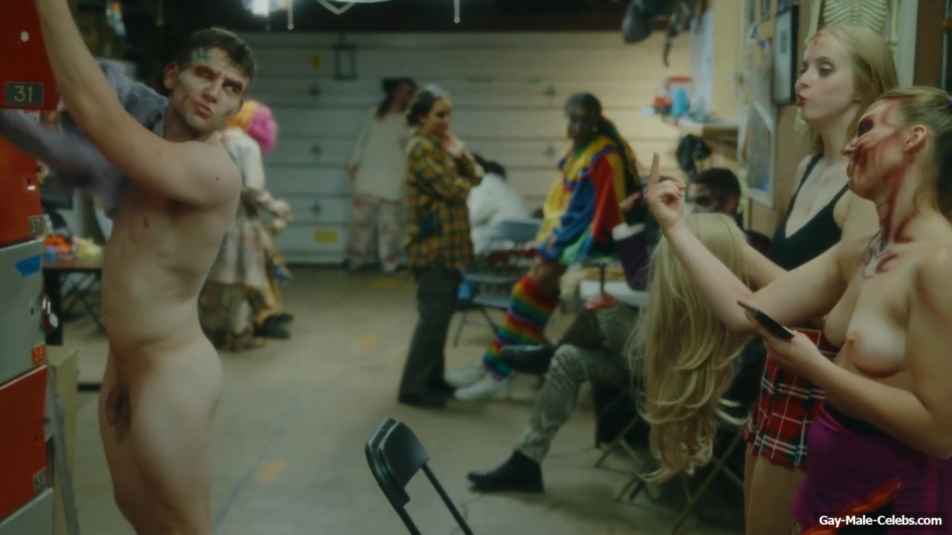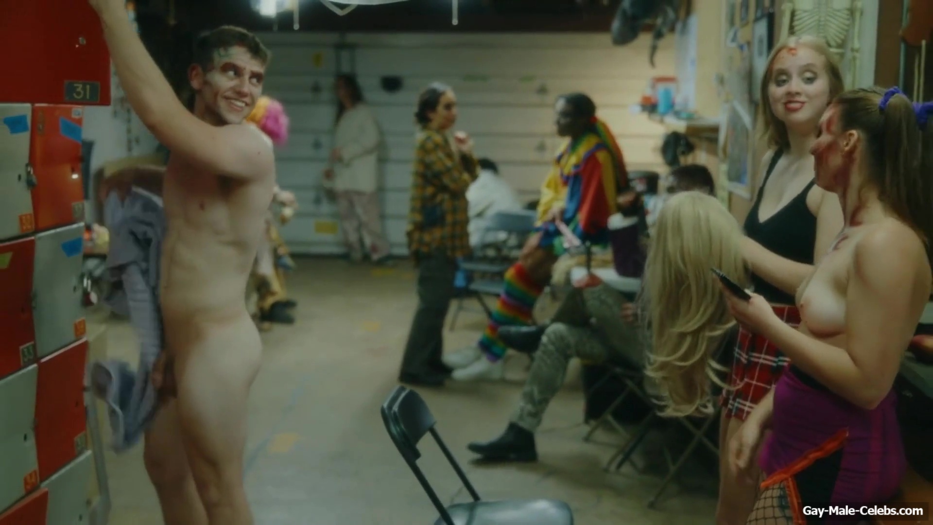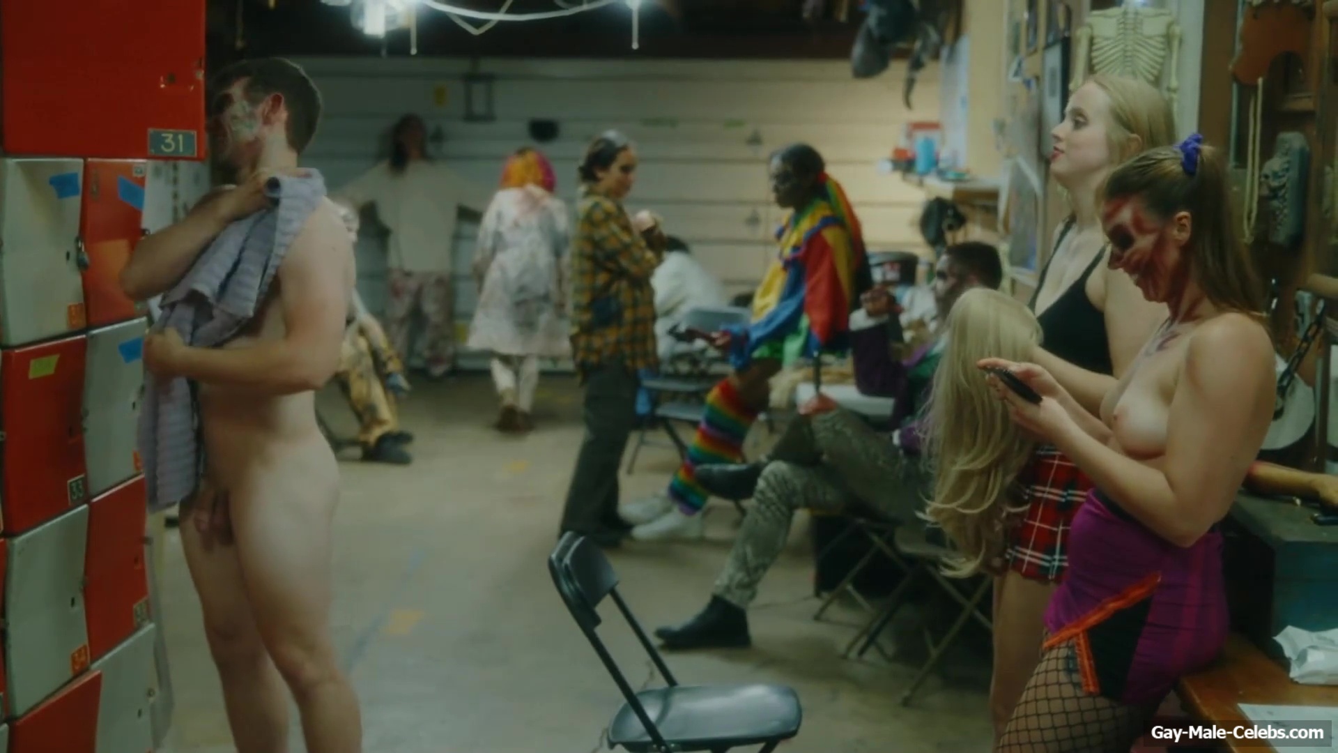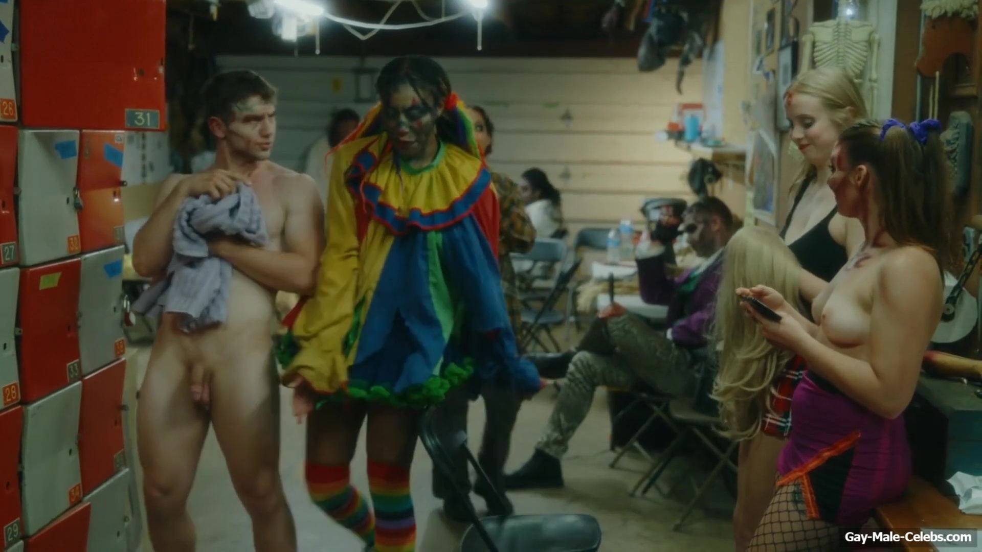 Brent Bentley flashes his cock in “Haunt Season”. The guy came to the dressing room after a shower, and he wasn’t embarrassed to walk around there completely naked and for good reason as Brent has a lot to show. The guy has a hot pumped up body and his dick and huge balls need special attention.