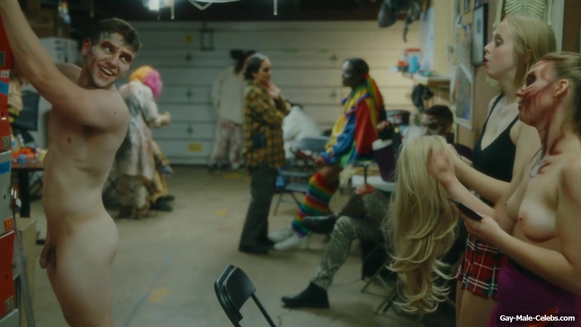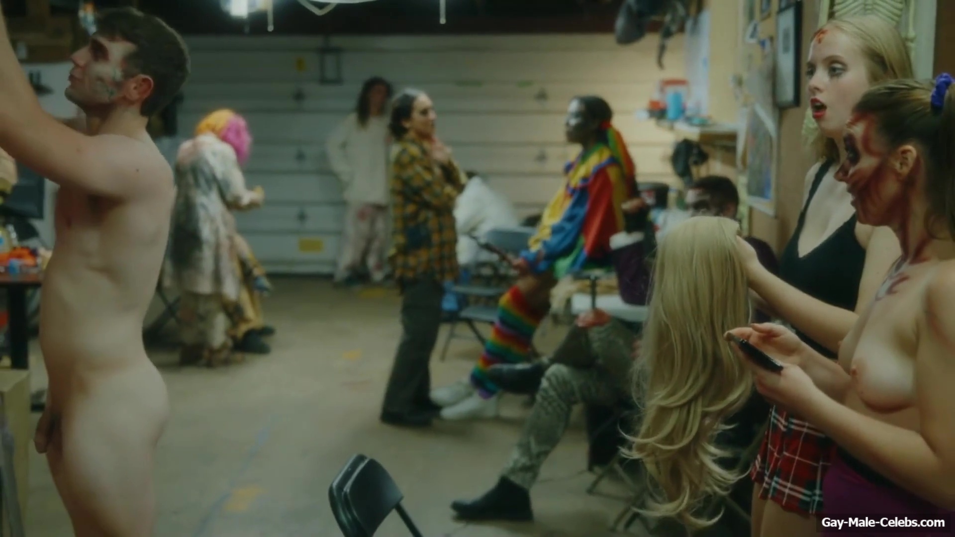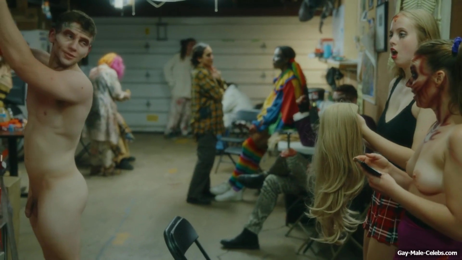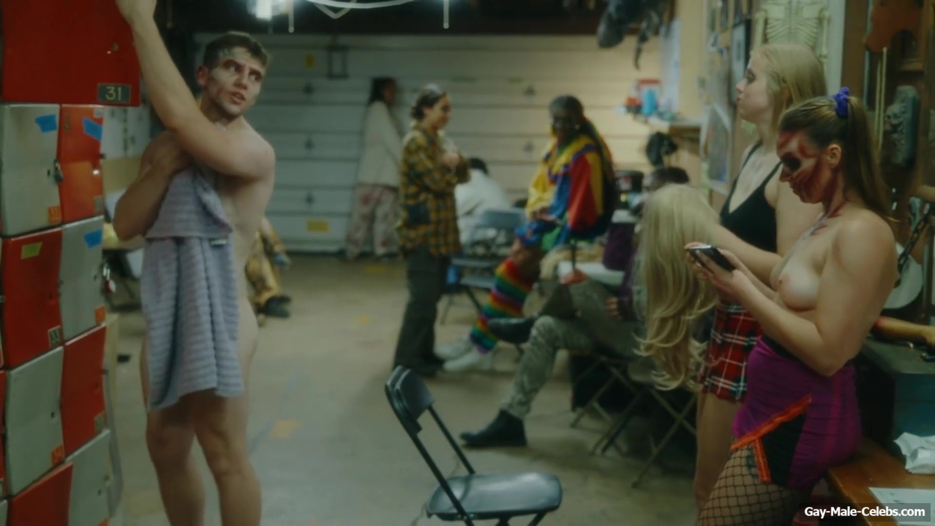 Brent Bentley flashes his cock in “Haunt Season”. The guy came to the dressing room after a shower, and he wasn’t embarrassed to walk around there completely naked and for good reason as Brent has a lot to show. The guy has a hot pumped up body and his dick and huge balls need special attention.