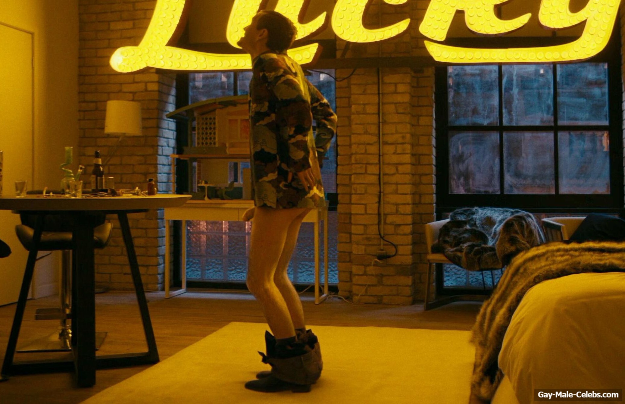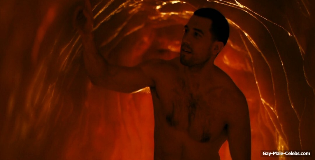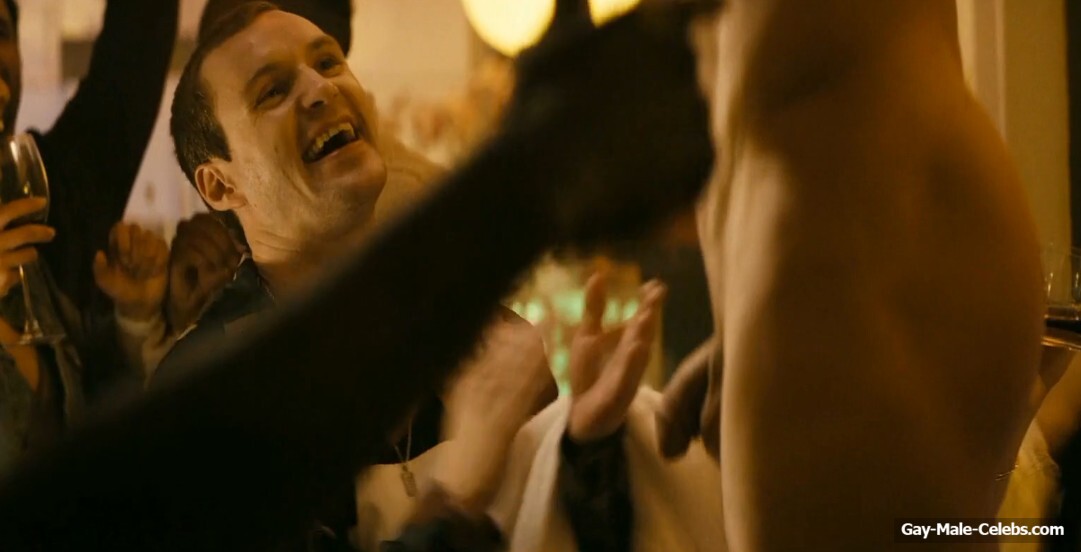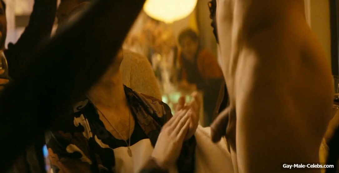 We have already mentioned that “The Boys” is a very unique series, and this post confirms it. In this scene, we can gaze at naked Brett Geddes cock, because he is not shy about showing it off at parties. Moreover, Brett went to the bedroom with Jarrett Siddall, clearly to have sex, but something else happened. This hunk climbed onto Jarrett Siddall dick to give him an orgasm, but something went wrong. Because he sneezed right inside Jarrett, he was simply torn to pieces. We agree that the scene is not pleasant, but we can admire the junk of these two studs.