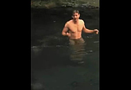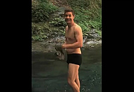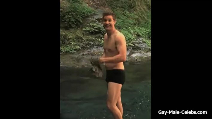 While on a field trip in the woods Bryce Johnson found a mini lake in there. When he saw it he knew that he has to take a swim in it. And so he did! But since that wasn’t planned he didn’t have a swimsuit. And he decided to take off his clothes and jump in there butt naked! Thankfully his friend recorded all of that and exposed his assets!