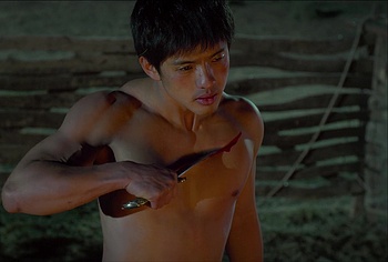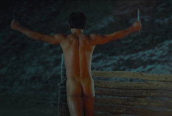 Byron Pang turns up the heat with his hot celebrity body in “Voyage”. The Asian actor does the ritual completely naked, giving us a chance to enjoy his sexy body. Although Byron doesn’t have a big dick, but his nude torso and tight ass is a sight to behold.