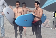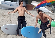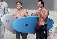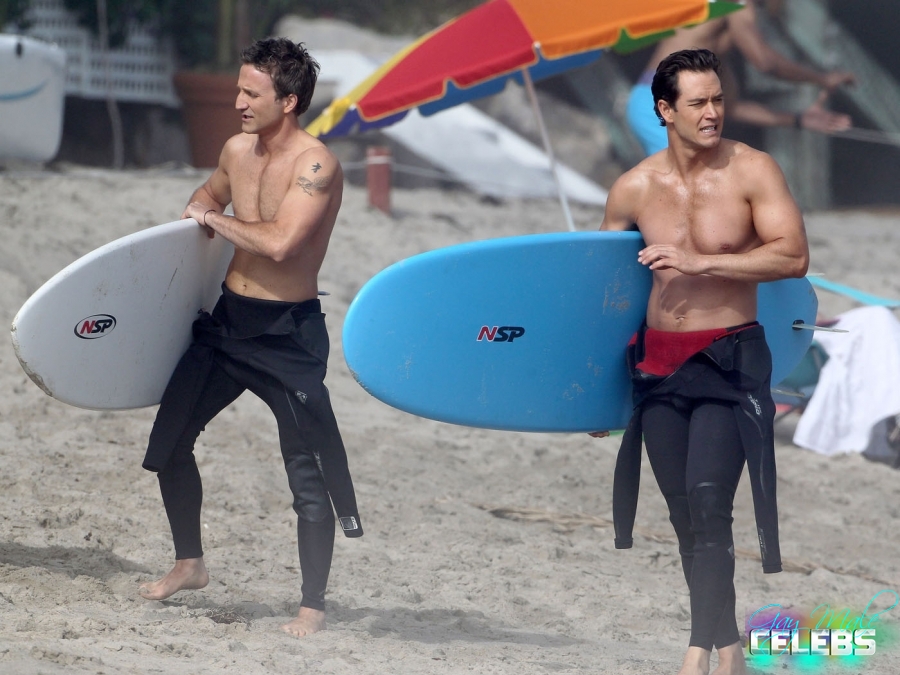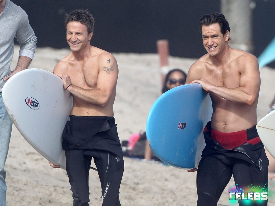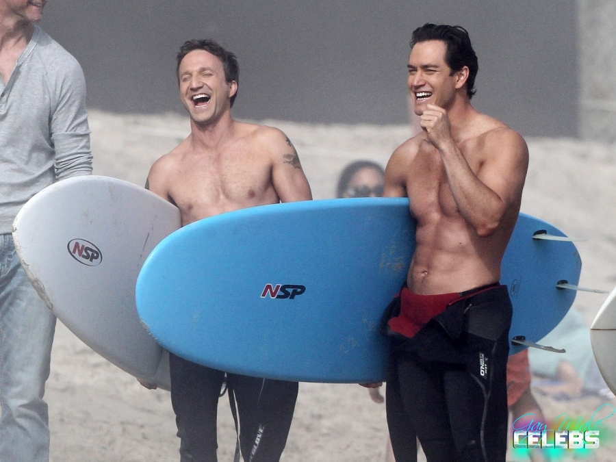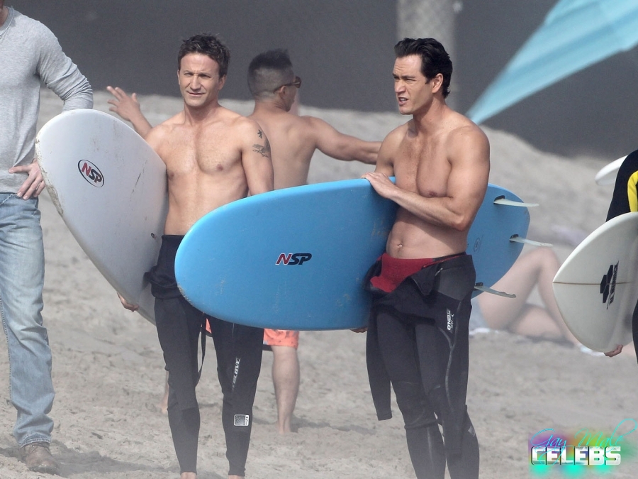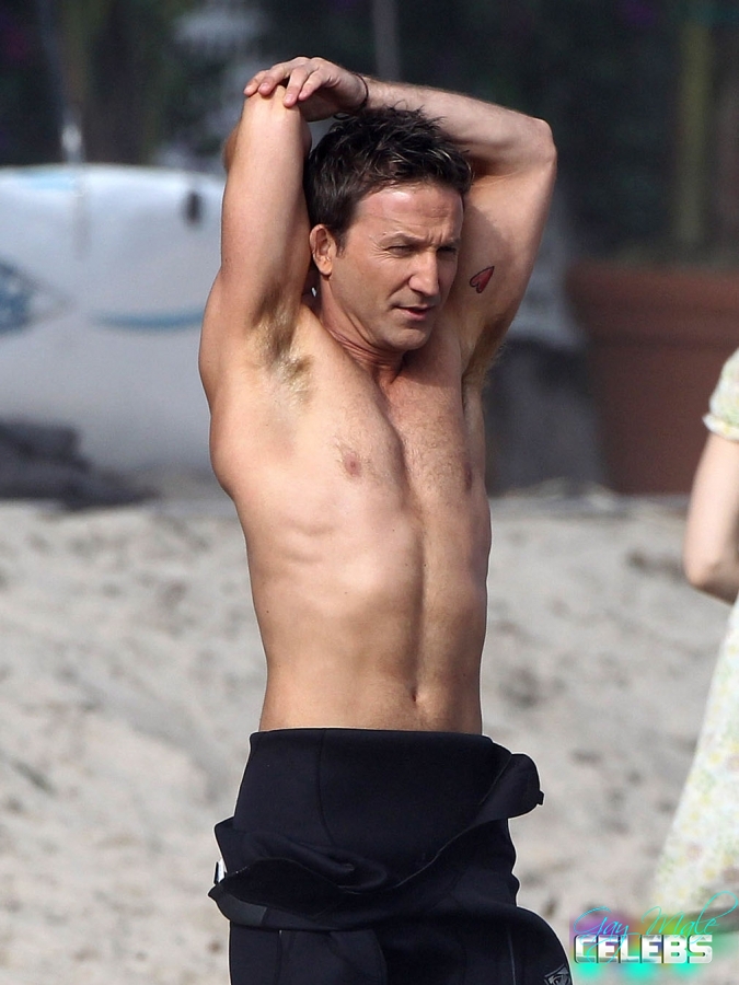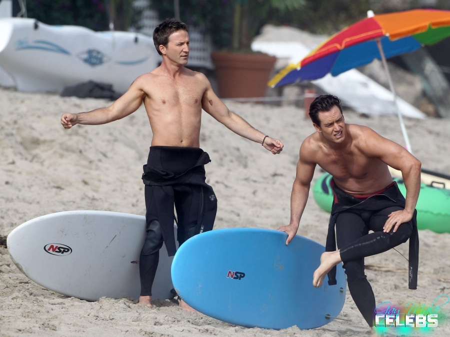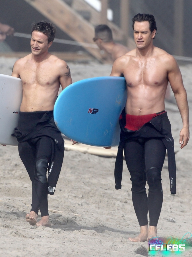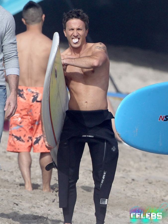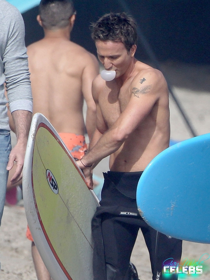 Breckin Meyer is an American actor, comedian and producer he had some good roles in comedy movies and bigger projects. We have pictures of him shirtless with his buddy going surfing. He keeps his body in good shape all the time and you can see that. He is going to the gym but not forcing his muscles too much just the way we like it, he looks excellent.