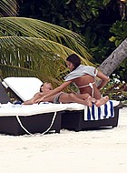 World star and football player Cristiano Ronaldo is enjoying his season off with a hot babe on the beach with white sand. When you have money you can get anything you want. Maybe even the rumors of him being gay might be true. When he is in public he is always around girls but when in private he might have a sexy stud pleasing him when he wants to.