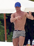 Your heart will melt when you see Cristiano Ronaldo half naked pictures. This football player is in physical excellent shape, so when he strips down to his underwear, your breath quickens. Just look at Cristiano Ronaldo’s big bulge in wet red swim trunks as he talked to a friend on a yacht. There are also other photos of this male celebrity showing off his chiseled torso. By the way, this handsome guy even stripped completely for one of the photo shoots, but his penis and part of his pubic area remained covered with a white sheet.