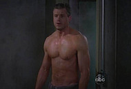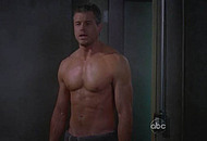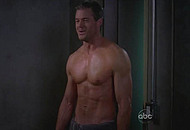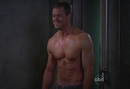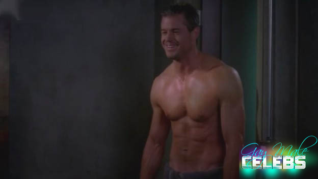 Eric Dane in the famous TV Show “Grey’s Anatomy” walks into the room topless on two girls in his room. One is already in the bed and the other is standing near the bed. He thought he will get a threesome out of it and we get to see his amazing body. We can see Eric was in the gym pumping up his body and you can enjoy his flawless jawline.