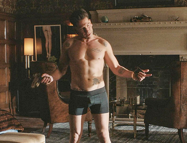 Jon Bernthal turns up the heat in “The Accountant 2”. Jon stands in front of the mirror and rehearses his speech. All the while, he’s wearing only black boxers, so we can enjoy his naked torso. The guy rehearses hard walking around the room. And his huge bulge is showing through his underwear.