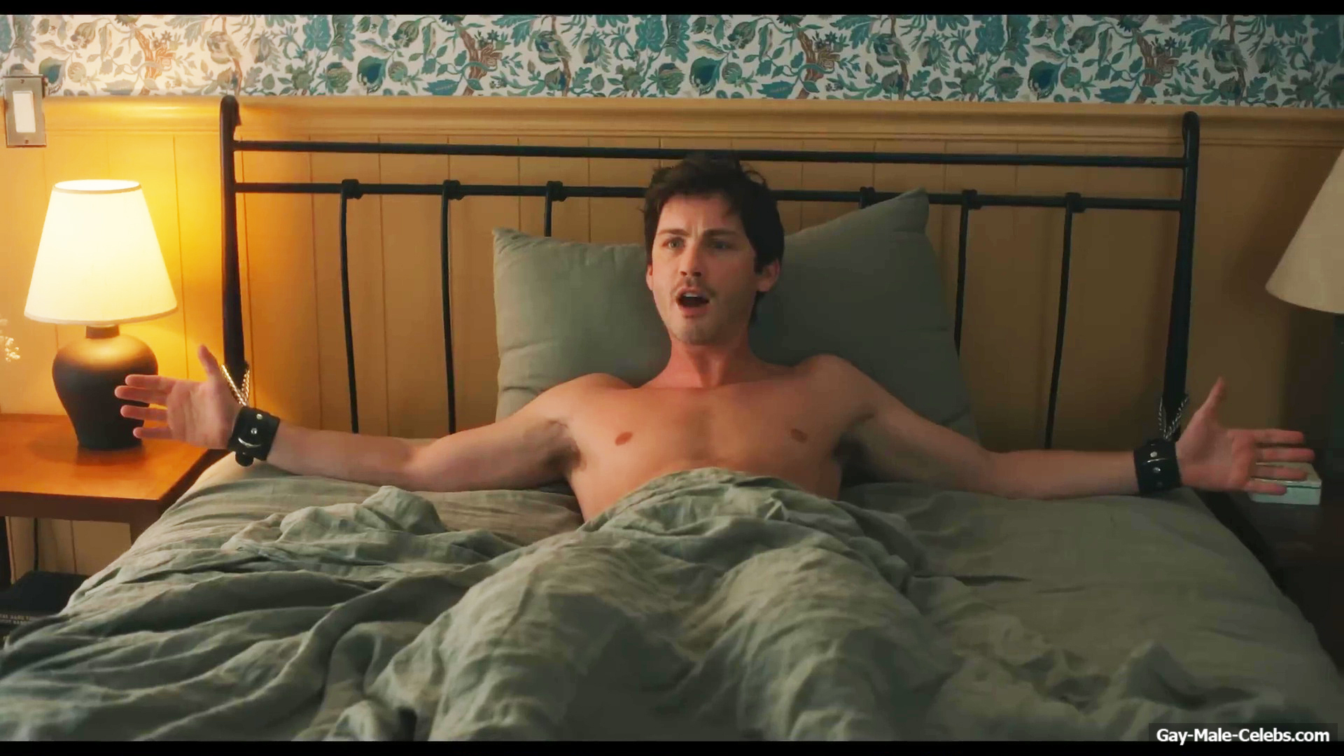 Don’t miss how helpless Logan Lerman submits in “OH, HI!”! This movie hasn’t even been released yet, but it has already attracted a lot of interest. Logan clearly wanted to have some fun with the girl, but he didn’t expect to end up in handcuffs. You have to agree that the sight of submissive Loganwith a gag in his mouth is very erotic! This hunk didn’t manage to fuck the girl, but we can be in awe of his naked muscular torso.