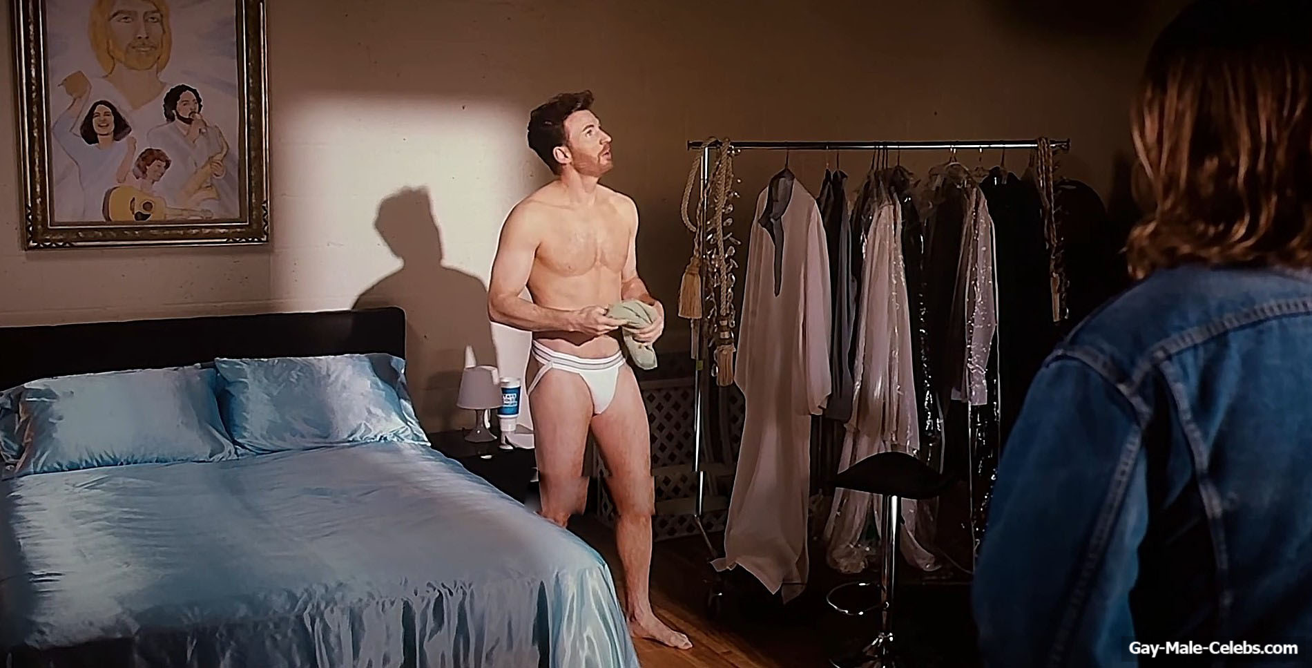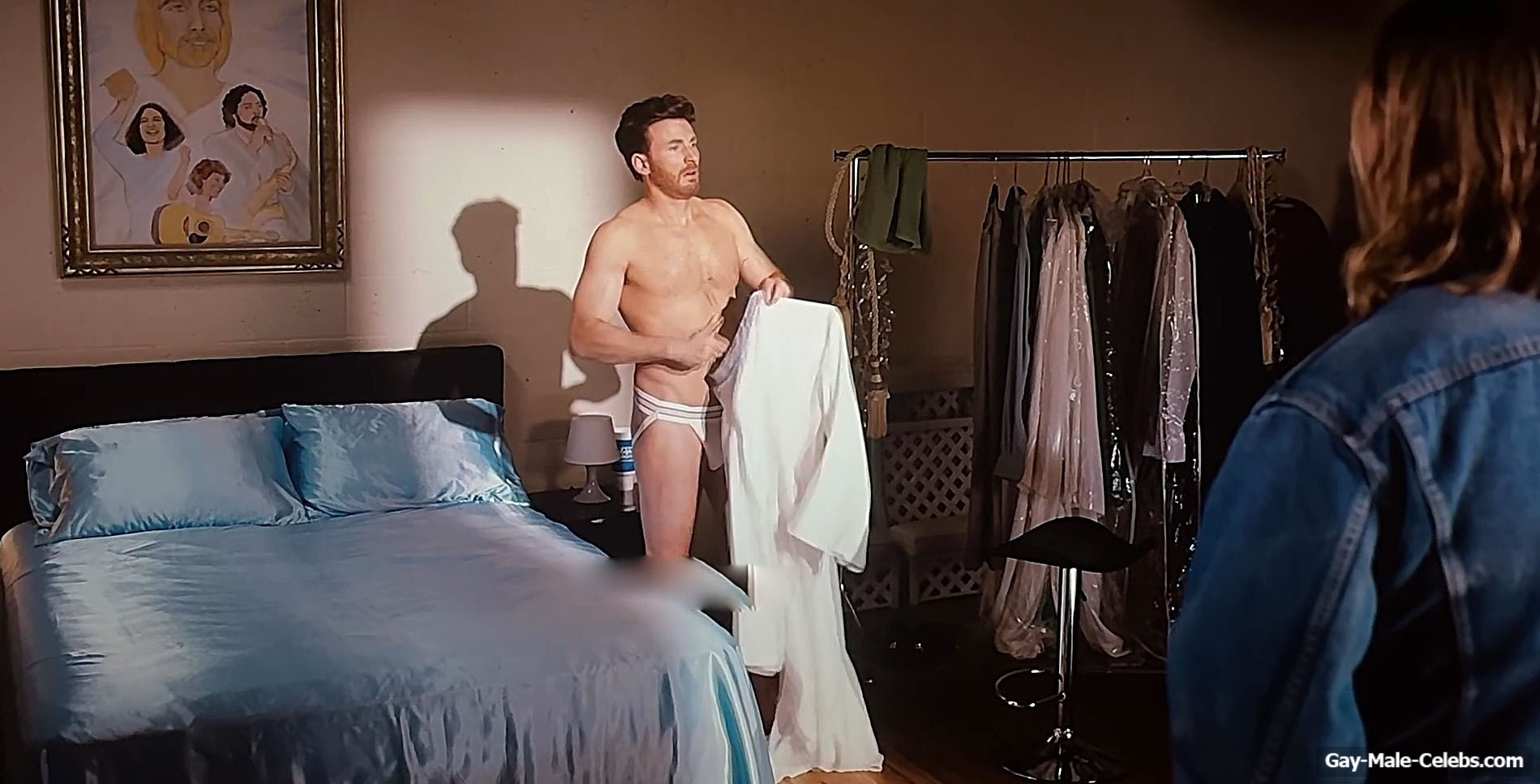 After all these scenes, we probably saw Chris’s dignity in all its glory. But you can’t deny that those white thongs look amazing on him. They can’t even hide that impressive bulge. We can only imagine how massive Chris Evans’s penis is. By the way, his ass is also quite nice, you want just to spank it.