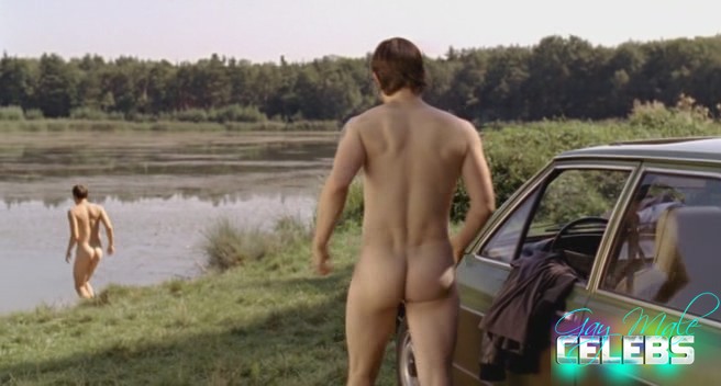 Lovely Clemens Schick is getting naked to go for a swim with his colleague in the “Cindy liebt mich nicht” uncensored penises and hot bodies are everywhere. Clemens shows off his muscular body and we get to see his white ass out in the wild. Who wouldn’t like to hang out with a hot stud like him? Just take a look at his firm jaw and hot hair.
