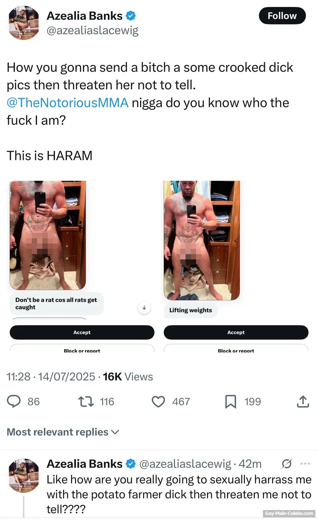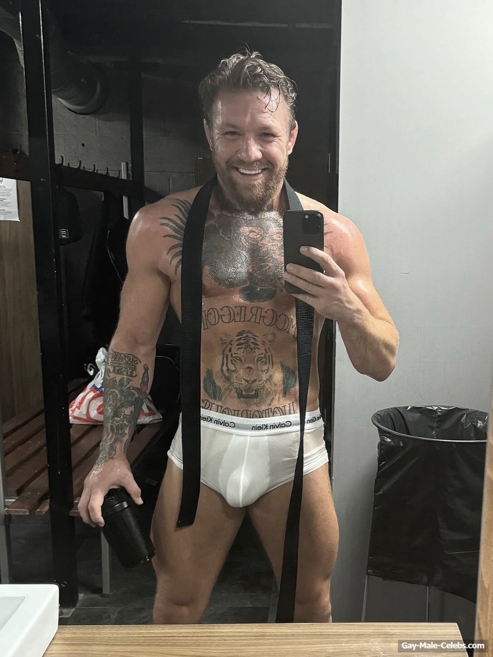 Probably there is no one who does not know the famous Conor McGregor. This fighter undoubtedly has an amazing body. His naked tattooed torso looks stunning. And what can we say about his massive bulge, which even his underwear cannot hide? But the most interesting thing is that recently some very interesting photos of Conor McGregor’s naked dick were leaked. He clearly wasn’t upset about it, as he loves to show off his manhood in every way possible.