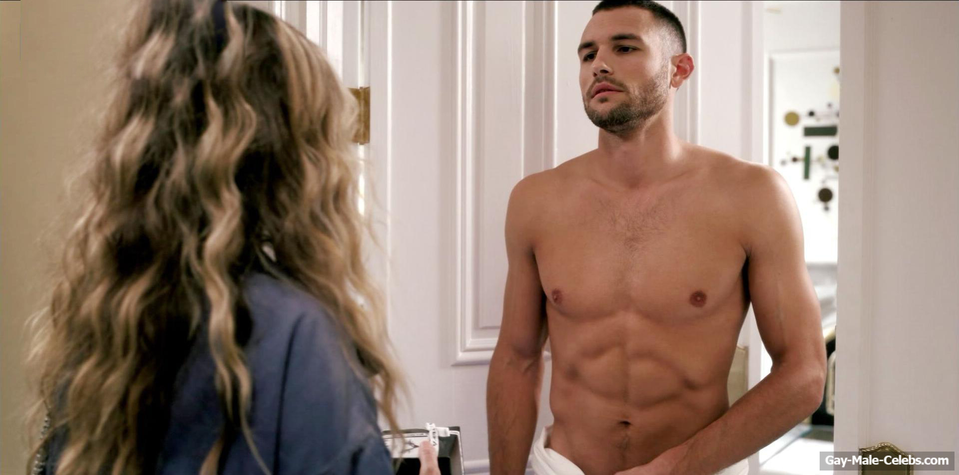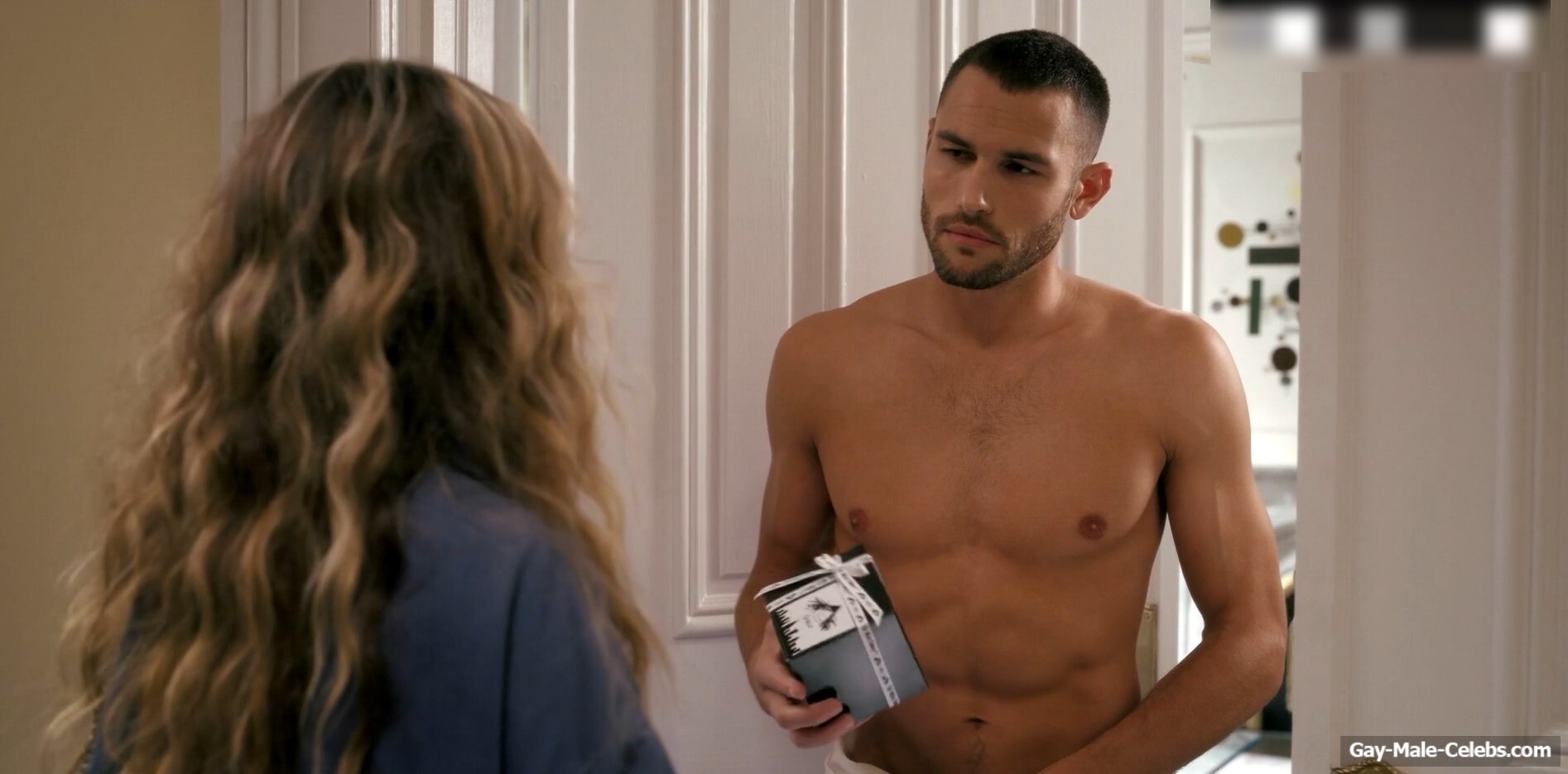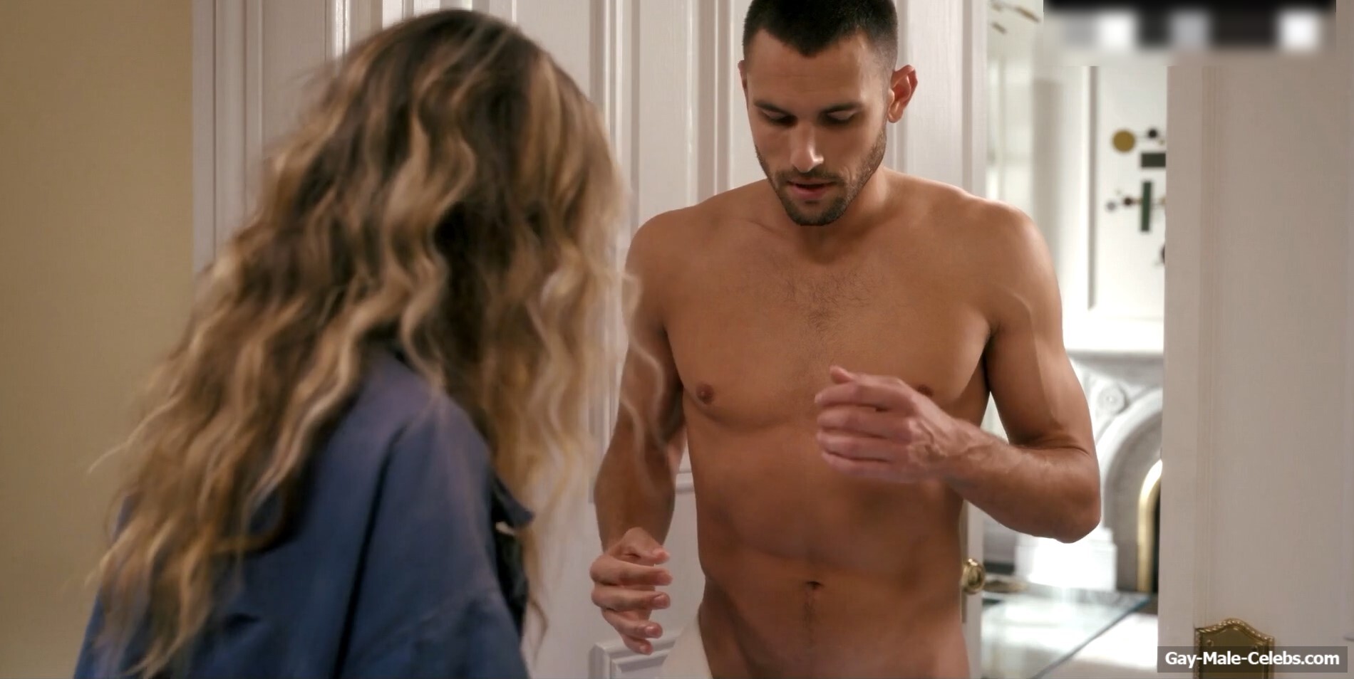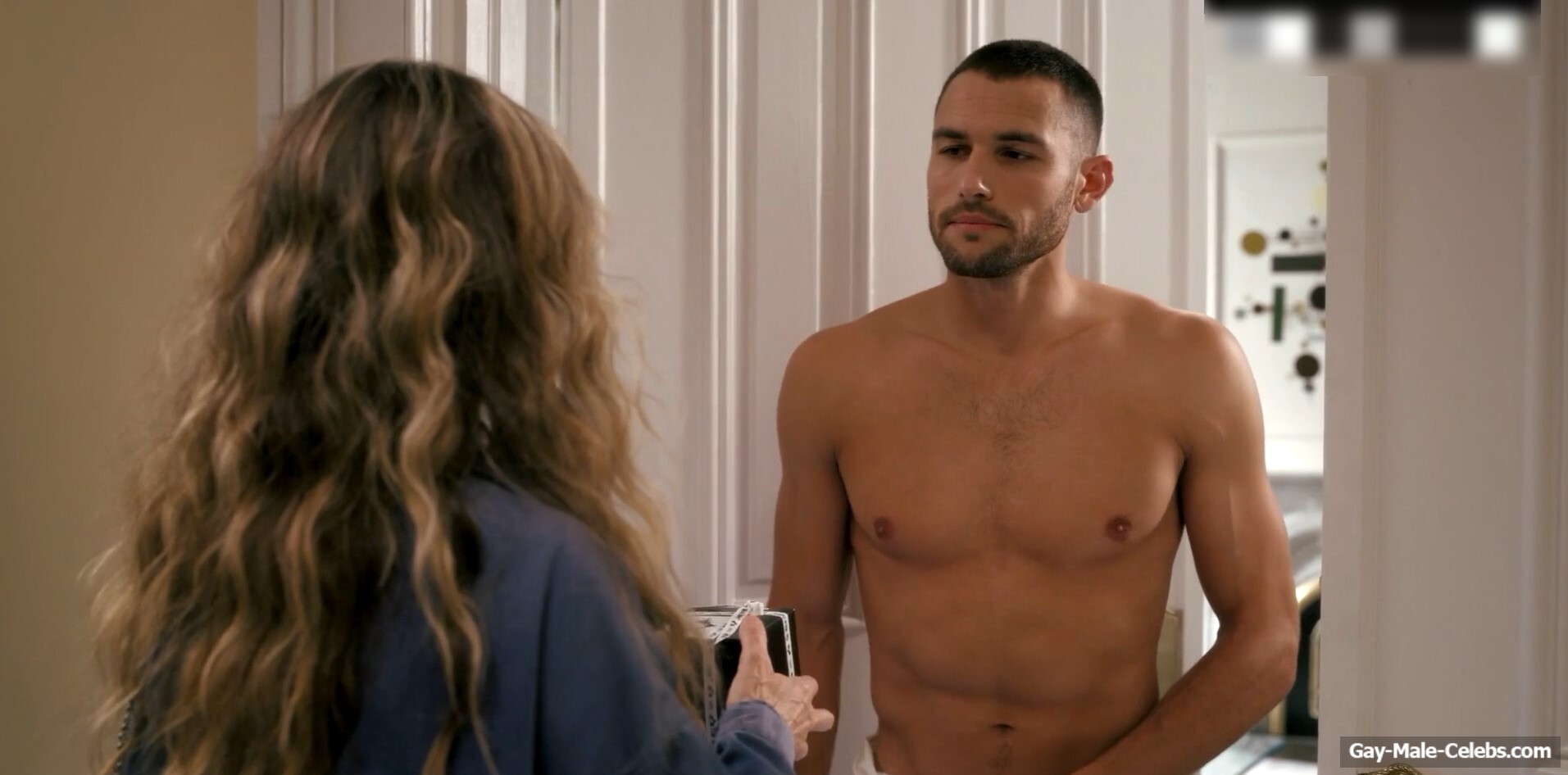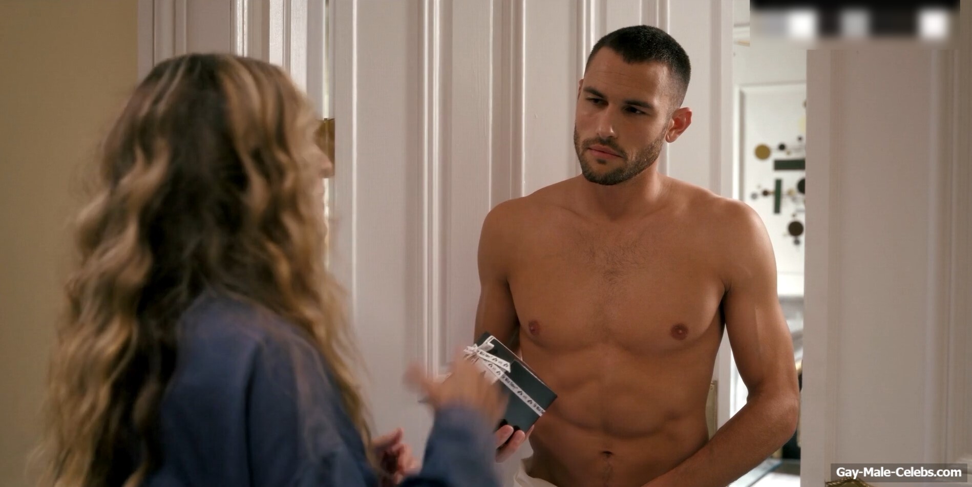 Witness how Corey Saucier demonstrates his real naked dick in “And Just Like That”! Corey was disturbed by his new neighbor, who brought him a brownie as a sign of acquaintance. Corey only had time to cover himself with a towel, but his pumped-up torso was right in front of our eyes. His new neighbor was about to leave, but the box fell as the towel, which was hiding Corey’s junk. The neighbor was embarrassed and left immediately, and it took Corey a few seconds to pick up the towel. Fortunately, we had enough seconds to enjoy the sight of his impressive cock.