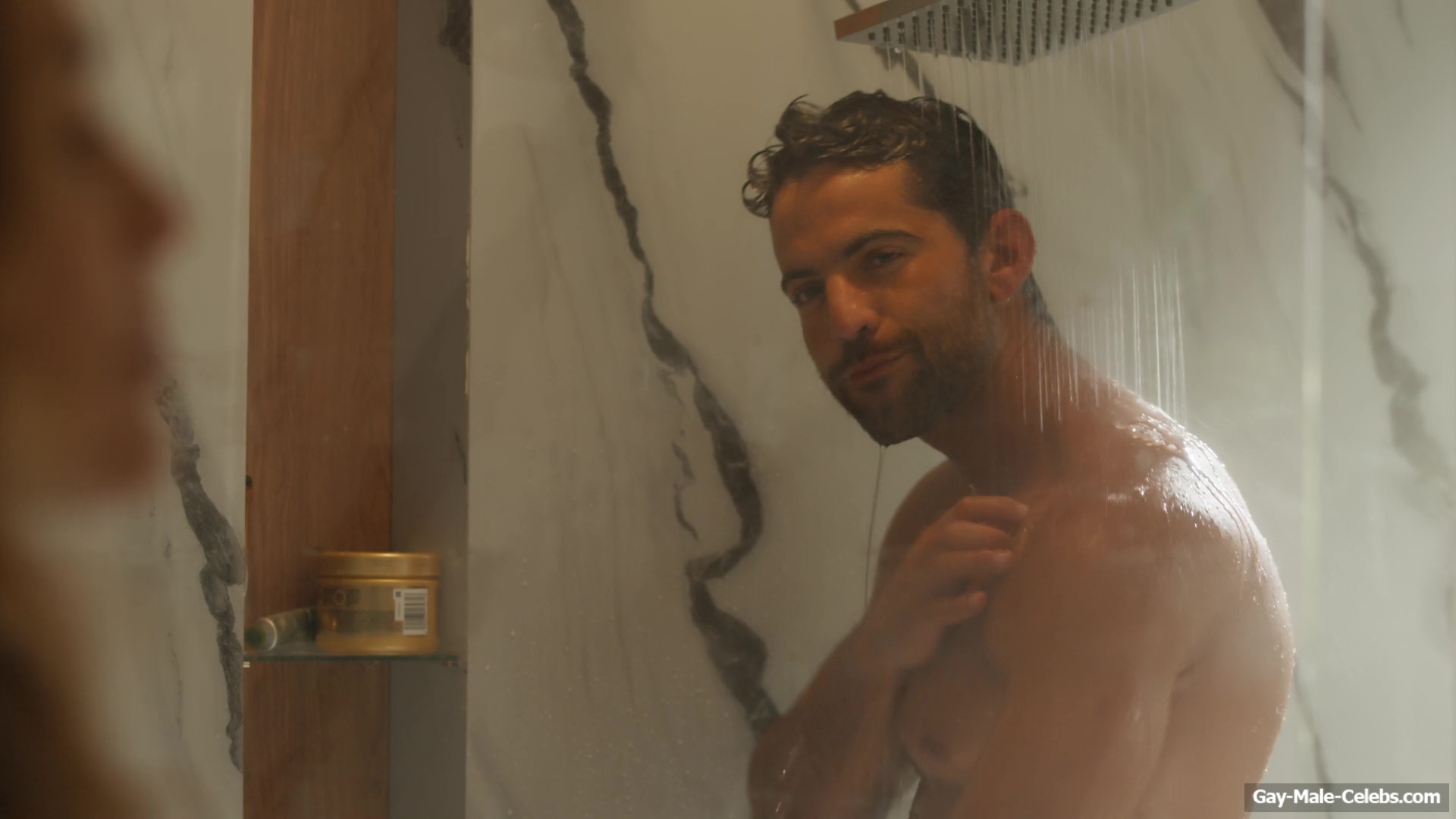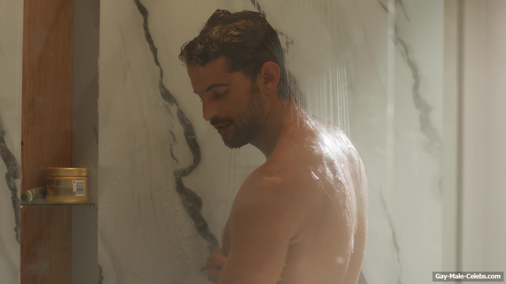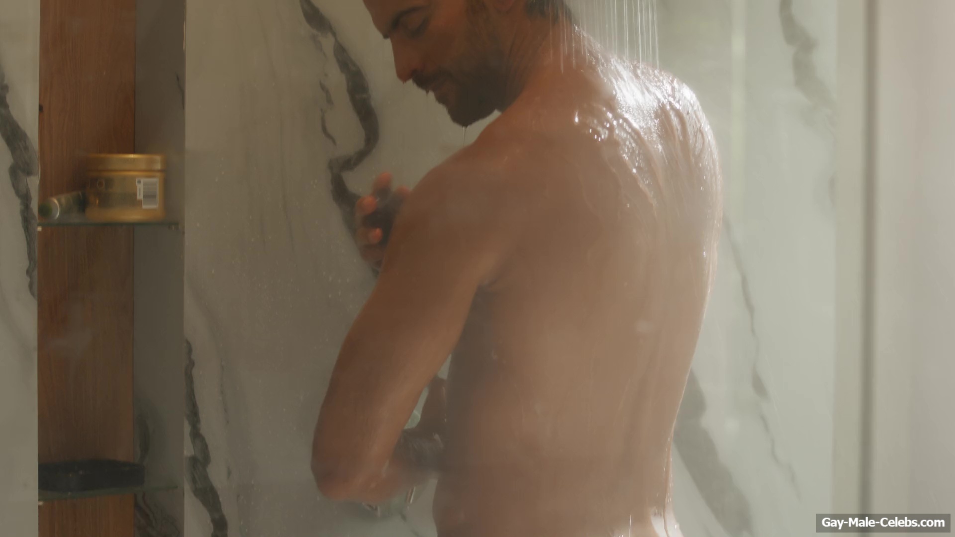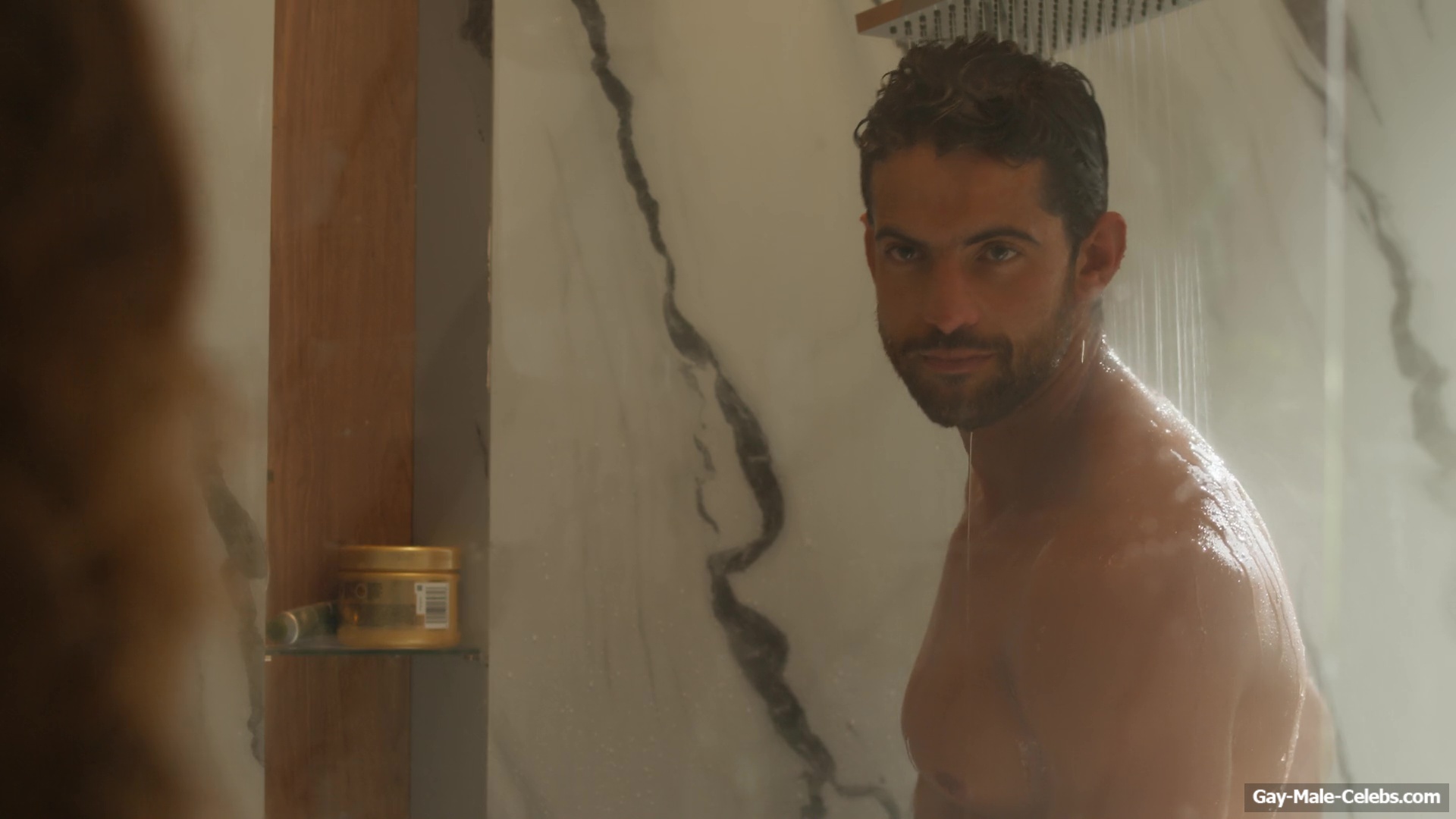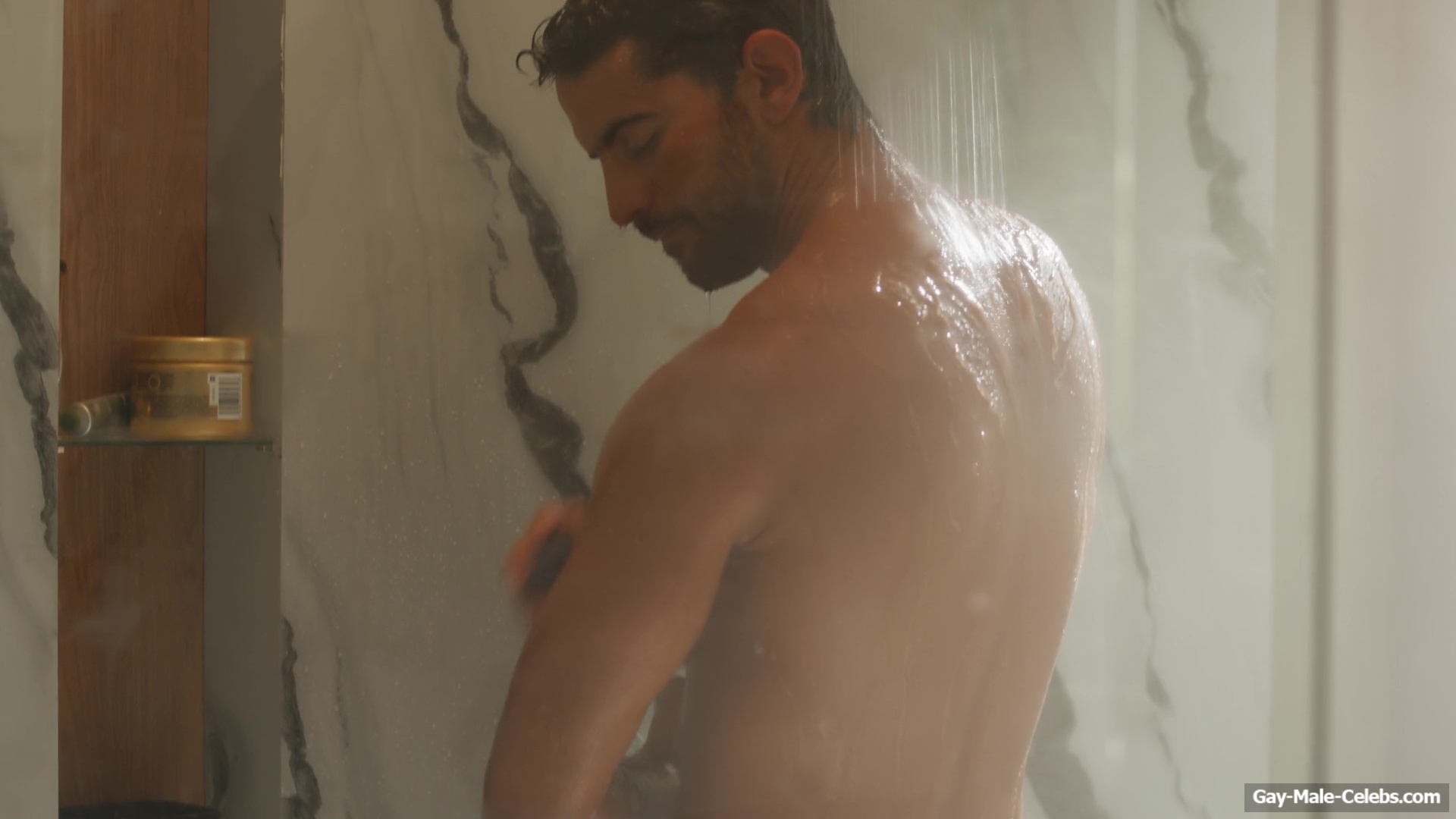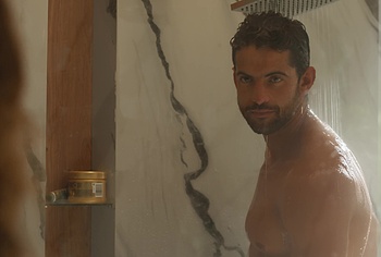 Cristian Gamero shows off his naked ass in “Until You Burn”. Cristian is calmly taking a shower and a woman walks in. The guy obviously wasn’t confused, because his body is so fucking hot. The woman tries hard not to look at Cristian’s figure and show him the shirt, but it’s really hard not to look at the charms of this hunk. It’s a pity that the guy is standing backwards and we can’t look at his dick.