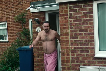Danny Dyer showed us his cute butt in “Mr. Bigstuff”. Danny came out of the shower when some strange guy interrupted him. He got very angry and ran after the guy wearing only a pink towel. Danny was so angry that he couldn’t hold back and threw the towel at the guy. He wasn’t even embarrassed by the fact that he was standing on the street completely naked. And that ass, which is exposed for everyone to see, is just begging to be spanked.