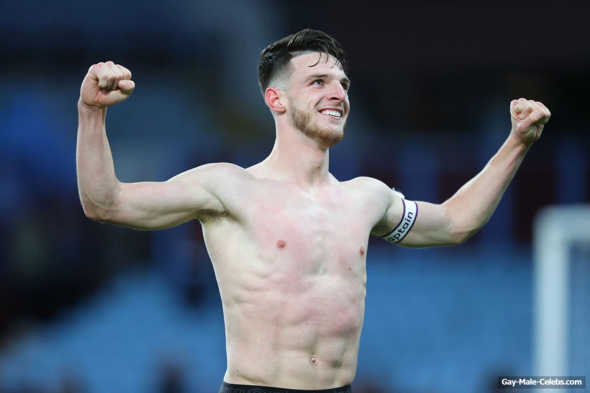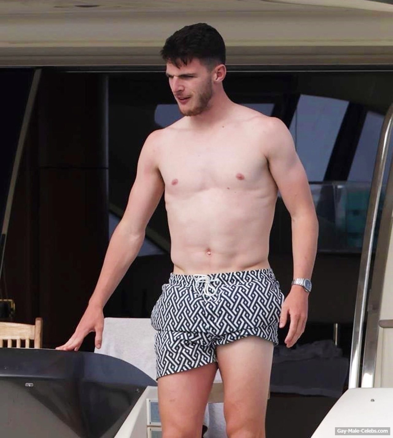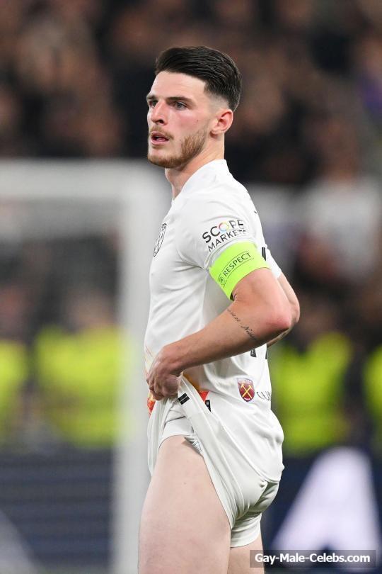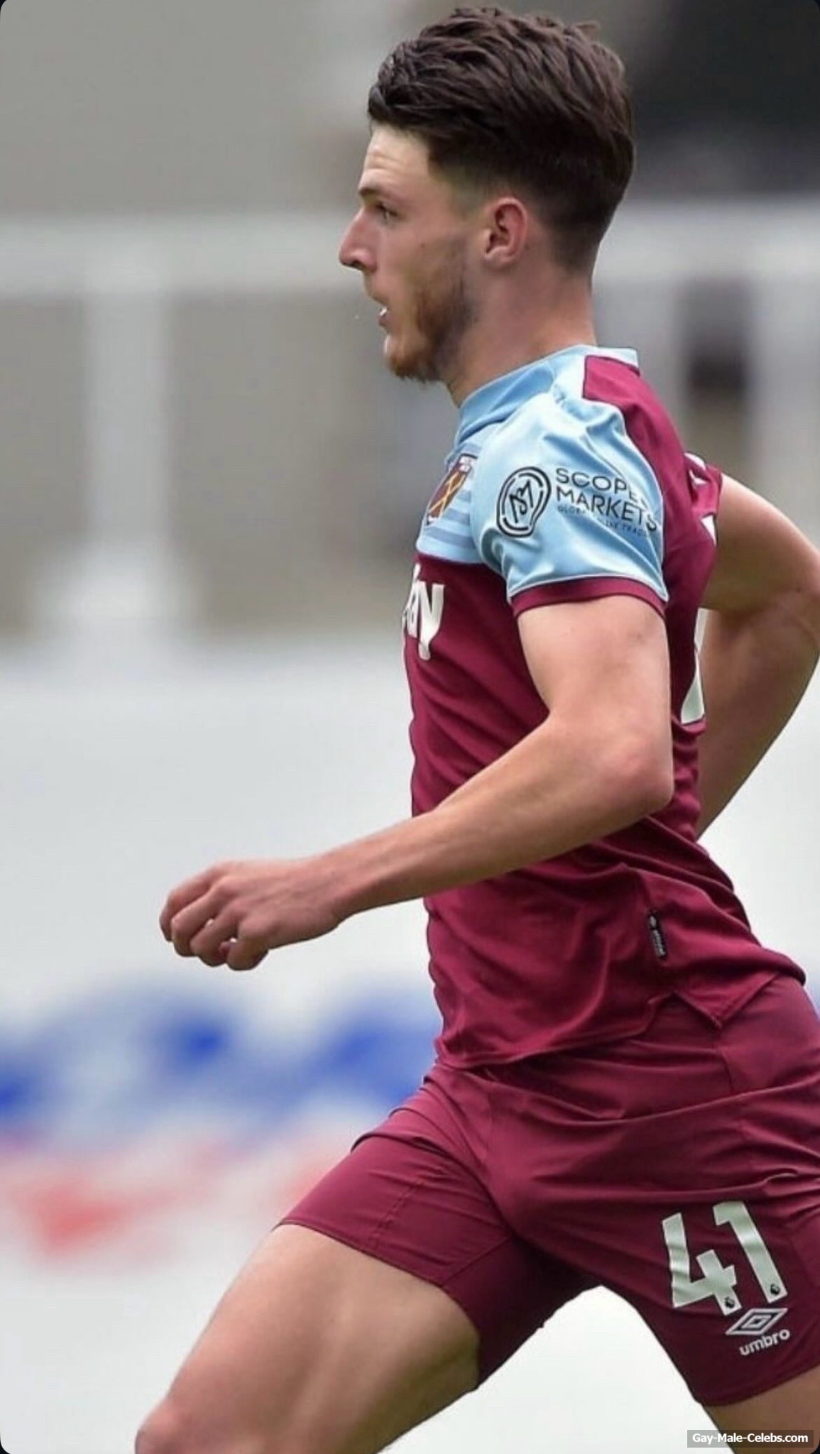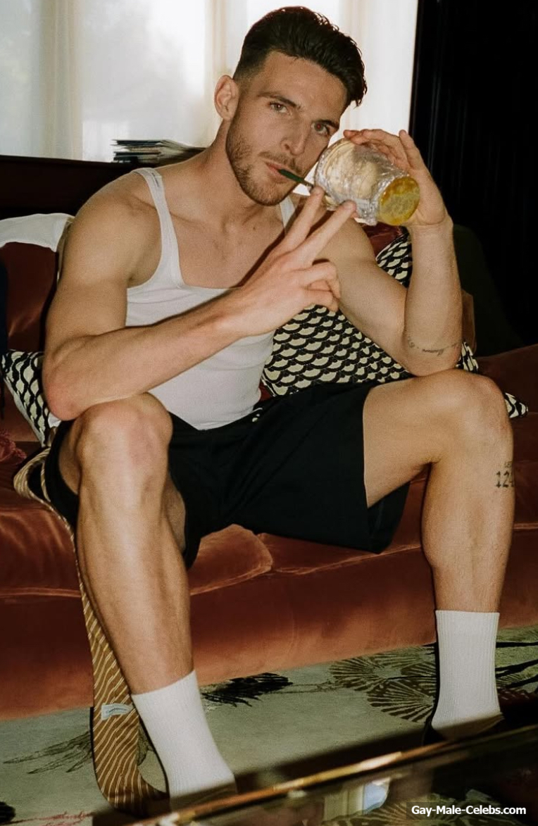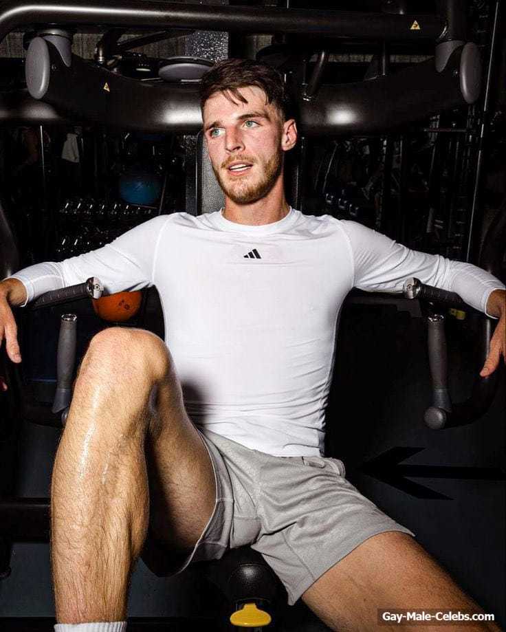 This English soccer player will definitely conquer you with his hot figure! Declan Rice exposed his pumped up torso not only on the soccer field, but also for a photoshoot. And when he pulled up his gym shorts, his massive cock bulge is on full display, so we can enjoy it.