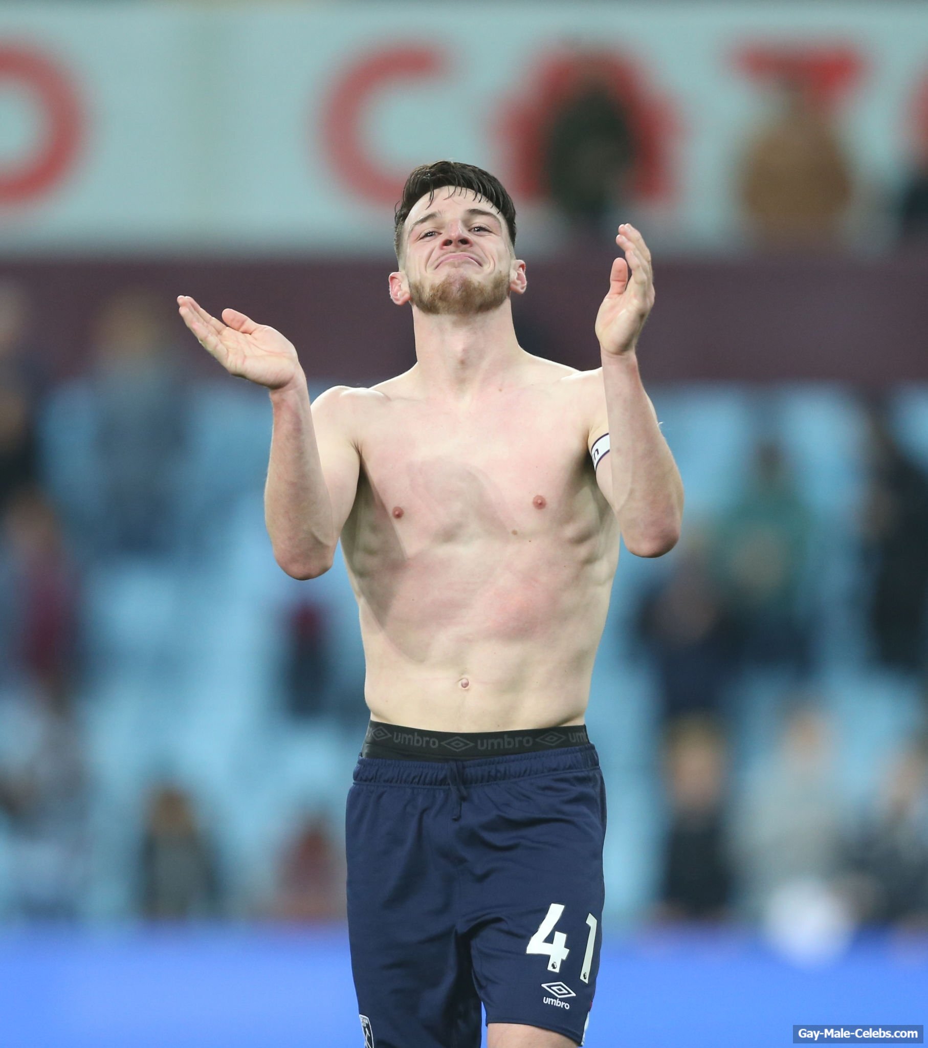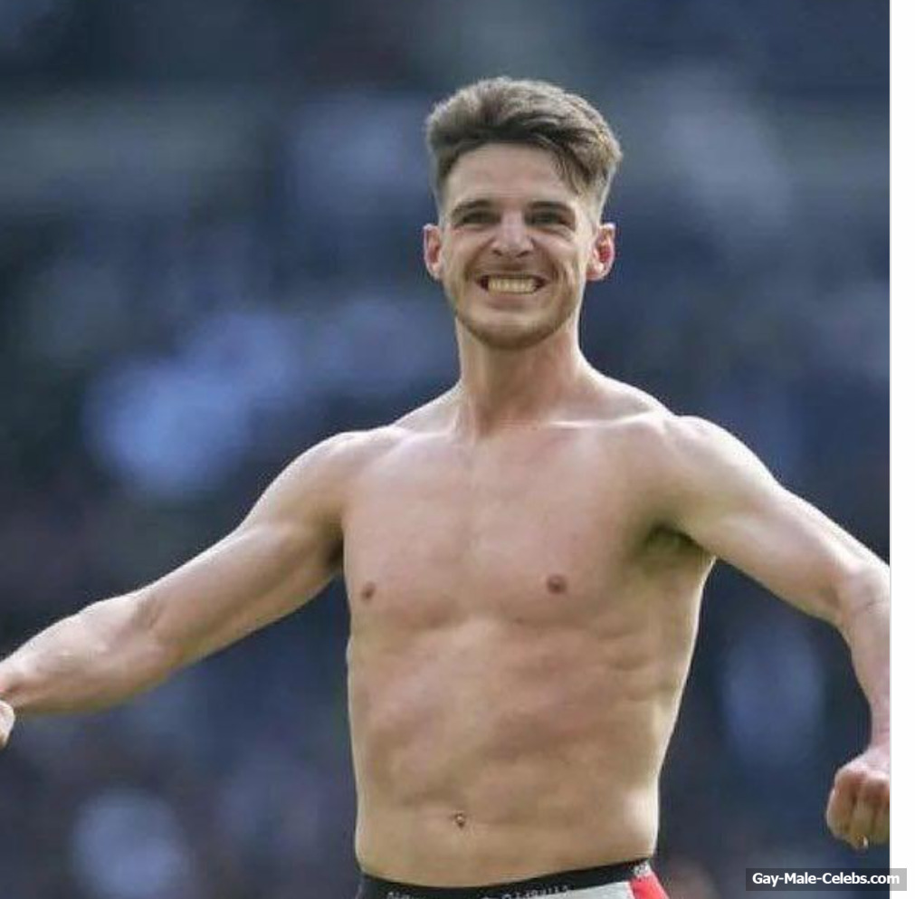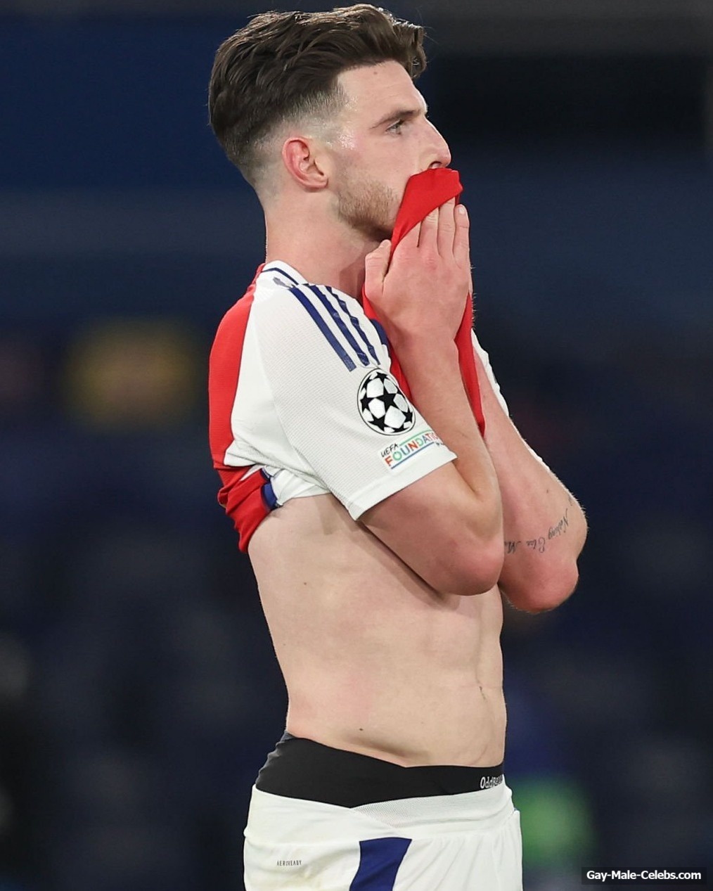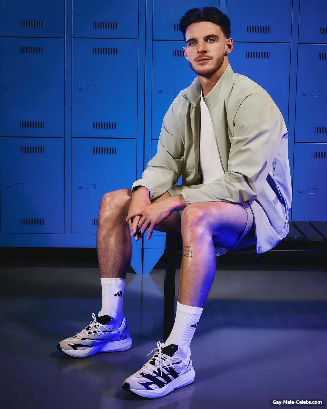 This English soccer player will definitely conquer you with his hot figure! Declan Rice exposed his pumped up torso not only on the soccer field, but also for a photoshoot. And when he pulled up his gym shorts, his massive cock bulge is on full display, so we can enjoy it.