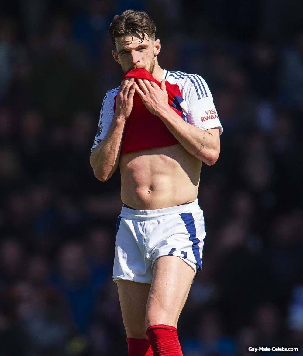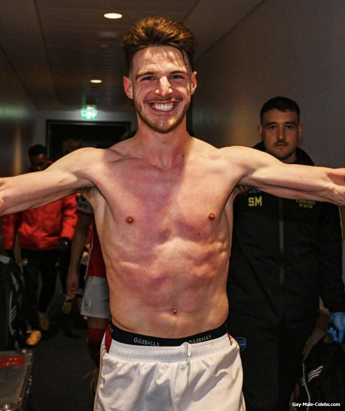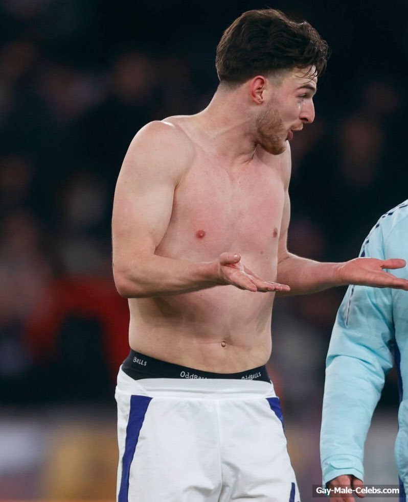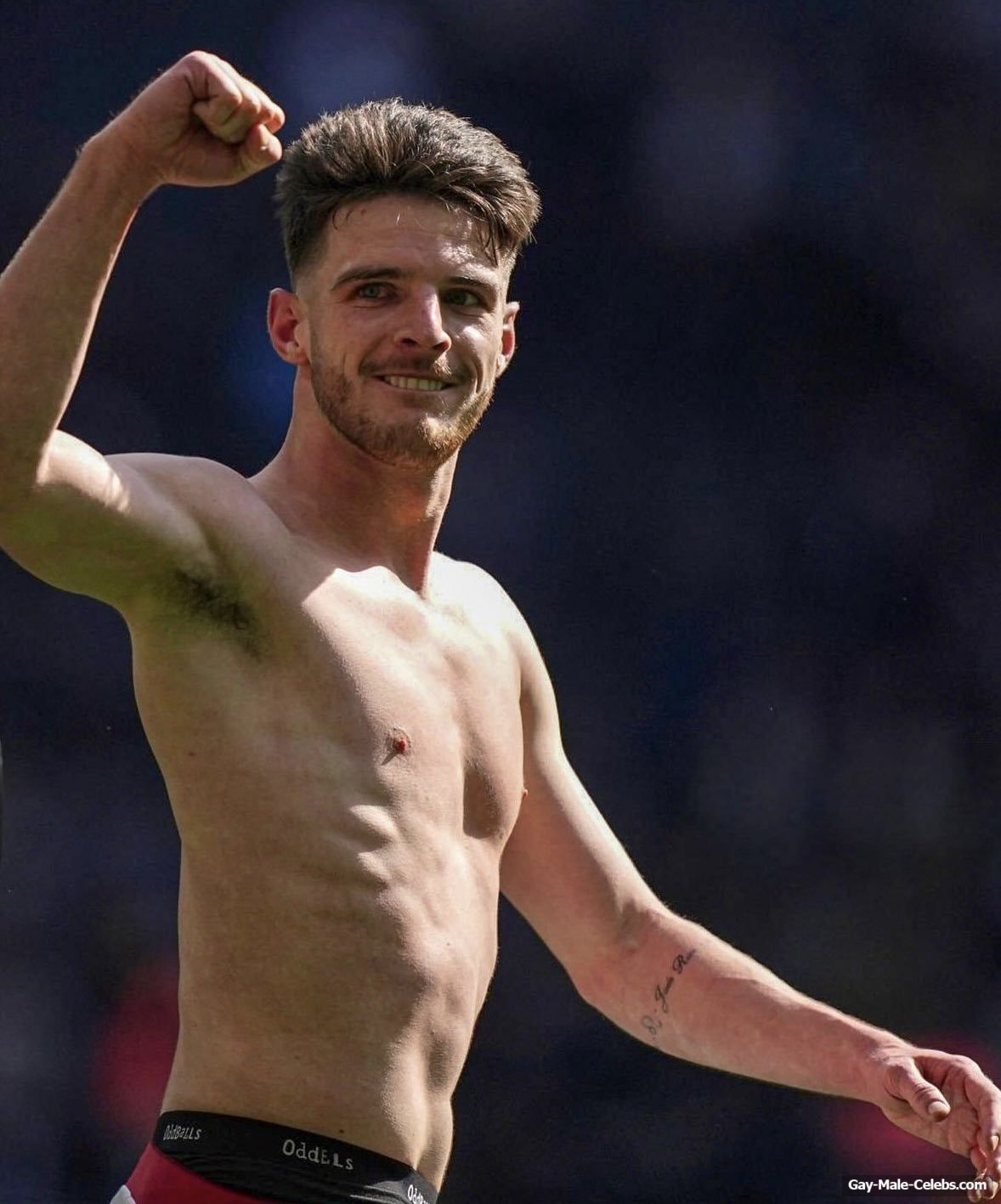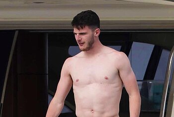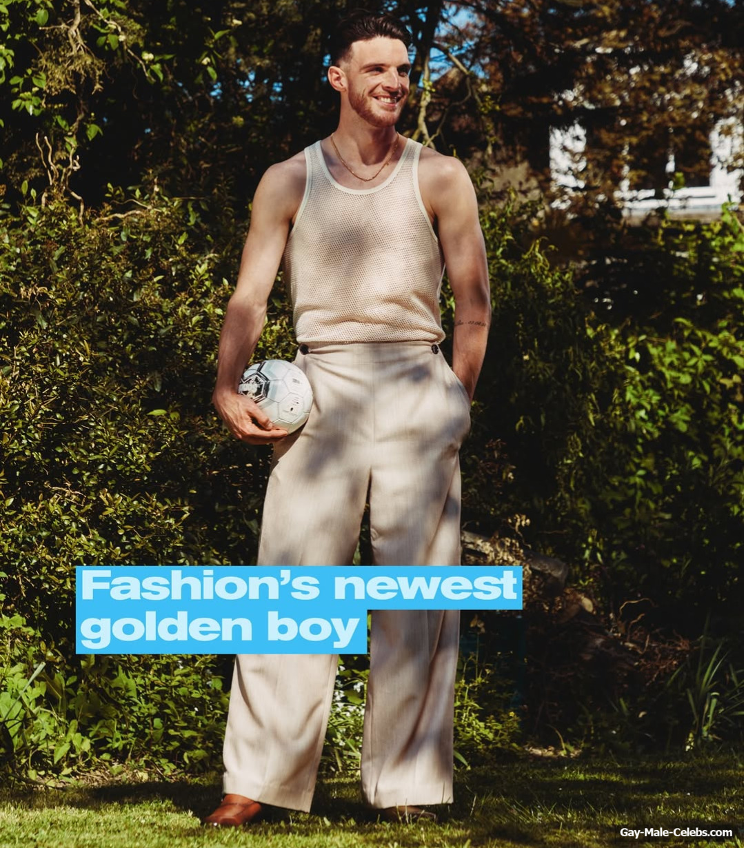 This English soccer player will definitely conquer you with his hot figure! Declan Rice exposed his pumped up torso not only on the soccer field, but also for a photoshoot. And when he pulled up his gym shorts, his massive cock bulge is on full display, so we can enjoy it.