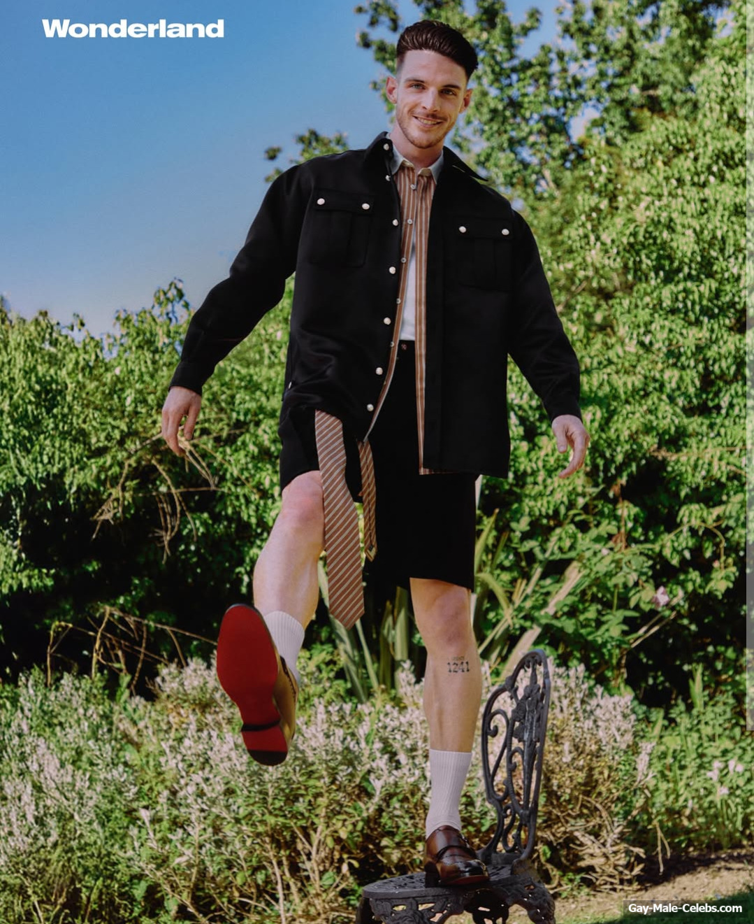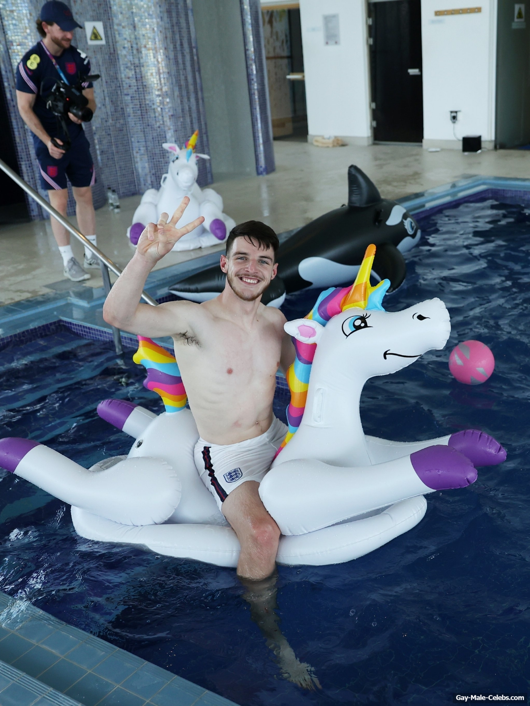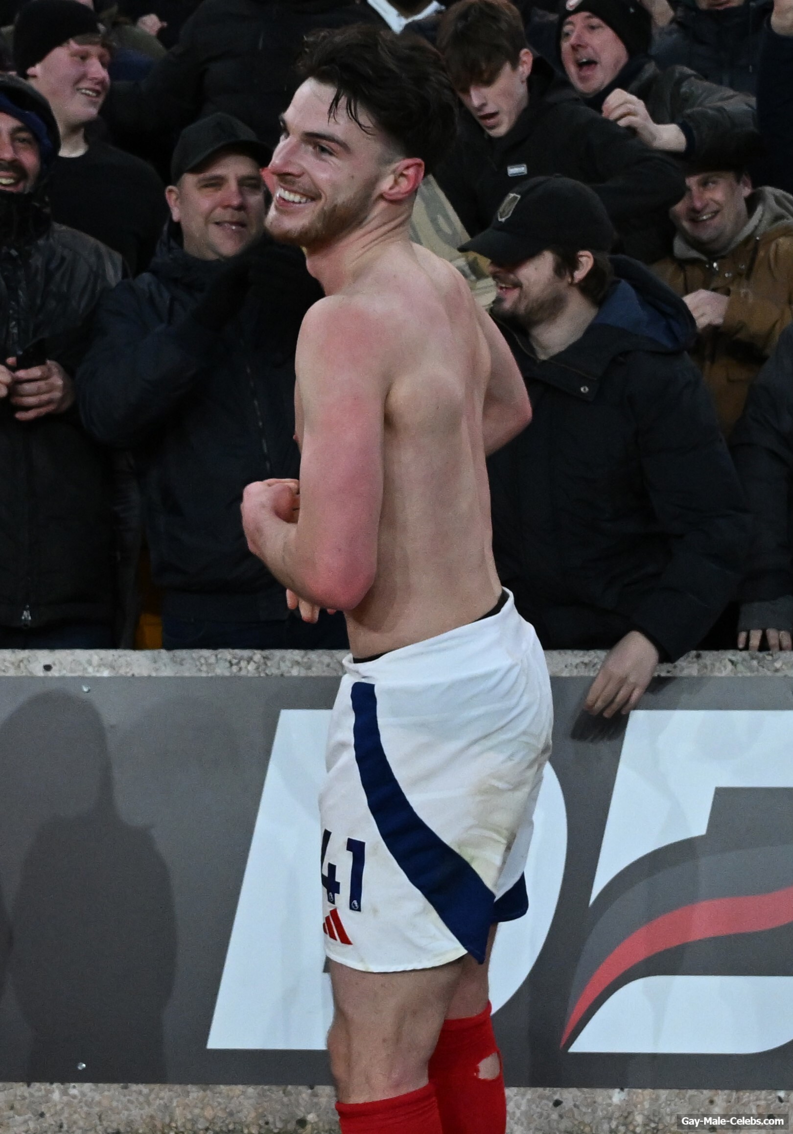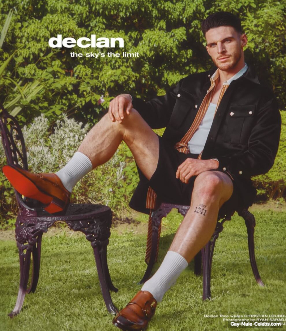 This English soccer player will definitely conquer you with his hot figure! Declan Rice exposed his pumped up torso not only on the soccer field, but also for a photoshoot. And when he pulled up his gym shorts, his massive cock bulge is on full display, so we can enjoy it.