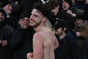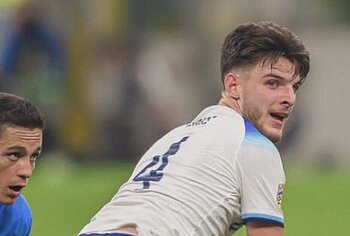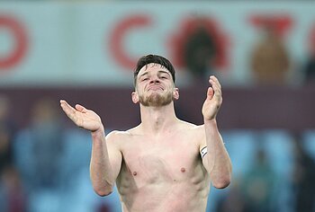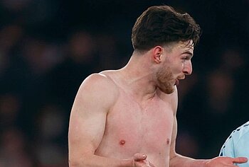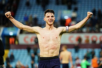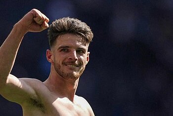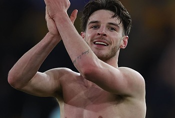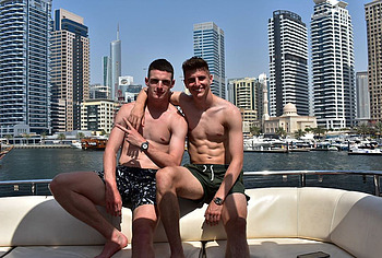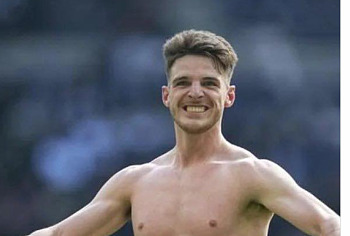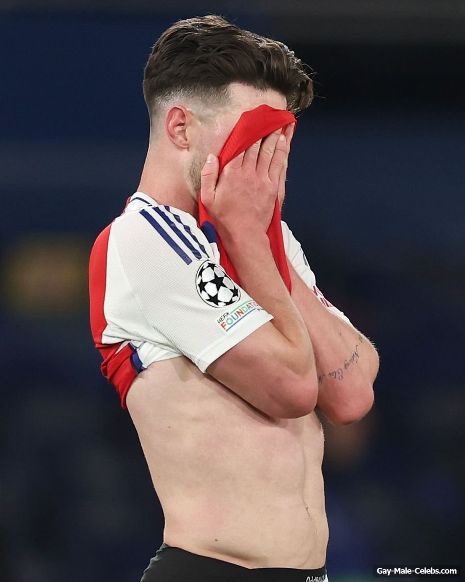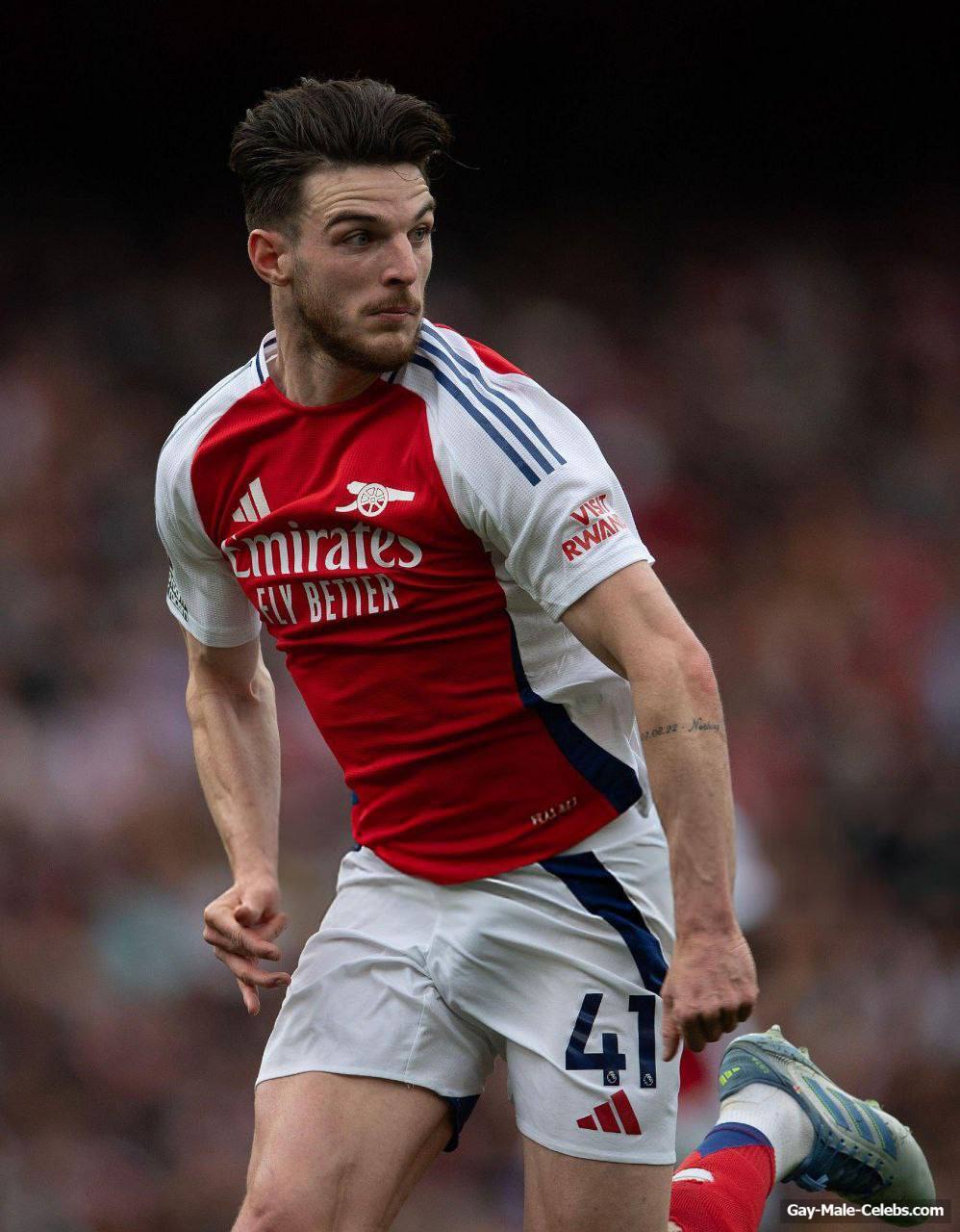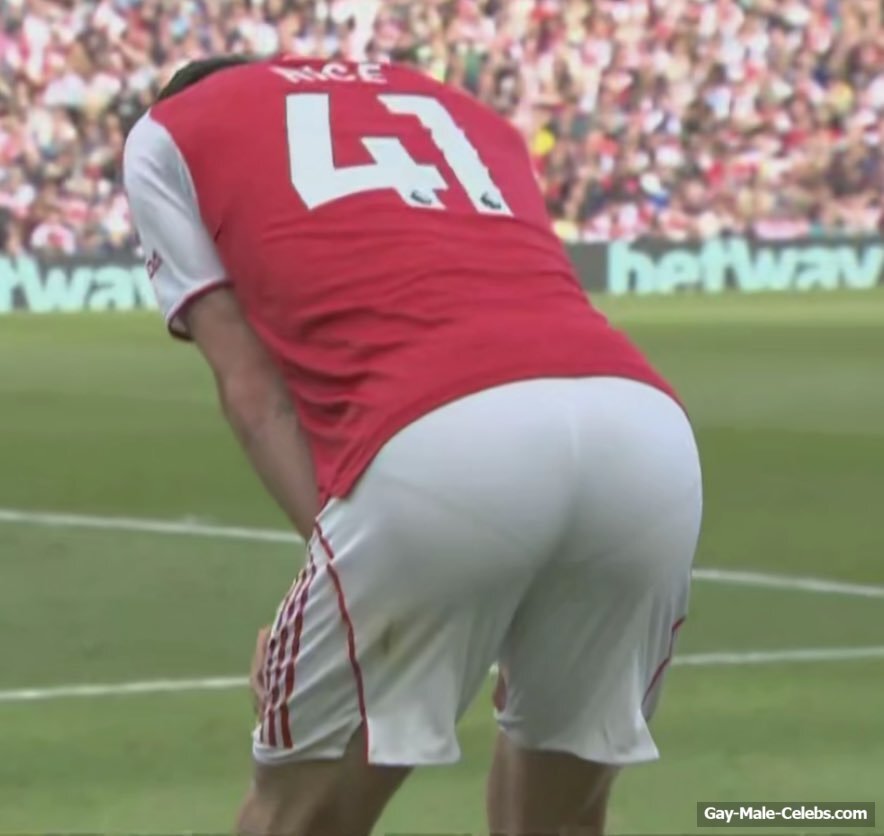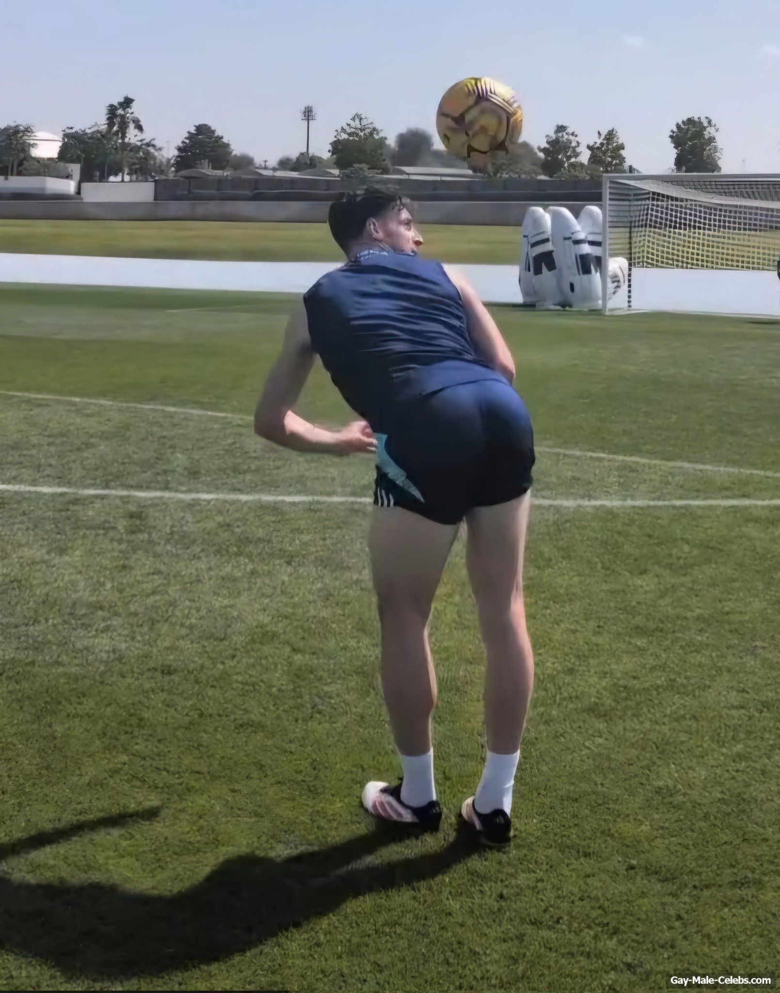 This English soccer player will definitely conquer you with his hot figure! Declan Rice exposed his pumped up torso not only on the soccer field, but also for a photoshoot. And when he pulled up his gym shorts, his massive cock bulge is on full display, so we can enjoy it.
