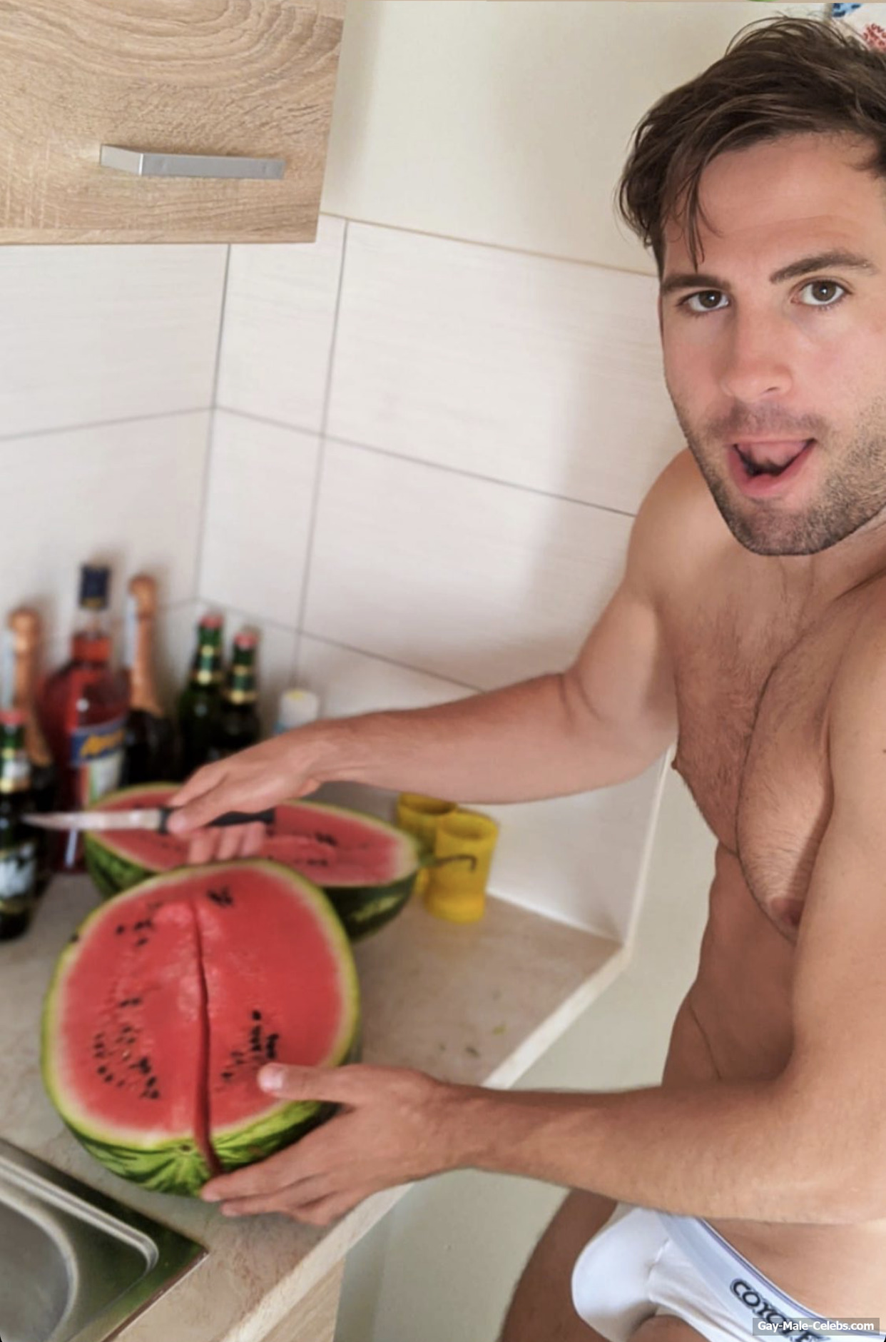 Dino Fetscher sets the room on fire with these NSFW photos. Dino clearly loves being in front of the camera, and we’re only happy about that. This hunk has a divine body. He definitely spends a lot of time at the gym to have such a figure. But what interests us most is Dino Fetscher’s impressive bulge. Even through his white underwear, we can imagine what a massive cock Dino Fetscher has.