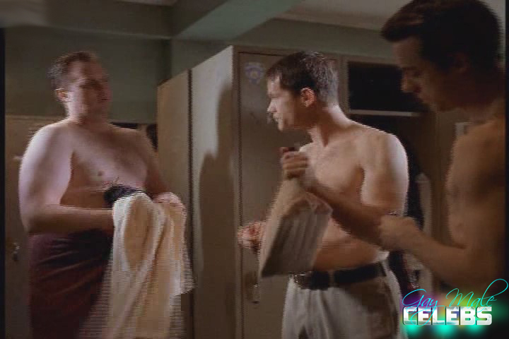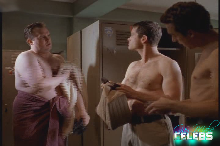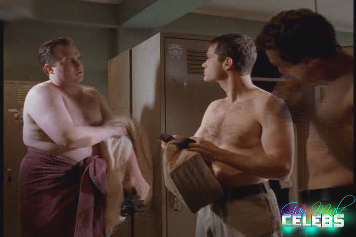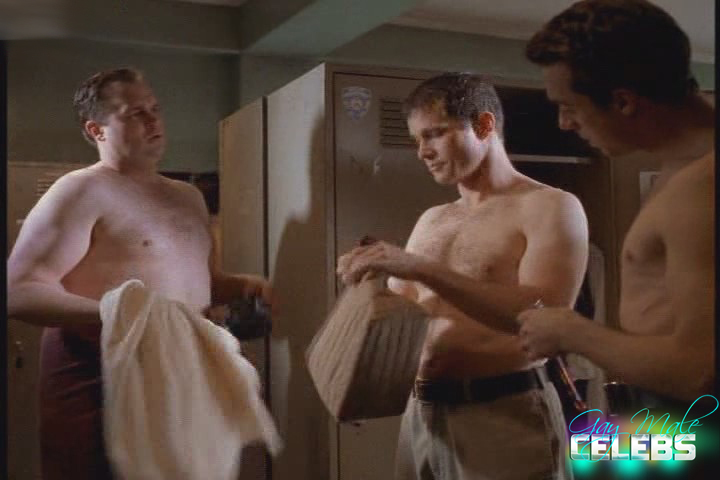 In the American drama and crime TV Show called “Brooklyn South” Dylan Walsh is playing an Officer Jimmy Doyle. In a short scene in one of the episodes, he is in the locker room with other cops and all of them are half naked. If you have a fetish for uniformed hot men, this video and pictures are for you. You can enjoy these hot half-naked hot studs.