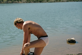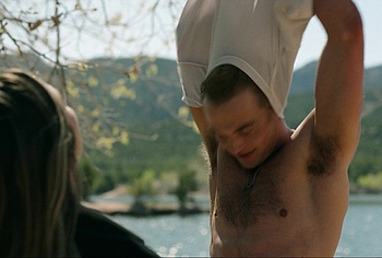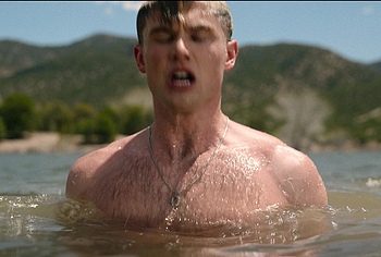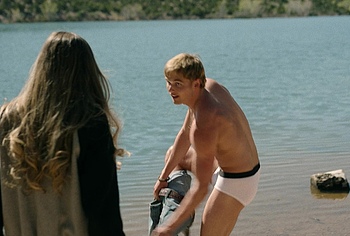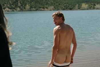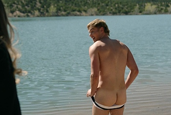 Garrett Wareing flashed his bare ass in “Ransom Canyon”. He and his girlfriend went to the beach and Garrett is obviously not used to bathing with clothes on. While he undresses, his impressive bulge is on full display, as well as his hairy chest. Garrett decided to take off his underwear too and he did the right thing. Then they went home and in bed talked about different things. Hopefully they will have an interesting sequel.