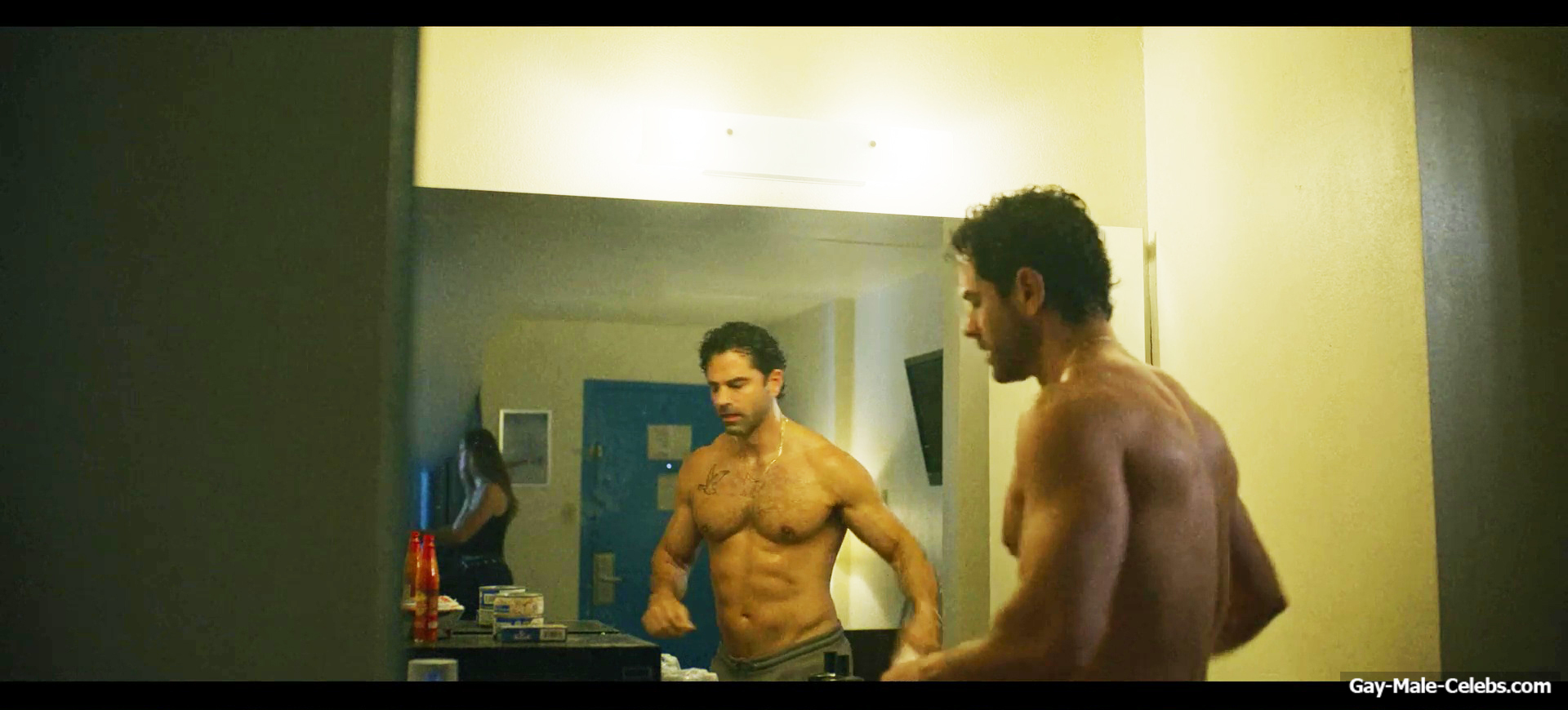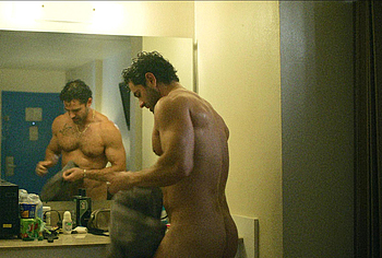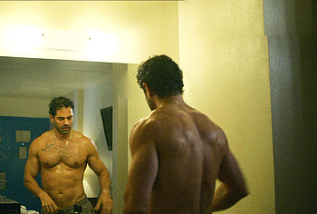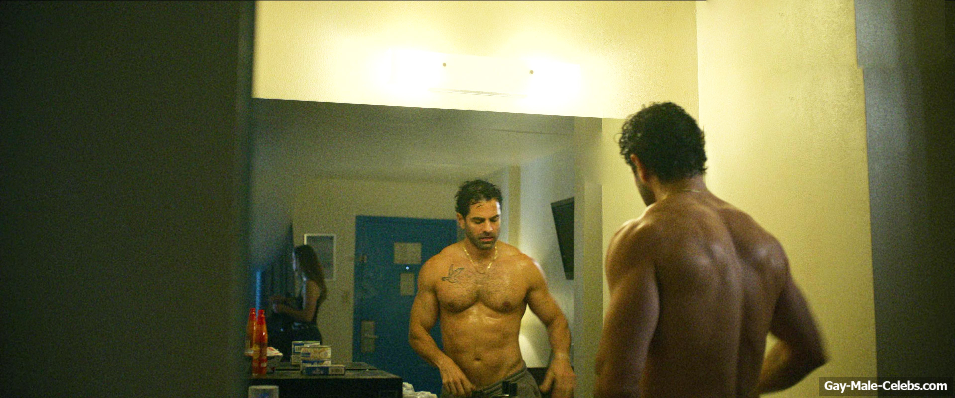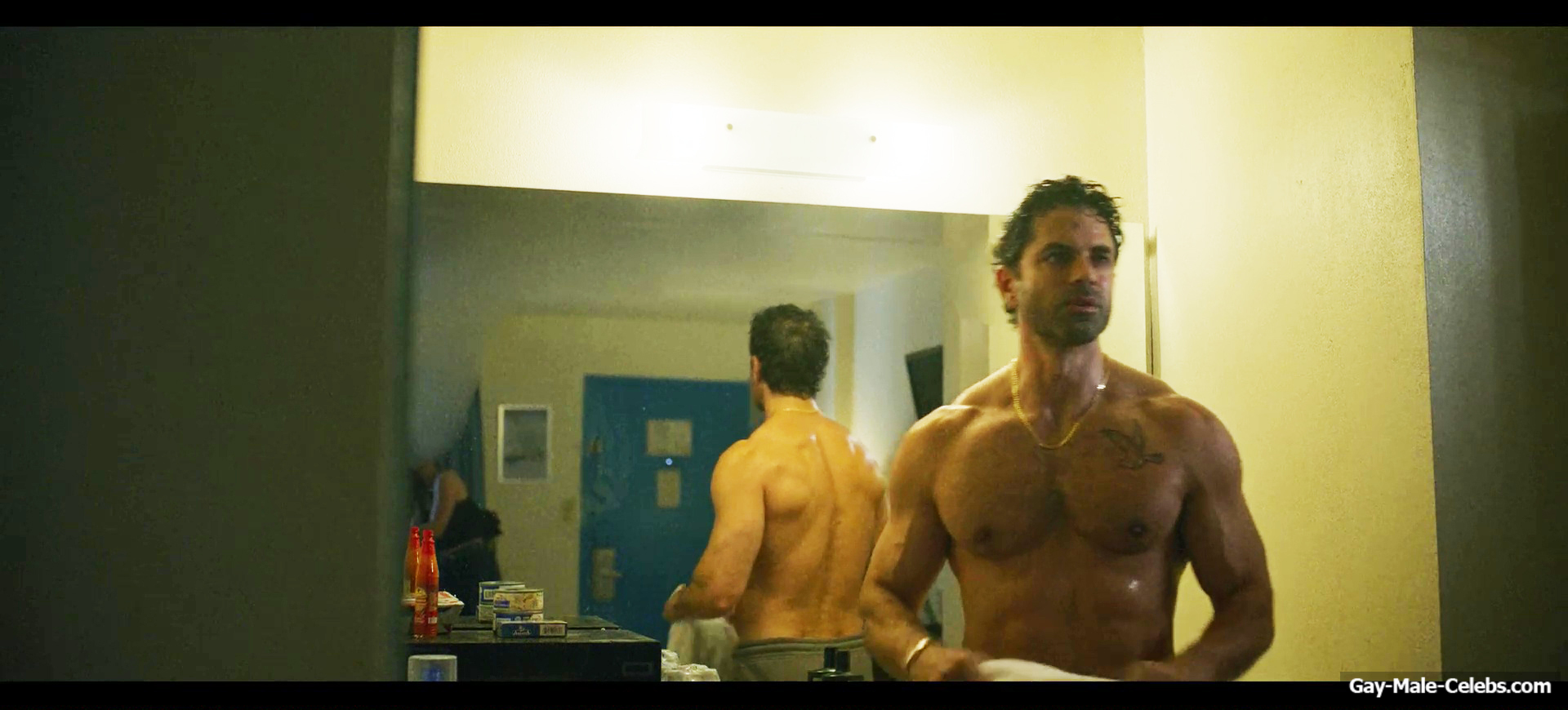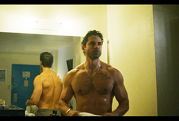 Naked Gerardo Celasco gives us the opportunity to enjoy his sexy body in “The Waterfront”. Gerardo just got out of the shower as a woman comes to him and brings him coffee. He obviously didn’t expect it, so he went straight to put on his pants. But it turns out that this woman didn’t come for nothing, she came for sex. Gerardo showed us clearly how to bring a woman pleasure. He didn’t even make it to the bed and fucked the woman right on the dresser. The most beautiful thing in this scene is Gerardo’s bare ass, which is in front of our eyes the whole time. After a good fuck, they just lay and talked in bed.