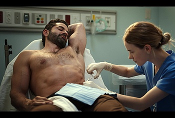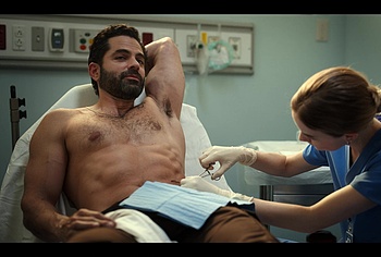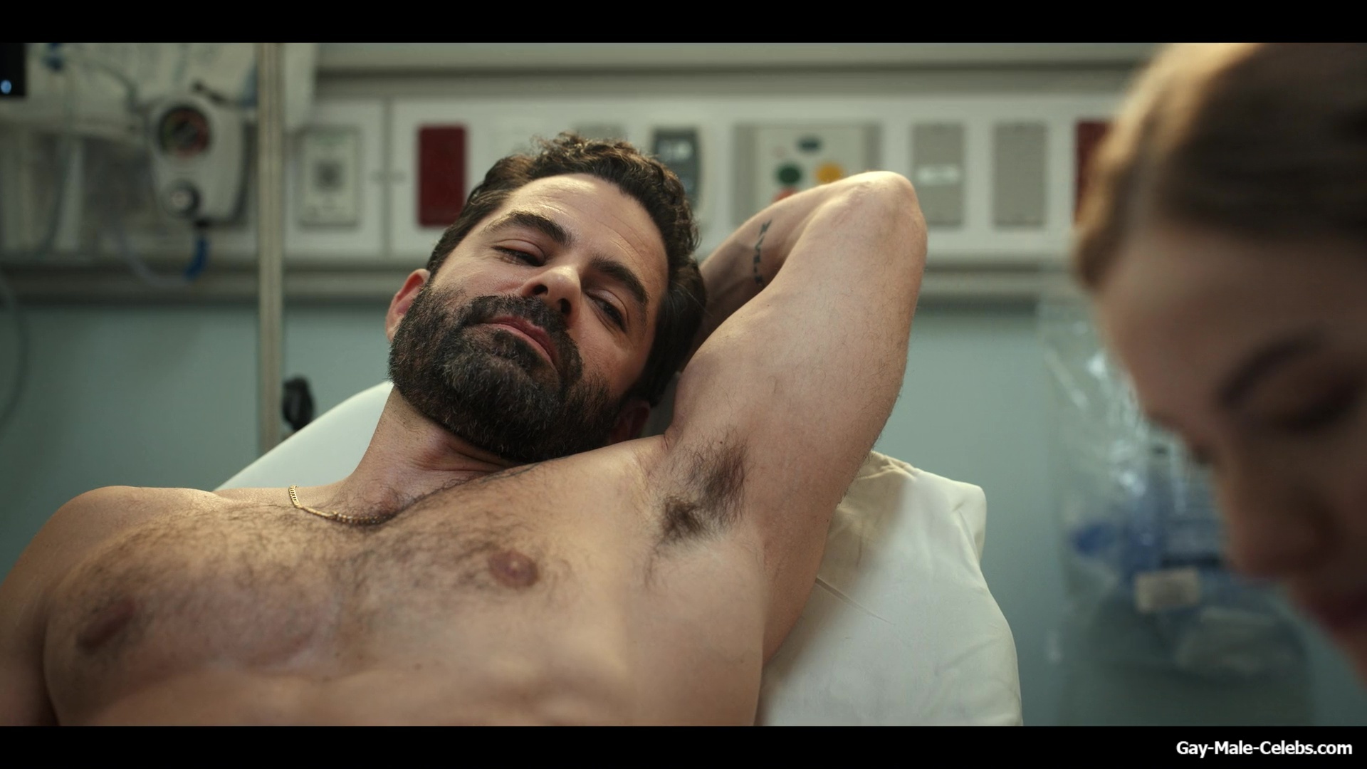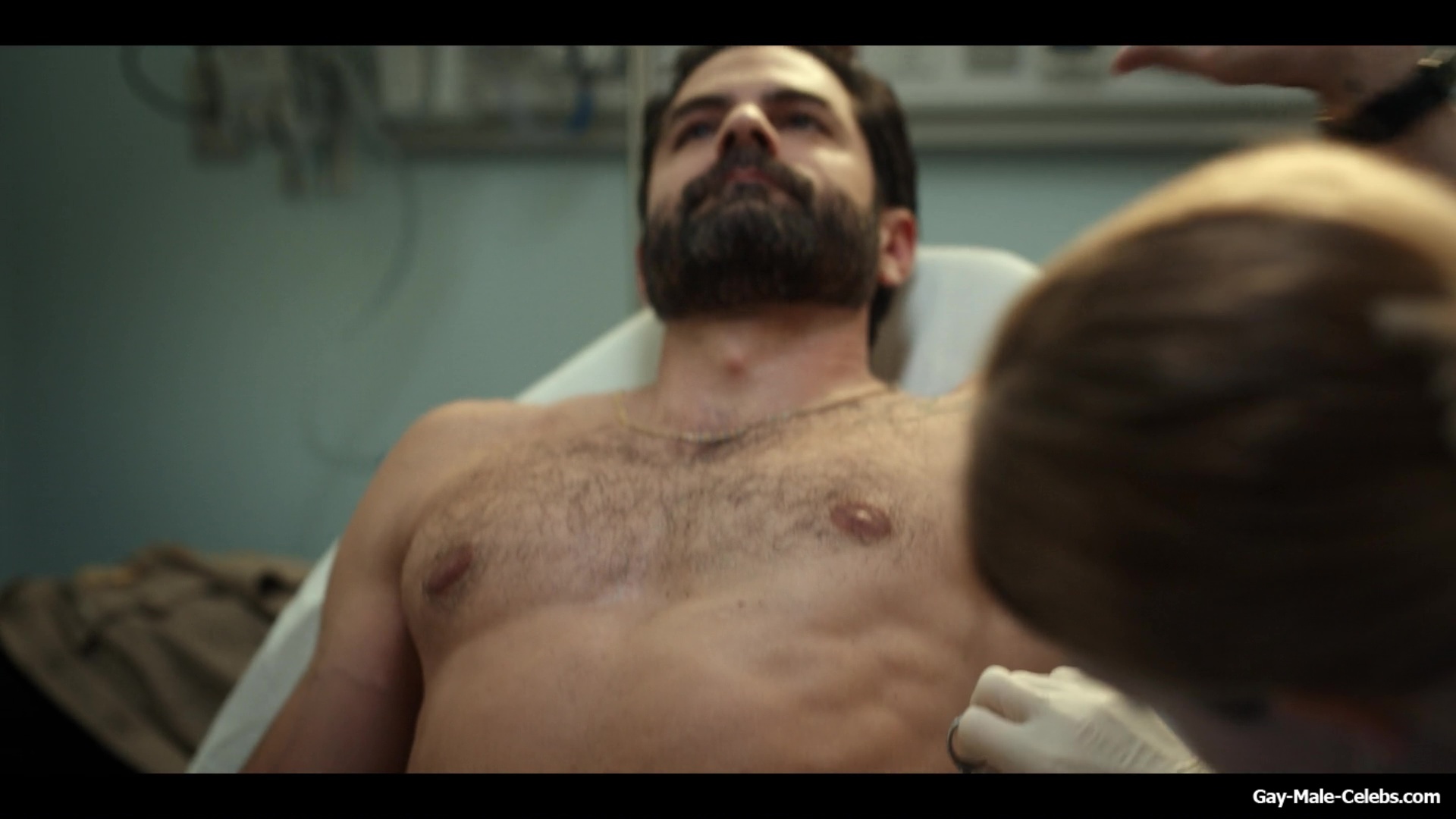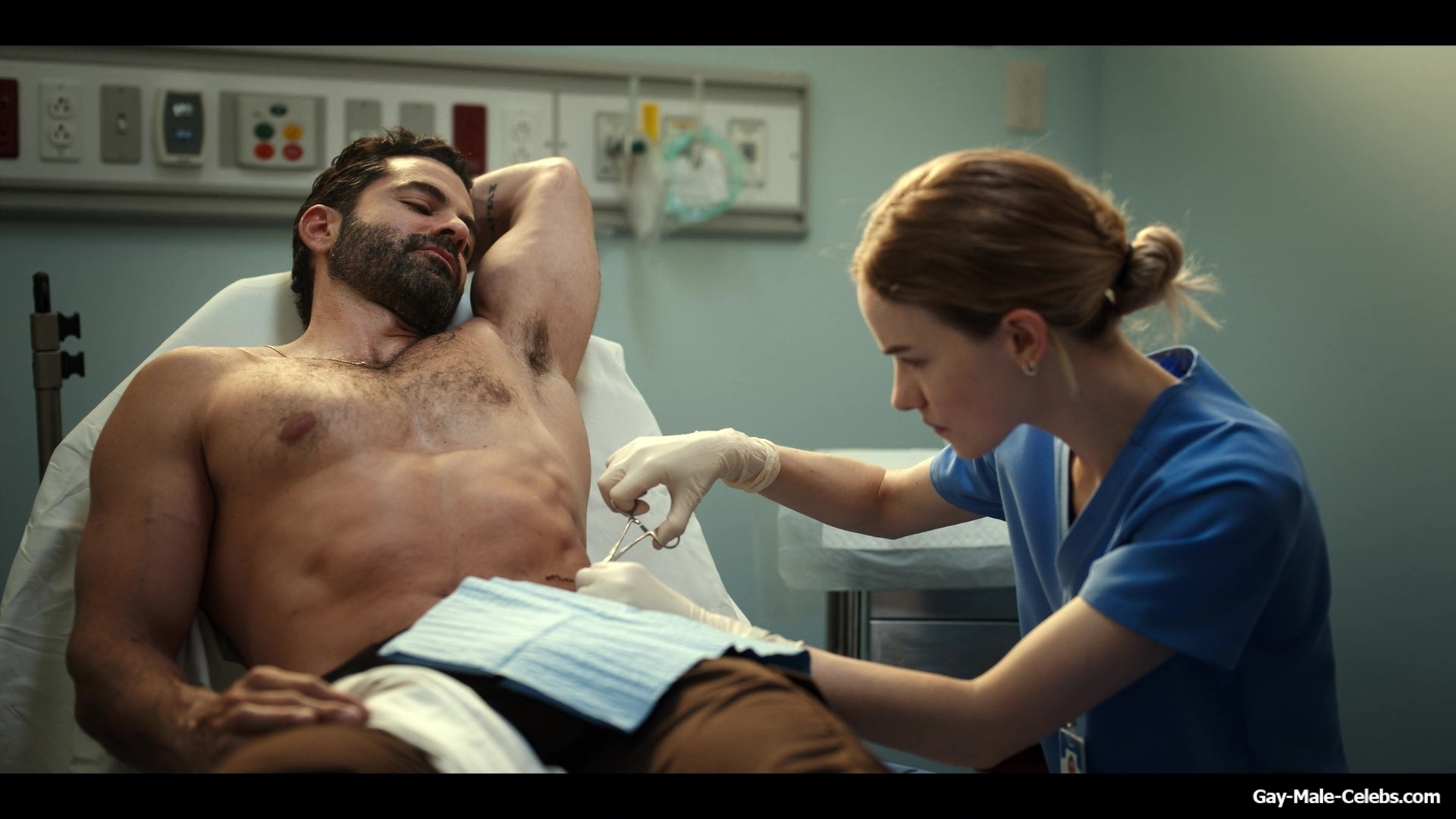 Gerardo Celasco has already shown us a lot, but you can still watch this hunk nude forever. This time Gerardo turns up the heat in “Pulse”. While a woman treats his wounds, we can admire his nude celeb torso. Gerardo obviously spends a lot of time in the gym, because his body is very juicy.