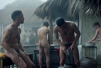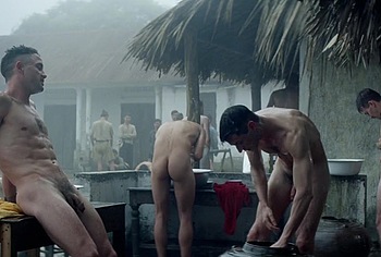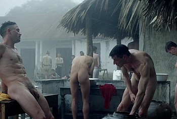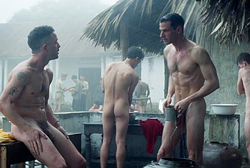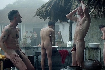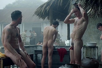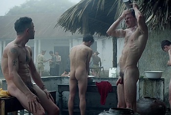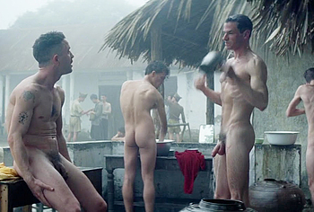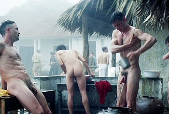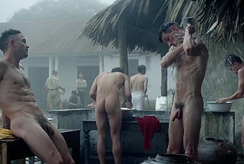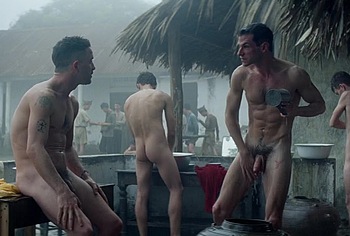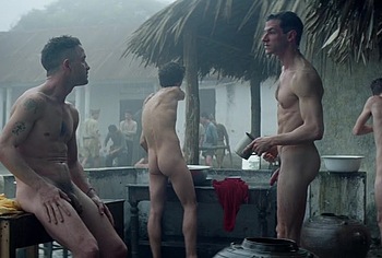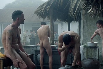 This time Guillaume Gouix delighted us not only with his butt but also with something else in “To the Ends of the World”. This handsome guy is washing himself together with a group of guys. The hottest thing here is that they are all completely naked. We see the penises of many men, but our attention is drawn, of course, to Guillaume Gouix’s naked celeb penis. Now we know for sure that this guy is hot from head to toe.
