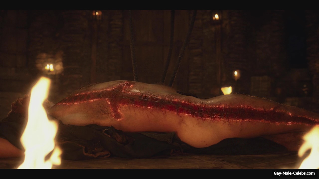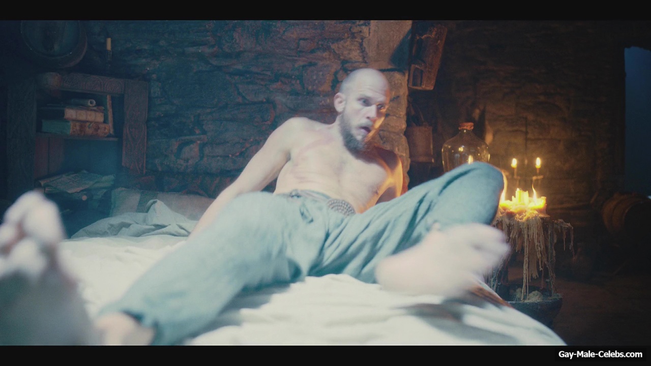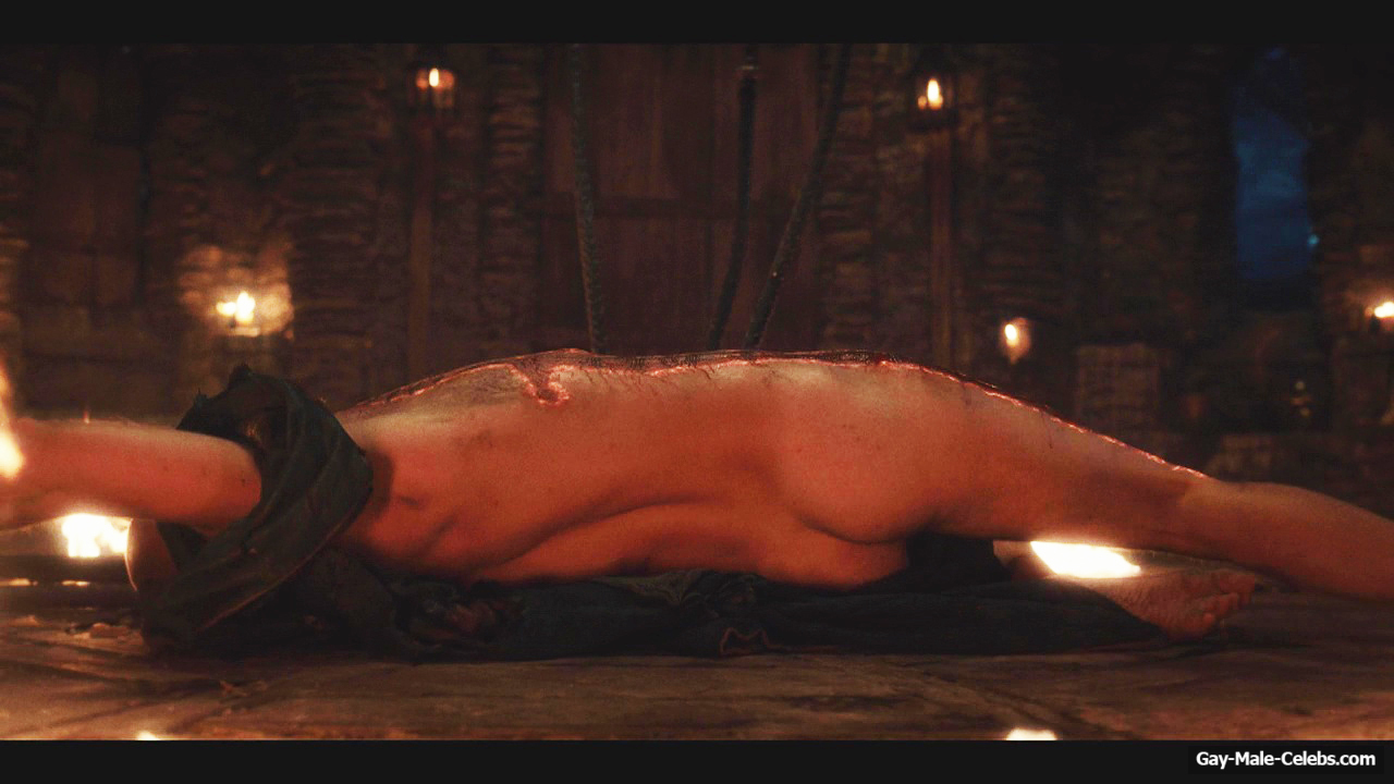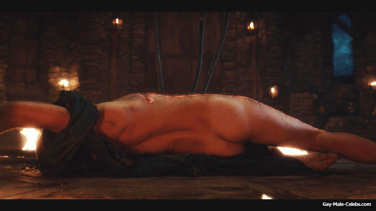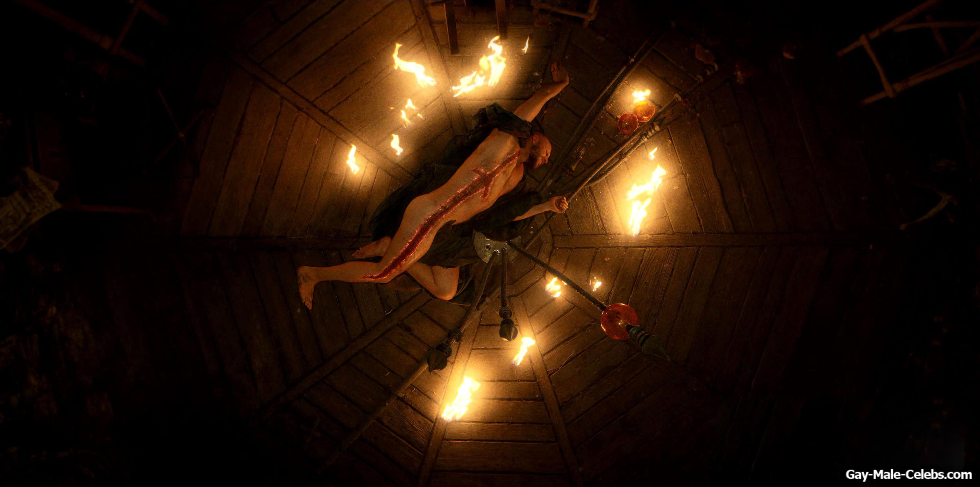 We like Gustaf Skarsgard more and more, especially when he shows us all his charms. This time Gustaf got naked in “Cursed”. He lies down and performs some ritual, but we are not interested in that. What we are really interested in is that all the time he is wearing only a cape. His naked and sexy body is on full display and when he turns sideways we can admire his firm ass.