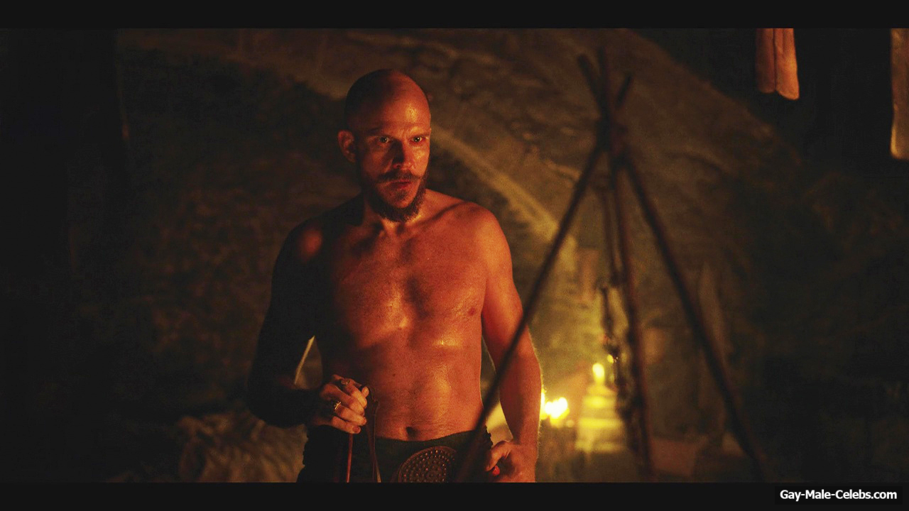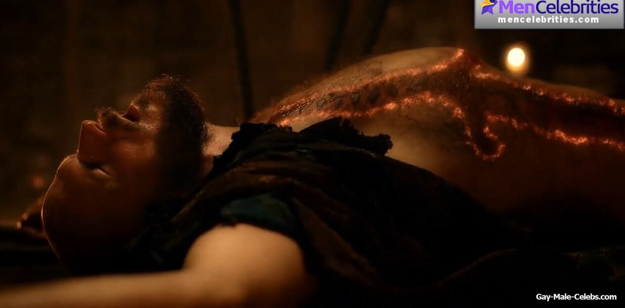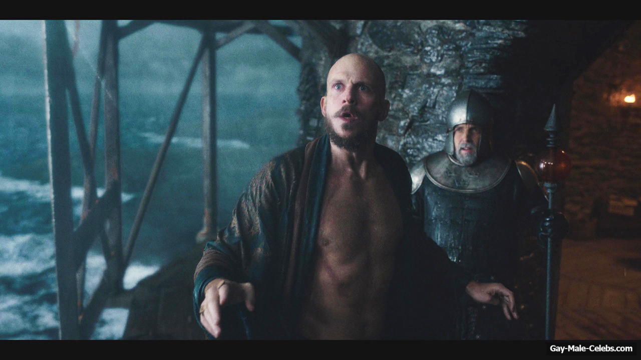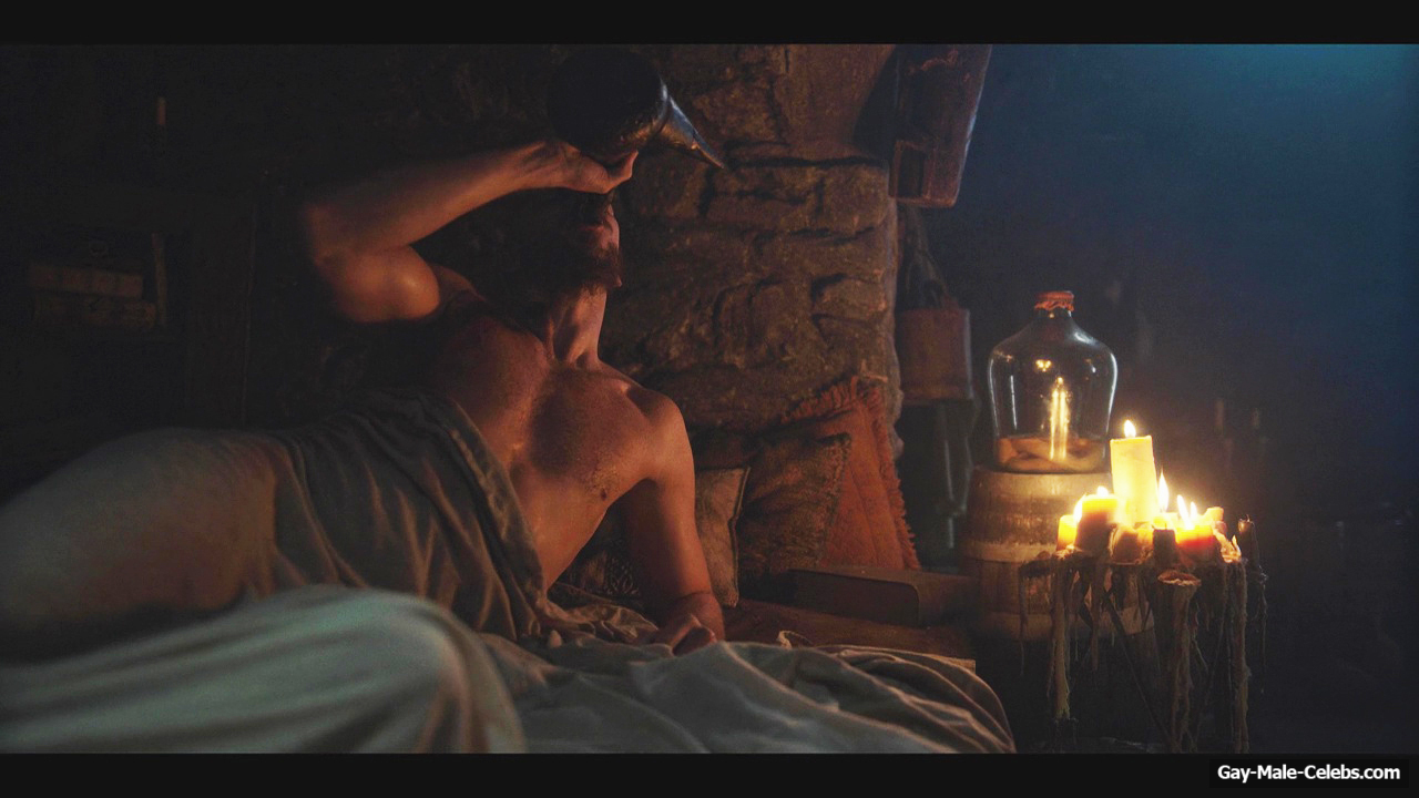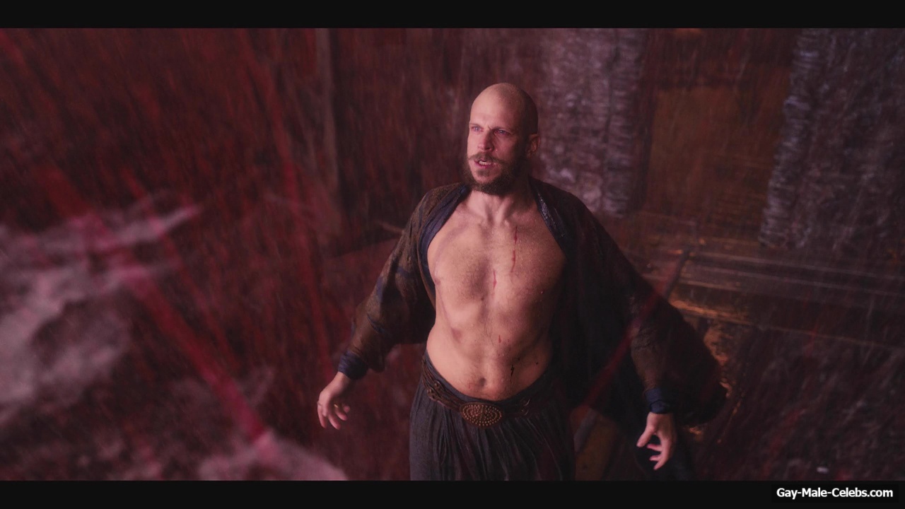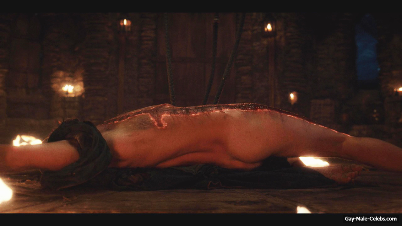 We like Gustaf Skarsgard more and more, especially when he shows us all his charms. This time Gustaf got naked in “Cursed”. He lies down and performs some ritual, but we are not interested in that. What we are really interested in is that all the time he is wearing only a cape. His naked and sexy body is on full display and when he turns sideways we can admire his firm ass.