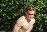 These pictures of the famous Hollywood male celebrity Heath Ledger were taken by Paparazzi during the shooting one of the scenes of the 2005 drama “Brokeback Mountain”, where his character had to jump into a lake completely nude. The Director Ang Lee intended to remove all frontal nudity from the film, but the Paparazzi hurried to spread the pictures of naked Heath Ledger in the Internet and some magazines. Still you can see this nude scene in the European version of the movie.