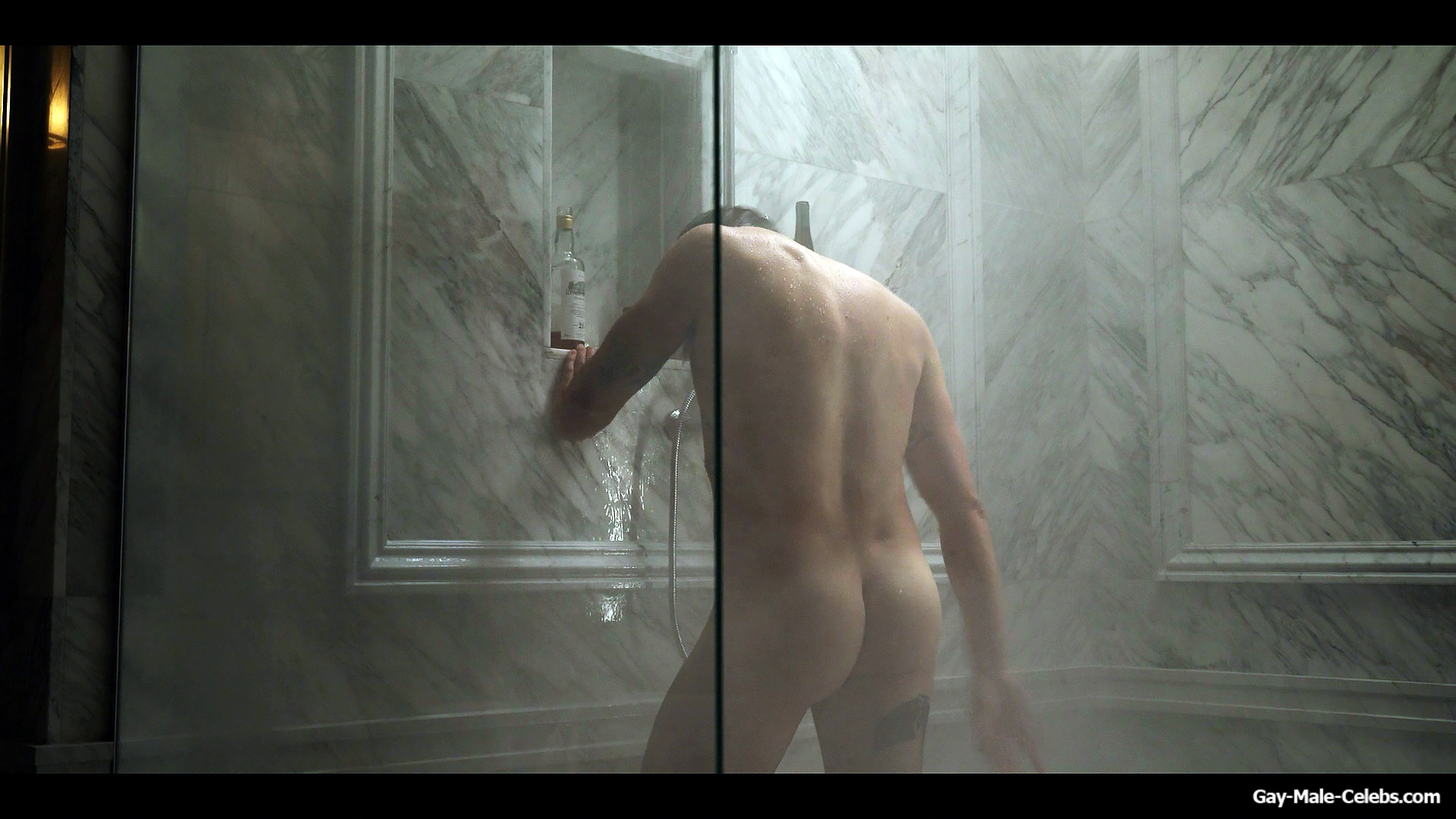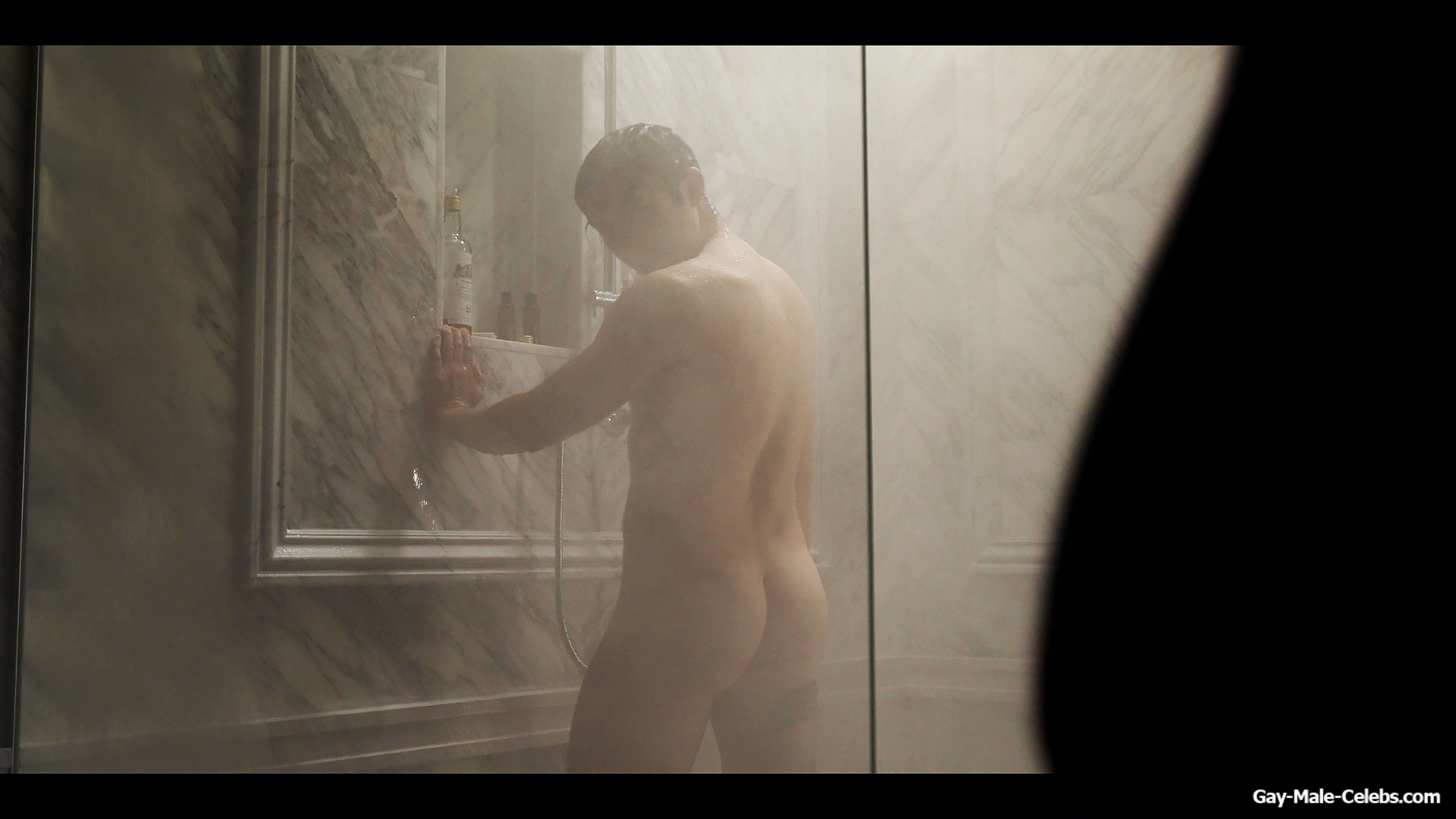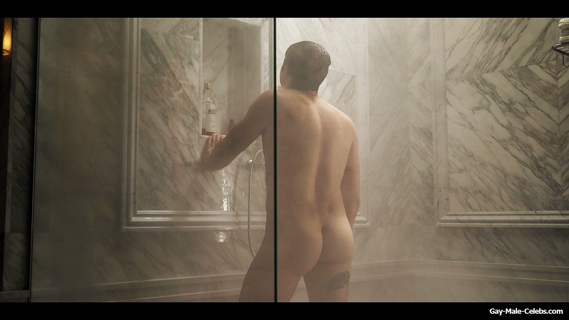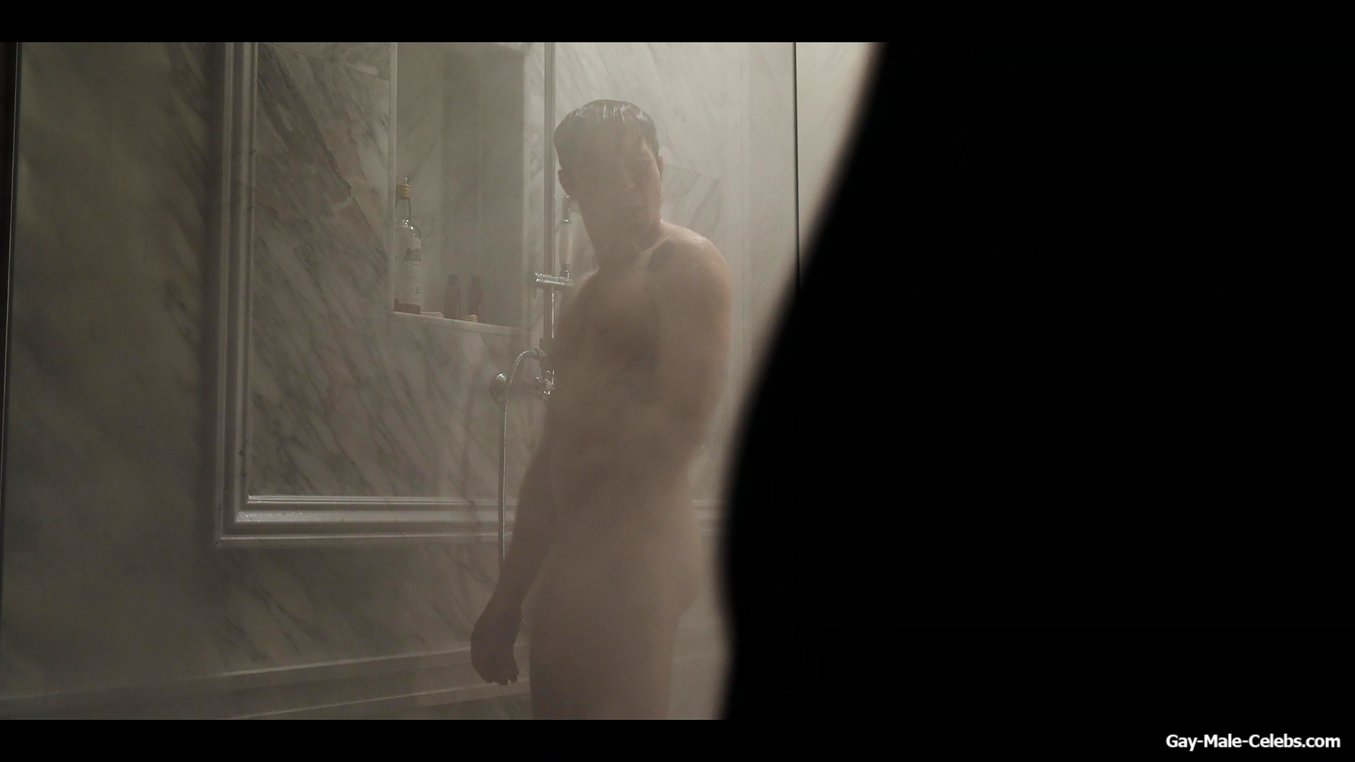 Henry Golding exposes in “Another Simple Favour”. Henry was sad, so he decided to get drunk while taking a shower. While he enjoys the alcohol, we can admire the naked figure of this hunk. Although he stands backwards and his penis is hidden from our eyes, but his tight ass is on full display.