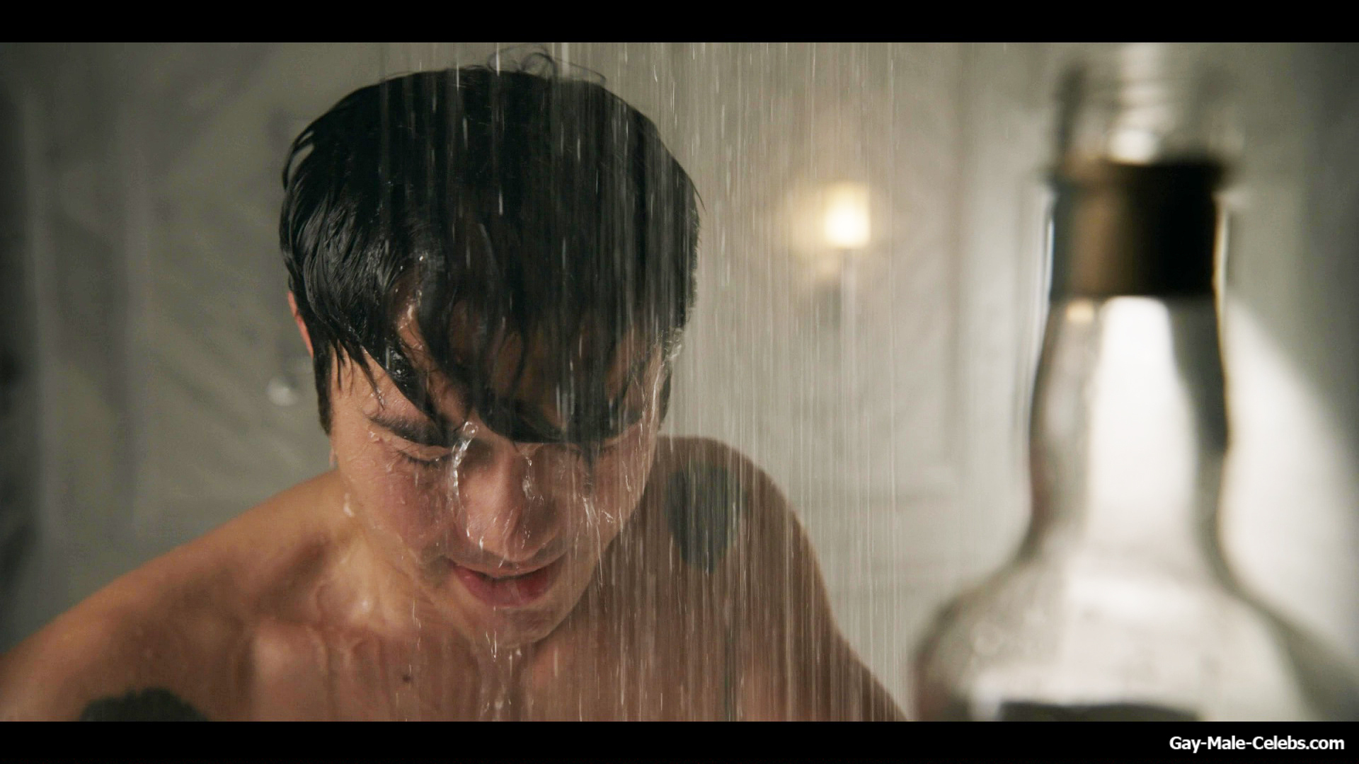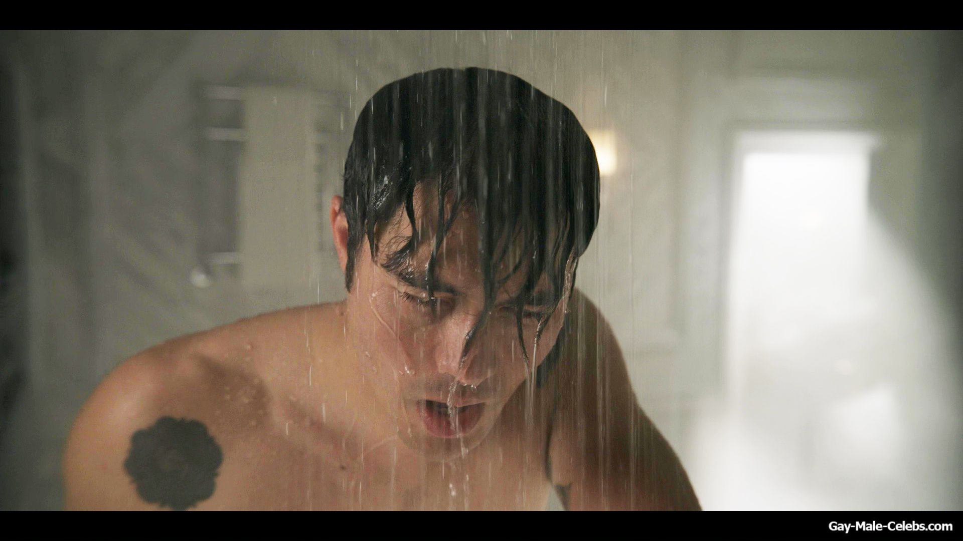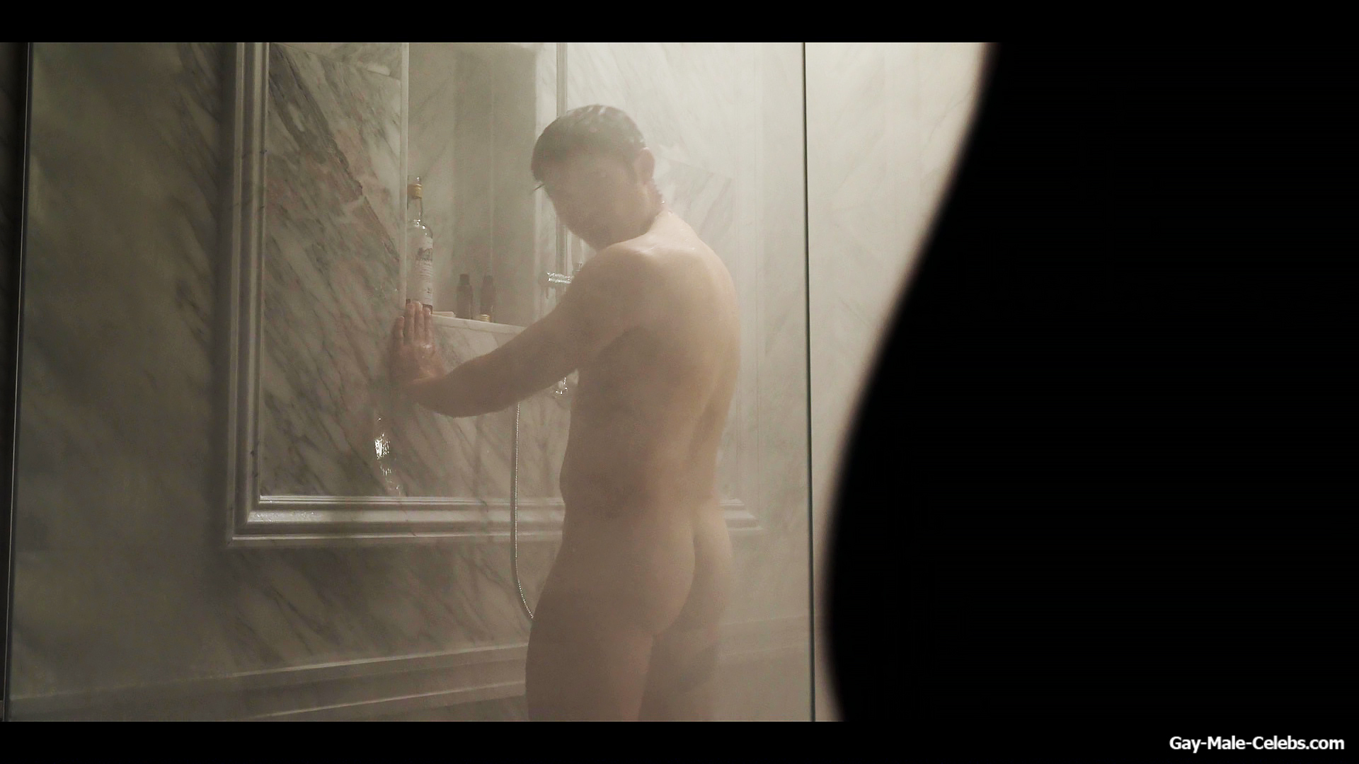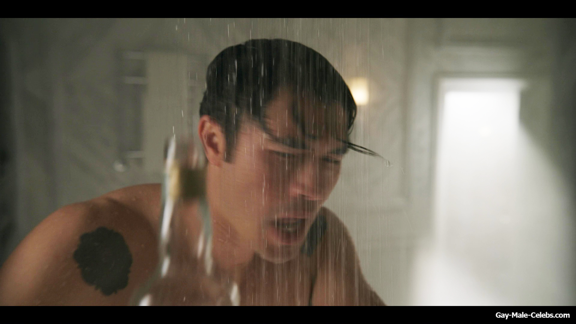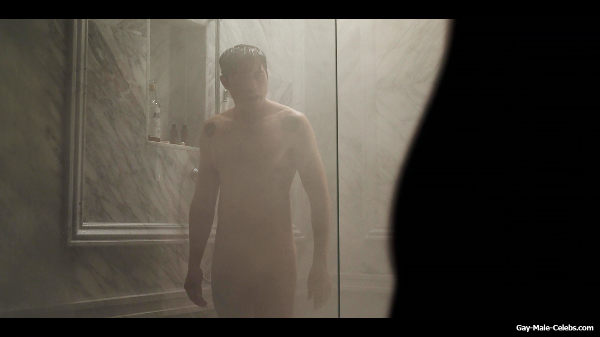 Henry Golding exposes in “Another Simple Favour”. Henry was sad, so he decided to get drunk while taking a shower. While he enjoys the alcohol, we can admire the naked figure of this hunk. Although he stands backwards and his penis is hidden from our eyes, but his tight ass is on full display.