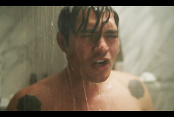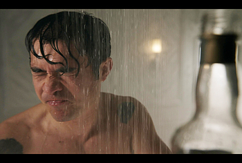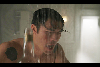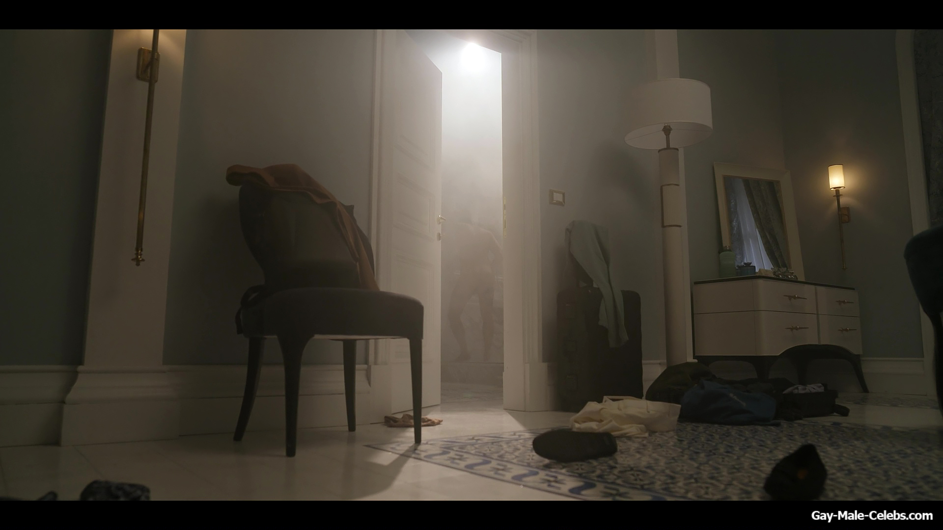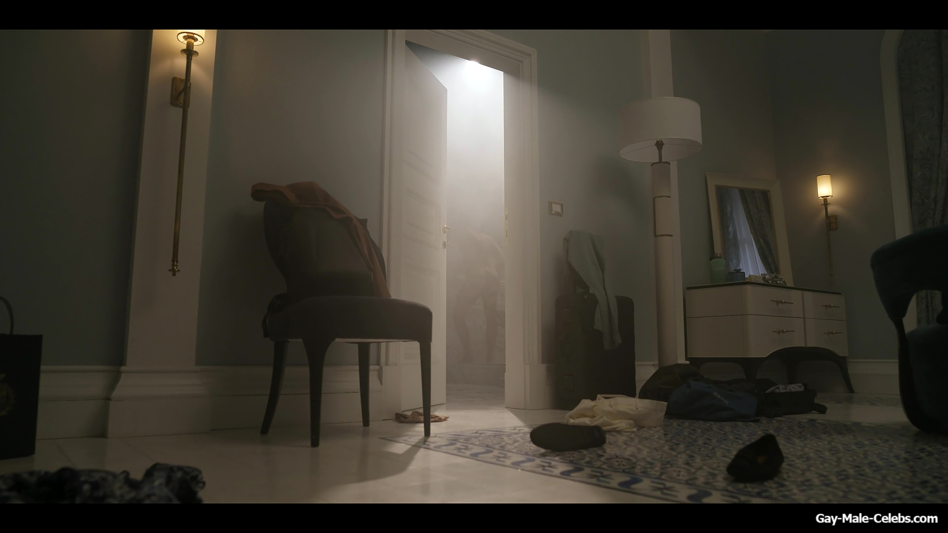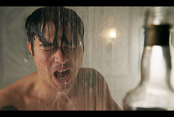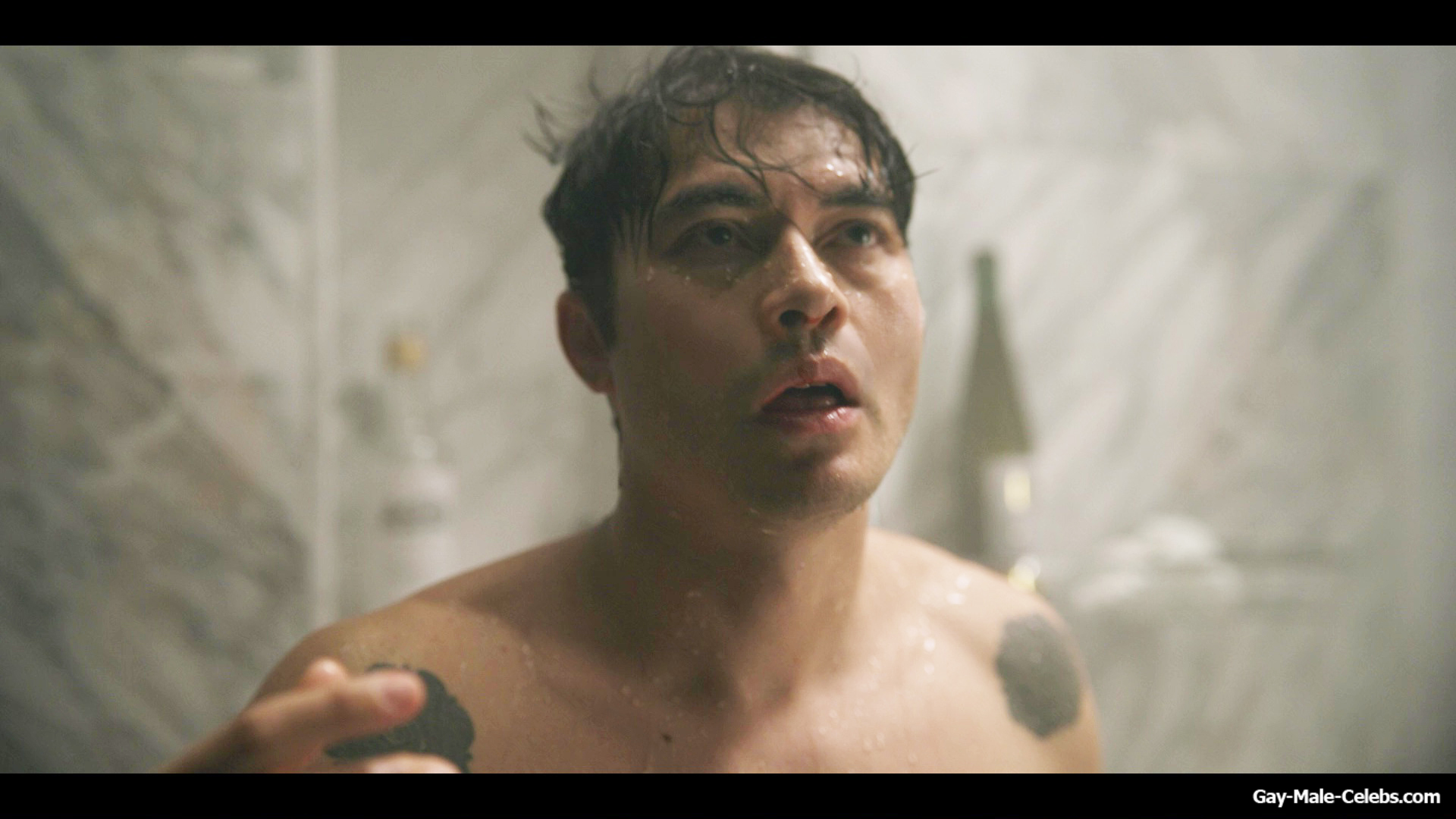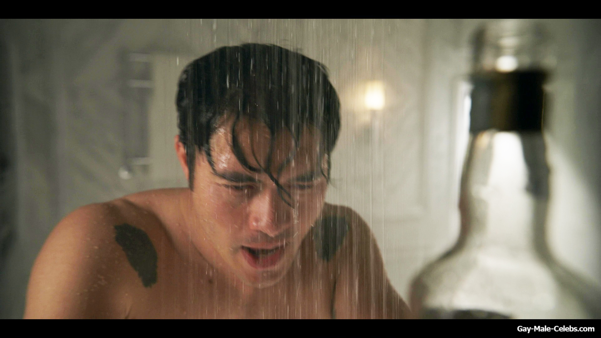 Henry Golding exposes in “Another Simple Favour”. Henry was sad, so he decided to get drunk while taking a shower. While he enjoys the alcohol, we can admire the naked figure of this hunk. Although he stands backwards and his penis is hidden from our eyes, but his tight ass is on full display.