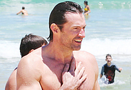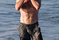 Middle-aged men with well shaped bodies are just amazing, if you think along these lines there’s definitely so much to see in this nice collection of Hugh Jackman paparazzi photographs. Handsome Australian macho dude that you know from movies such as X-Men, Van Helsing, Operation Swordfish is caught on the beach shirtless while his fine bulge is easy to see. This hunk is every gay man’s dream for sure.
